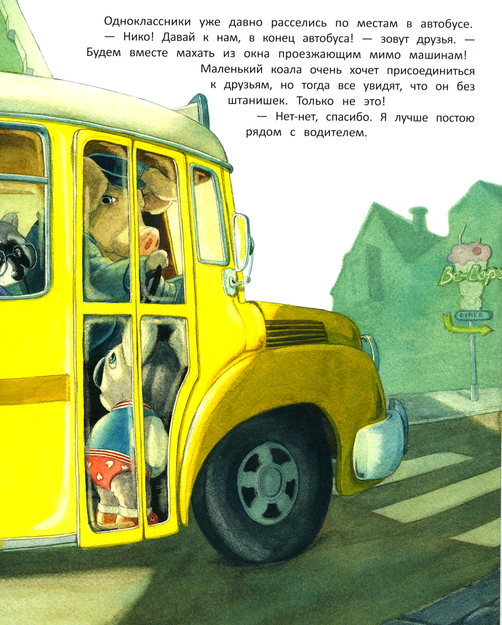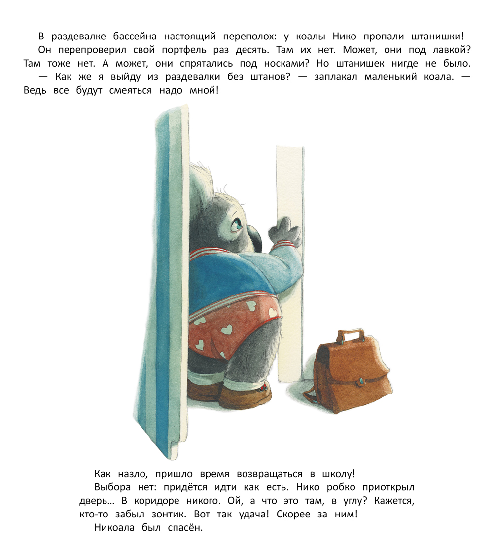 В раздевалке бассейна настоящий переполох! Коала Нико метался в панике: куда-то исчезли его штанишки! Как же он выйдет из раздевалки в одних носках и красных трусах в сердечко? Малыш расстроен, ведь все будут смеяться над ним. В течение дня маленькому Нико придётся проявить всю свою находчивость и смекалку, чтобы никто в школе не раскрыл его тайну.| Издательство | Феникс |