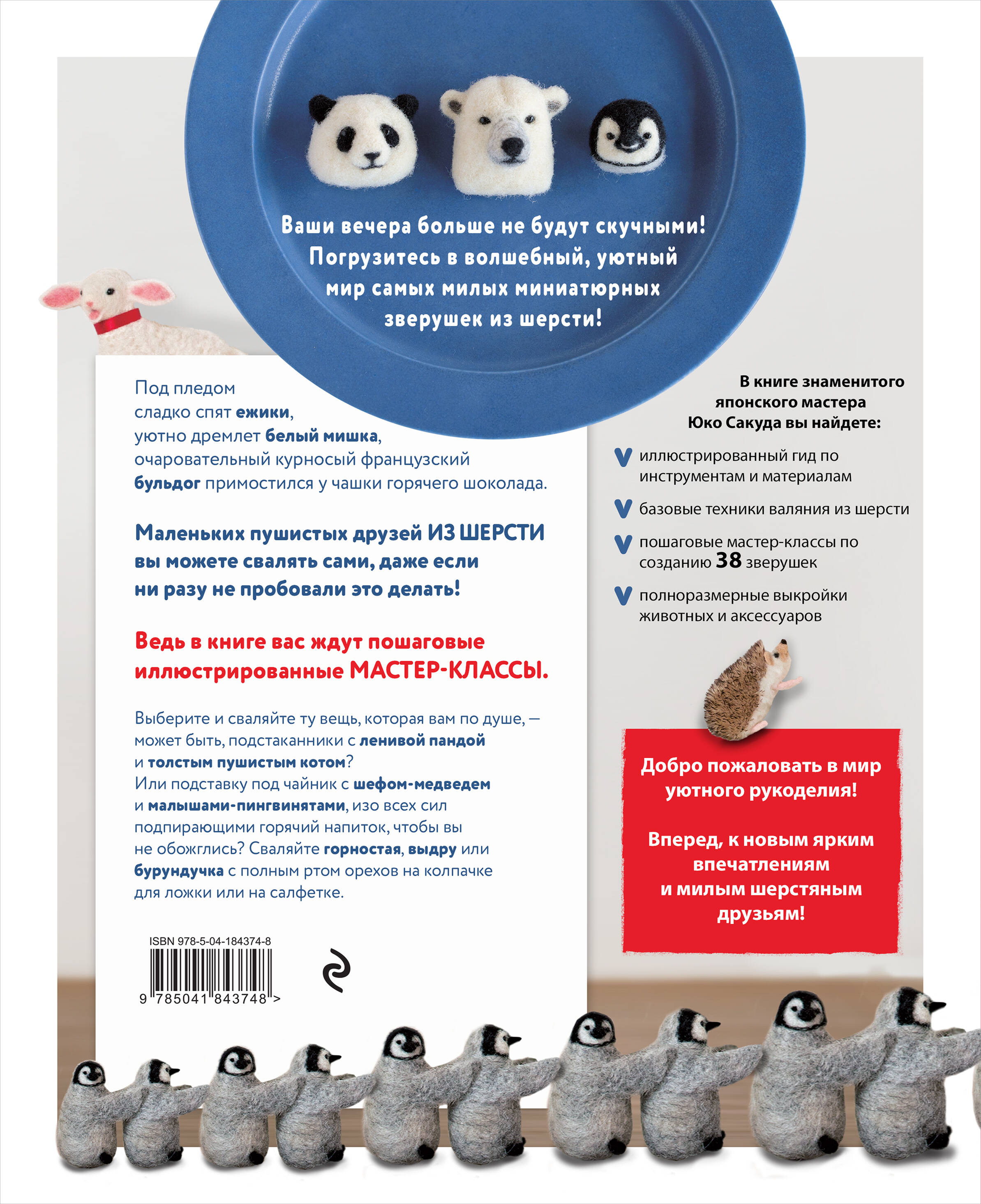 Бестселлер Amazon! Книга японского мастера по фелтингу Юко Сакуда, покорившей сердца 60 000 подписчиков в Instagram! Создайте домашнее кафе с самыми милыми зверушками из шерсти, которых вы когда-либо видели! Эта книга - красочное пособие для начинающих и опытных мастеров по фелтингу. От сладко спящих под пледом ежиков до очаровательного французского бульдога, примостившегося у чашки горячего шоколада, каждый обитатель этой книги может стать вашим новым пушистым домашним питомцем! Шаг за шагом следуя подробным инструкциям автора, вы сможете создать собственное домашнее кафе с тематическими сервировочными салфетками, подстаканниками, подставками под чайник и даже колпачками для ложечек! В этой книге вы найдете: - иллюстрированный гид по инструментам и материалам; - базовые техники валяния из шерсти; - пошаговые мастер-классы по созданию 38 зверушек; - готовые выкройки животных и аксессуаров; - море вдохновения и эстетического удовольствия. Дарите радость и тепло игрушками, сделанными своими руками! Вперед, к новым ярким впечатлениям и милым шерстяным друзьям! Впервые на русском языке.| Издательство | ООО "Издательство "Эксмо" |