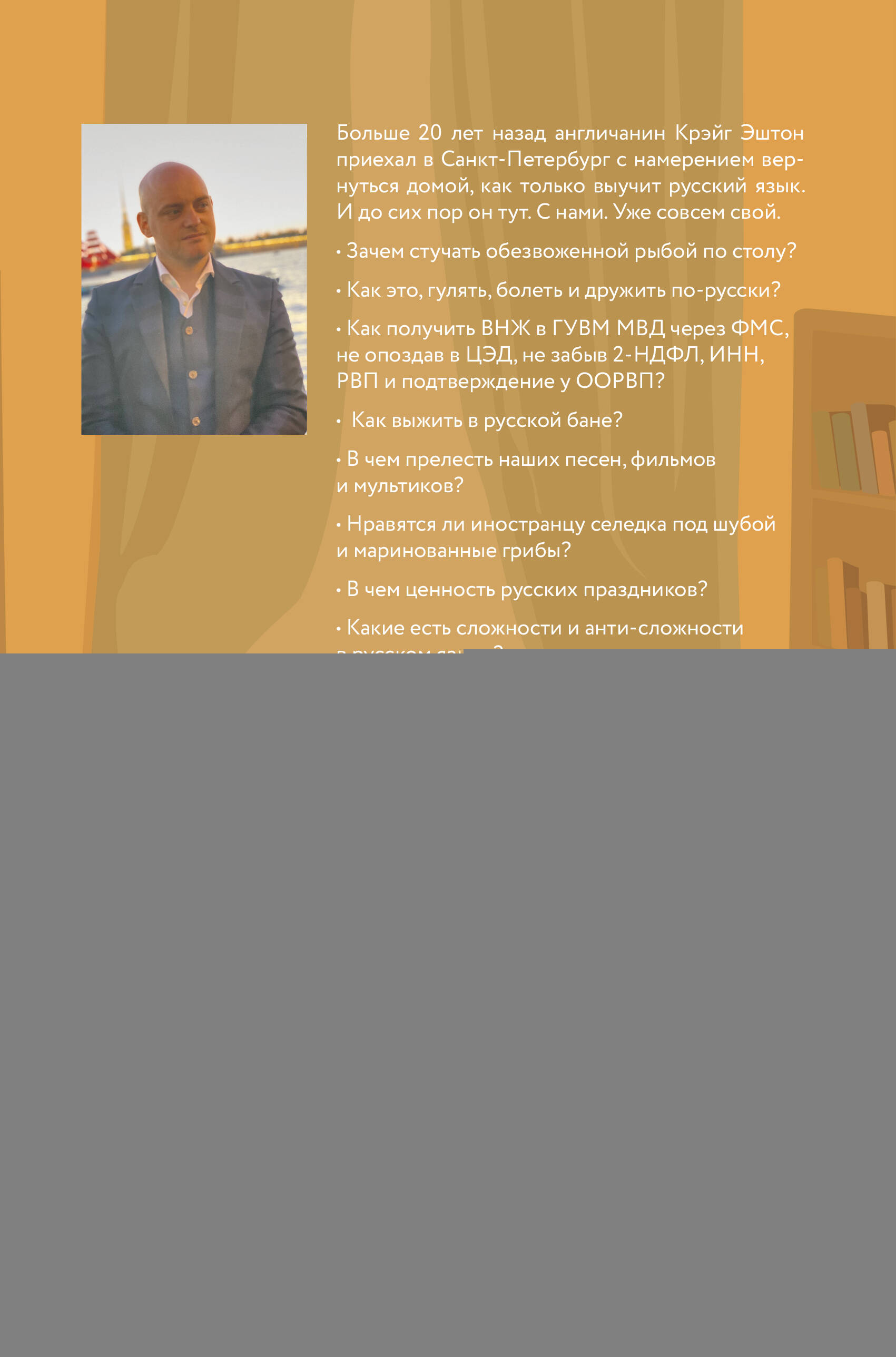 Больше 20 лет назад англичанин Крэйг Эштон приехал в Санкт-Петербург с намерением вернуться домой, как только выучит русский язык. И до сих пор он тут. С нами. Уже совсем свой. • Зачем стучать обезвоженной рыбой по столу? • Как это, гулять, болеть и дружить по-русски? • Как получить ВНЖ в ГУВМ МВД через ФМС, не опоздав в ЦЭД, не забыв 2-НДФЛ, ИНН, РВП и подтверждение у ООРВП? • Как выжить в русской бане? • В чем прелесть наших песен, фильмов и мультиков? • Нравятся ли иностранцу селедка под шубой и маринованные грибы? • В чем ценность русских праздников? • Какие есть сложности и анти-сложности в русском языке? Эта невероятно трогательная, добрая, написанная с тонким юмором и при этом трепетной заботой книга заставит вас плакать и смеяться, ностальгировать и наблюдать, вдохновляться и без конца удивляться чуткому взгляду на русскую культуру со стороны и изнутри.| Издательство | Издательство "АСТ" |