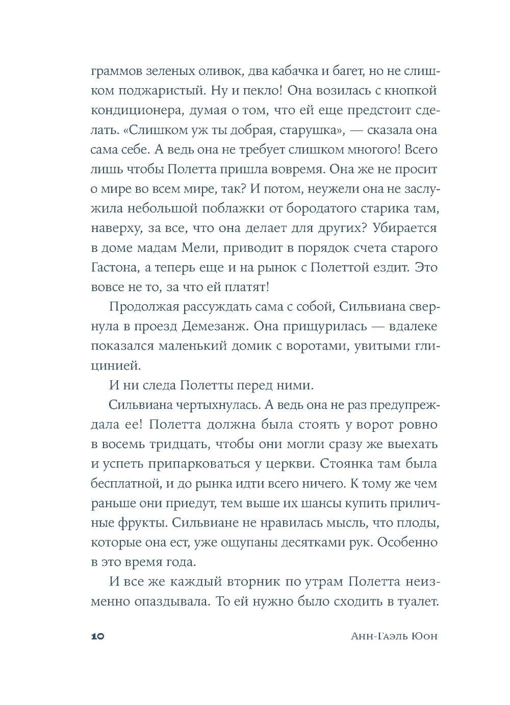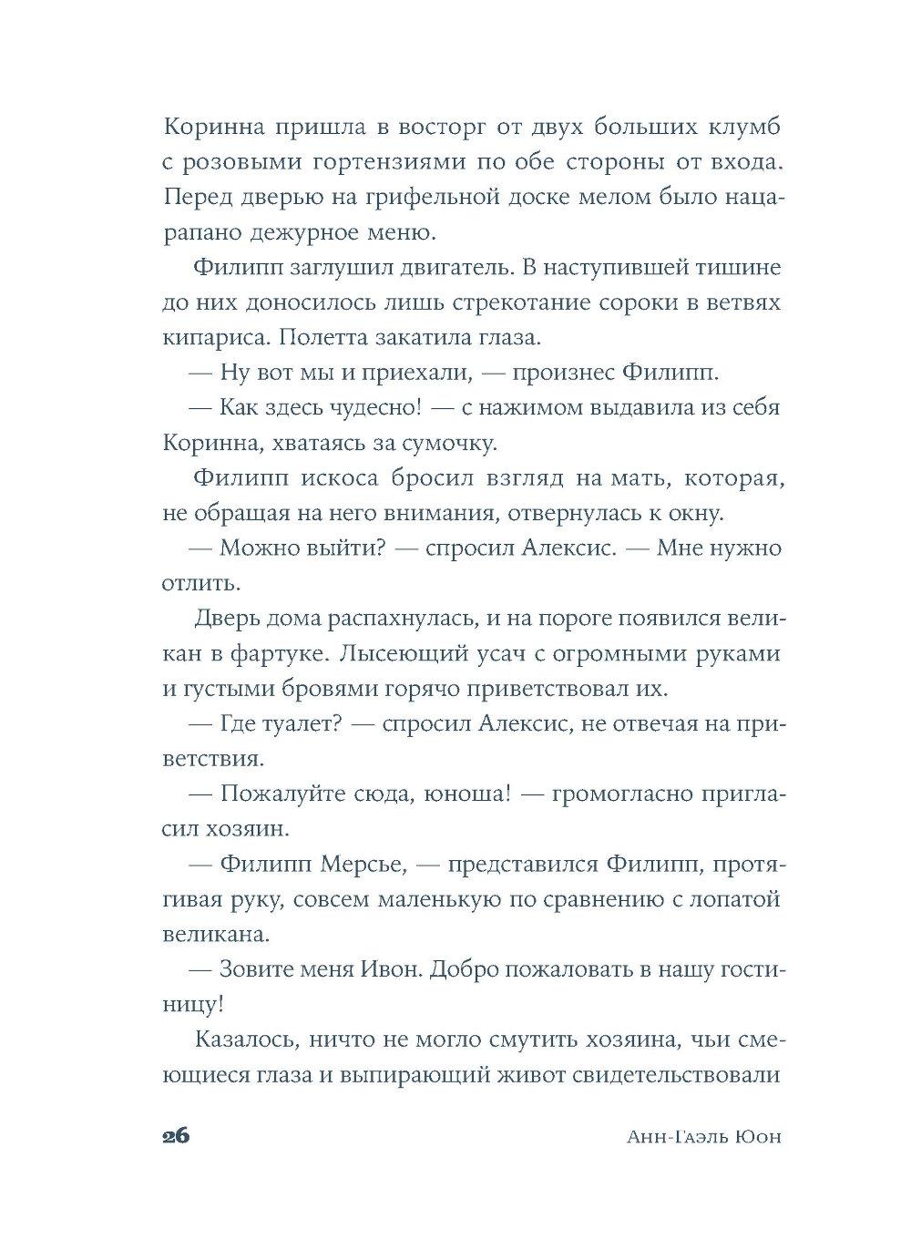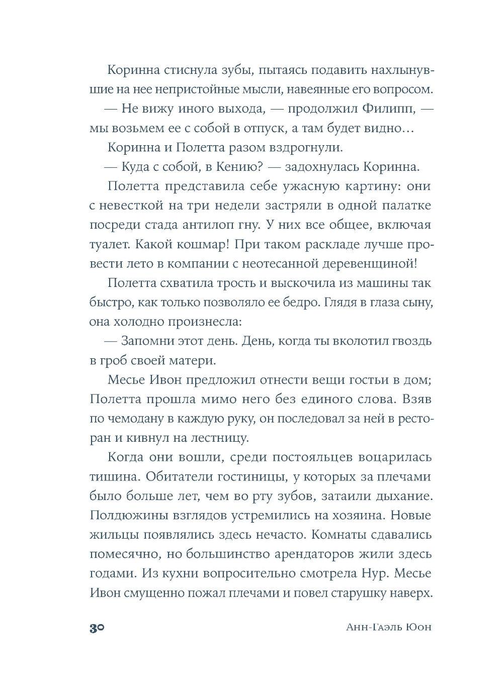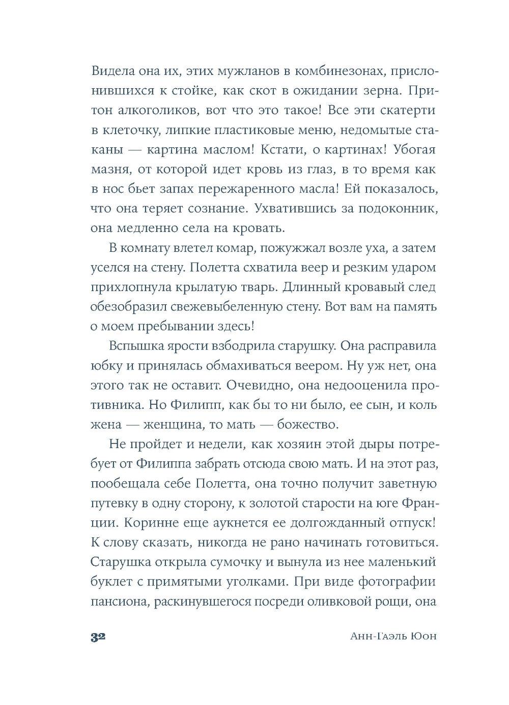 План восьмидесятипятилетней Полетты кажется идеальным: разыграть роль сходящей с ума старушки и заставить сына оплатить проживание в шикарном пансионе на Французской Ривьере. Но он неожиданно отправляет ее в неприметную гостиницу, затерянную в окрестностях Парижа. Грифельная доска с дежурным меню, скатерти в клеточку, запах пережаренного масла... Новая постоялица мечтает только об одном: как можно скорее убраться из этой дыры! Однако любознательная натура Полетты заставляет ее вмешиваться в дела обитателей гостиницы. Что скрывают загадочные письма, найденные в комнате месье Жоржа? Кто шантажирует месье Ивона? И почему так часто плачет Жюльетта? Одно можно сказать наверняка: расследования Полетты удивительным образом изменят судьбы постояльцев и ее саму. Эта вдохновляющая история, основанная на реальных событиях из жизни автора, доказывает: любить, смеяться и петь во весь голос можно в любом возрасте.| Издательство | Альпина Паблишер |