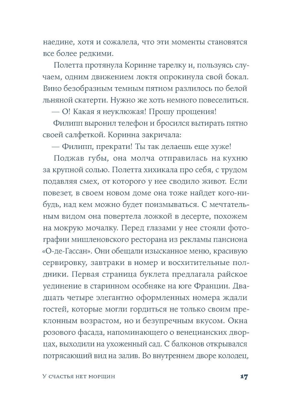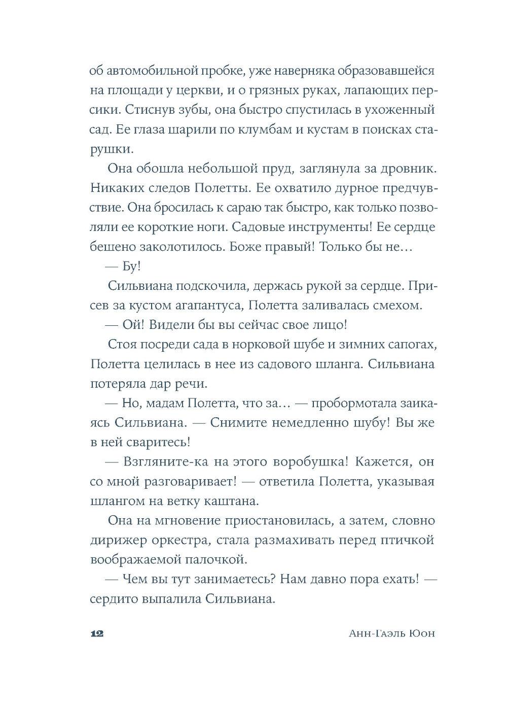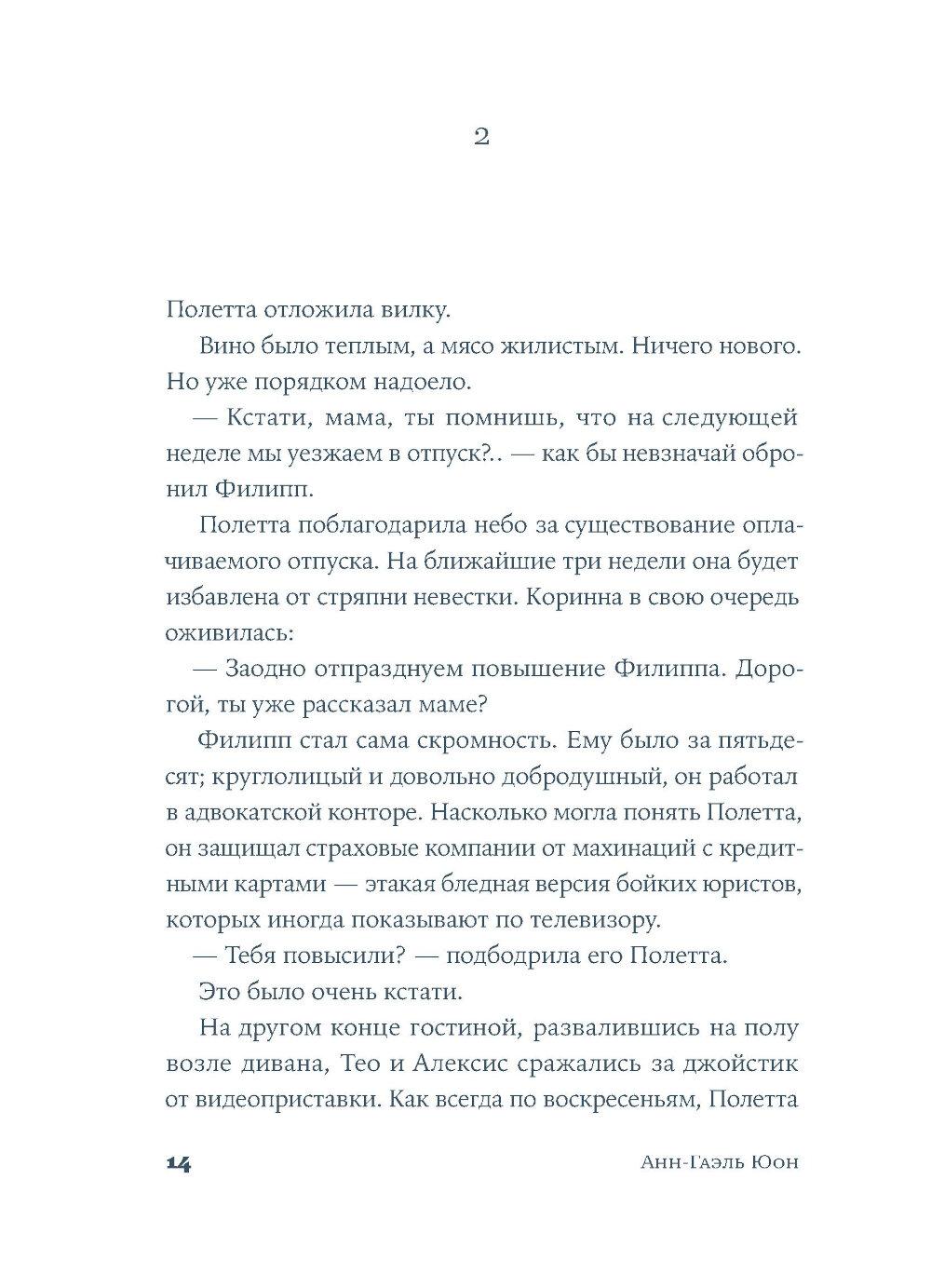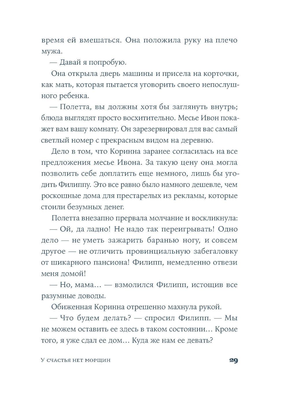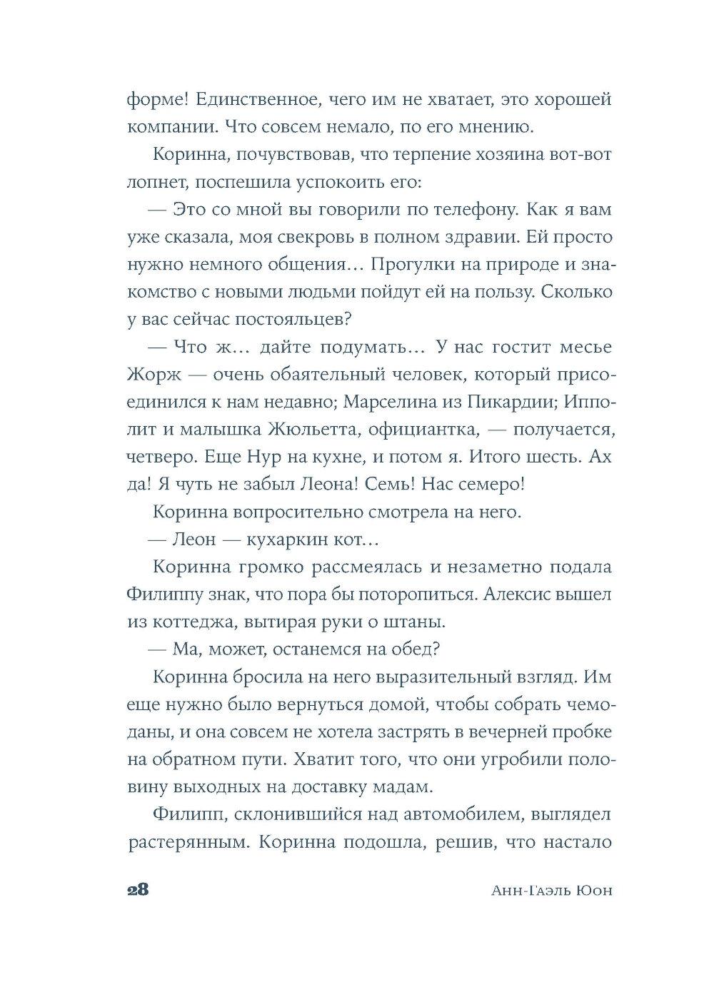 План восьмидесятипятилетней Полетты кажется идеальным: разыграть роль сходящей с ума старушки и заставить сына оплатить проживание в шикарном пансионе на Французской Ривьере. Но он неожиданно отправляет ее в неприметную гостиницу, затерянную в окрестностях Парижа. Грифельная доска с дежурным меню, скатерти в клеточку, запах пережаренного масла... Новая постоялица мечтает только об одном: как можно скорее убраться из этой дыры! Однако любознательная натура Полетты заставляет ее вмешиваться в дела обитателей гостиницы. Что скрывают загадочные письма, найденные в комнате месье Жоржа? Кто шантажирует месье Ивона? И почему так часто плачет Жюльетта? Одно можно сказать наверняка: расследования Полетты удивительным образом изменят судьбы постояльцев и ее саму. Эта вдохновляющая история, основанная на реальных событиях из жизни автора, доказывает: любить, смеяться и петь во весь голос можно в любом возрасте.| Издательство | Альпина Паблишер |