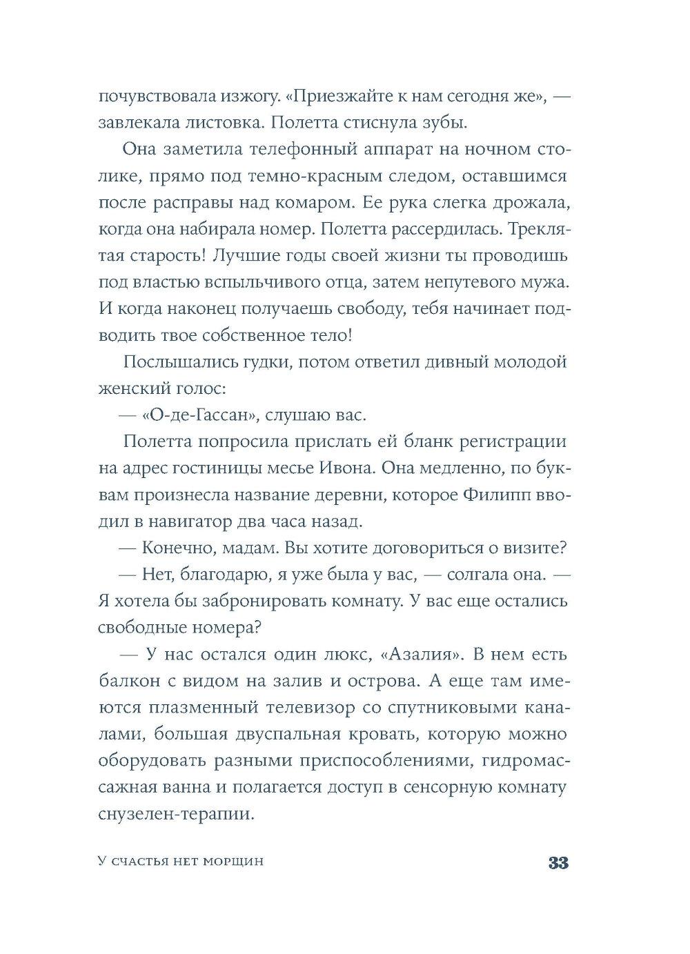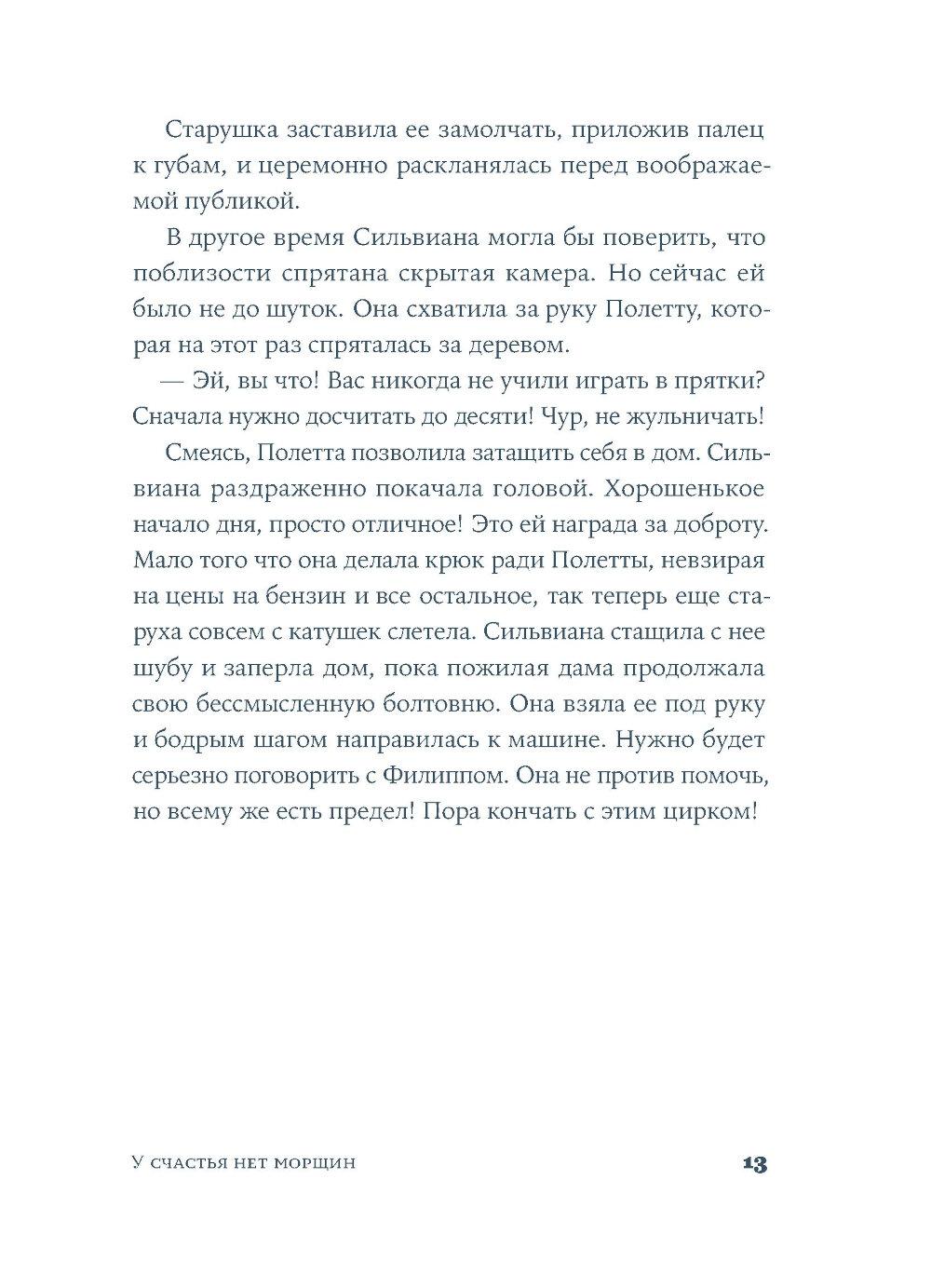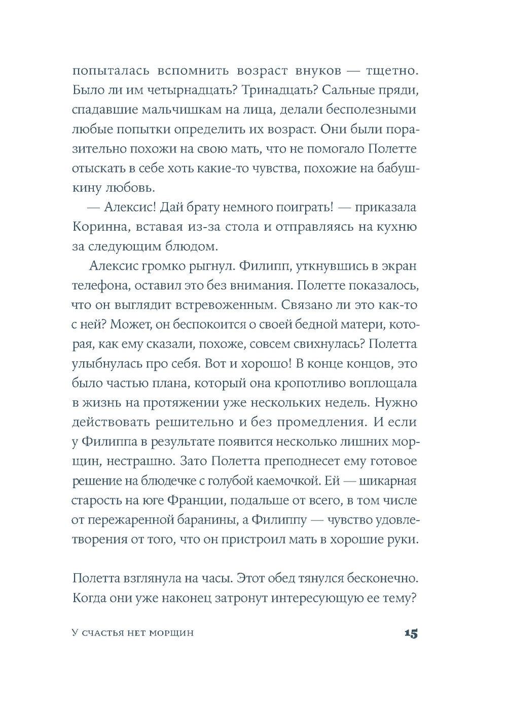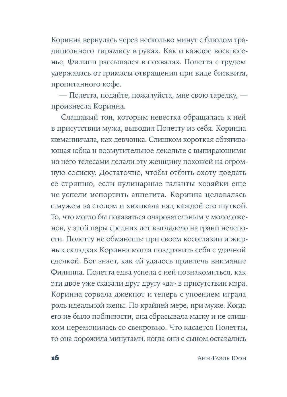 План восьмидесятипятилетней Полетты кажется идеальным: разыграть роль сходящей с ума старушки и заставить сына оплатить проживание в шикарном пансионе на Французской Ривьере. Но он неожиданно отправляет ее в неприметную гостиницу, затерянную в окрестностях Парижа. Грифельная доска с дежурным меню, скатерти в клеточку, запах пережаренного масла... Новая постоялица мечтает только об одном: как можно скорее убраться из этой дыры! Однако любознательная натура Полетты заставляет ее вмешиваться в дела обитателей гостиницы. Что скрывают загадочные письма, найденные в комнате месье Жоржа? Кто шантажирует месье Ивона? И почему так часто плачет Жюльетта? Одно можно сказать наверняка: расследования Полетты удивительным образом изменят судьбы постояльцев и ее саму. Эта вдохновляющая история, основанная на реальных событиях из жизни автора, доказывает: любить, смеяться и петь во весь голос можно в любом возрасте.| Издательство | Альпина Паблишер |