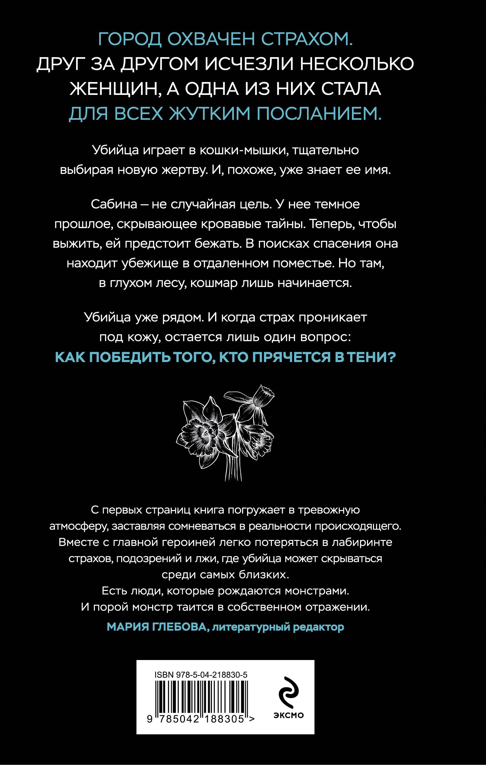 Город охвачен страхом. Друг за другом исчезли несколько женщин, а одна из них стала для всех жутким посланием. Убийца играет в кошки-мышки, тщательно выбирая новую жертву. И, похоже, уже знает её имя. Сабина - не случайная цель. У неё тёмное прошлое, скрывающее кровавые тайны. Теперь, чтобы выжить, ей предстоит бежать. В поисках спасения она находит убежище в отдалённом поместье. Но там, в глухом лесу, кошмар лишь начинается. Убийца уже рядом. И когда страх проникает под кожу, остаётся лишь один вопрос: как победить того, кто прячется в тени?| Издательство | ООО "Издательство "Эксмо" |
