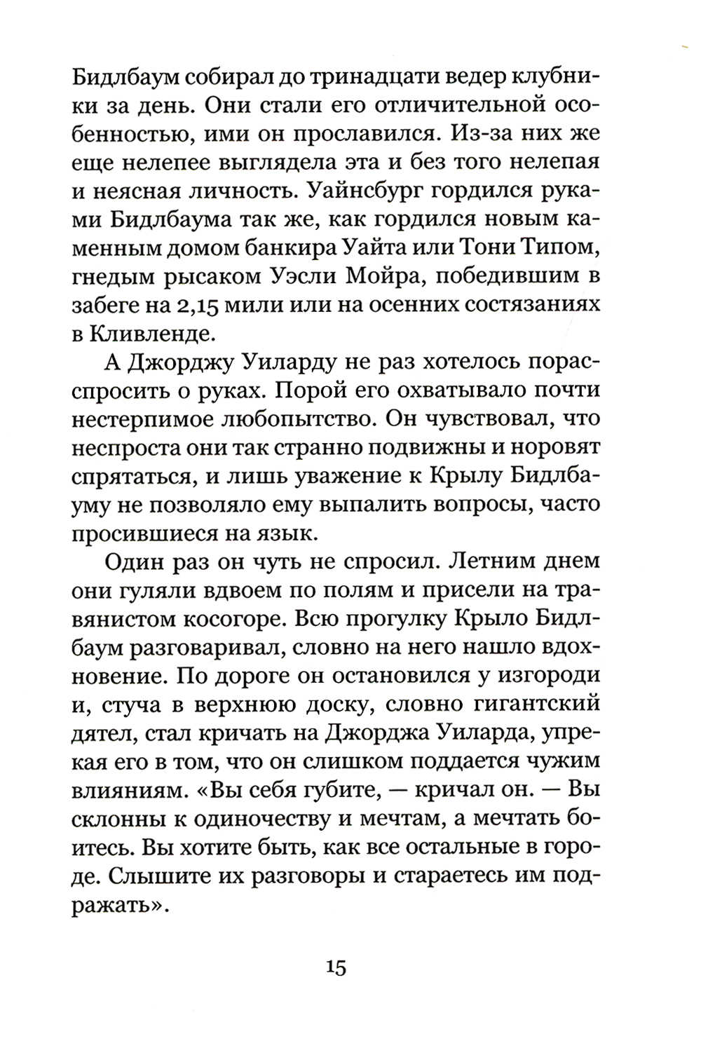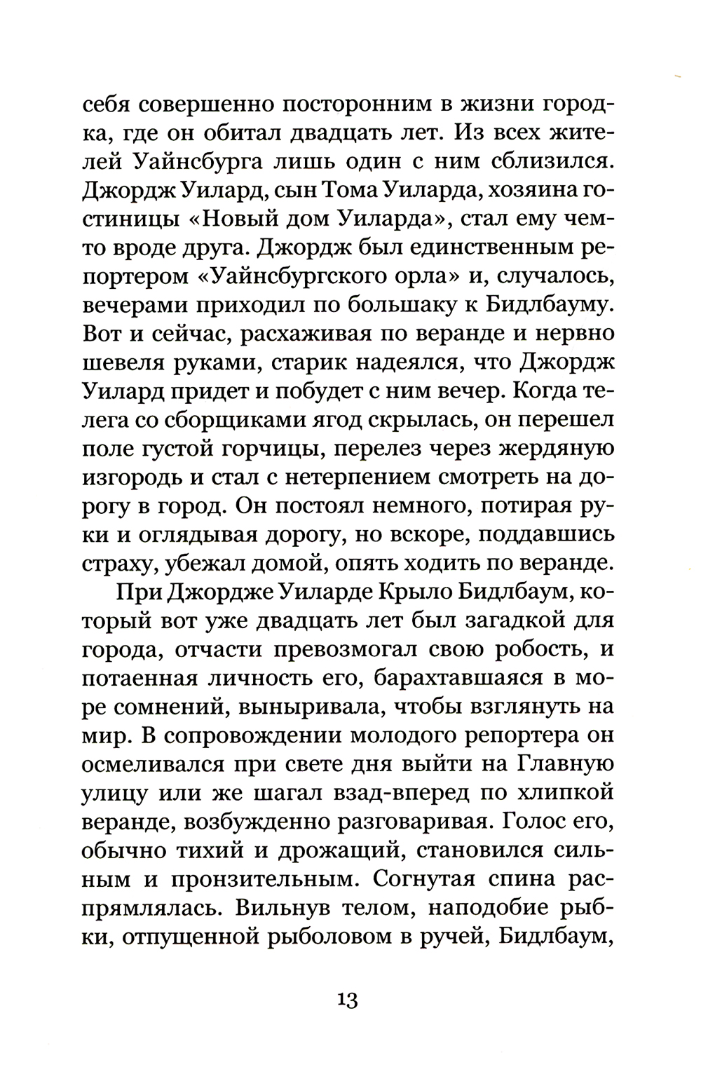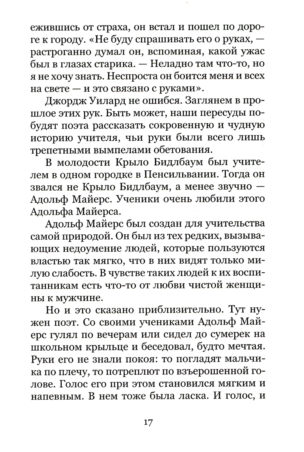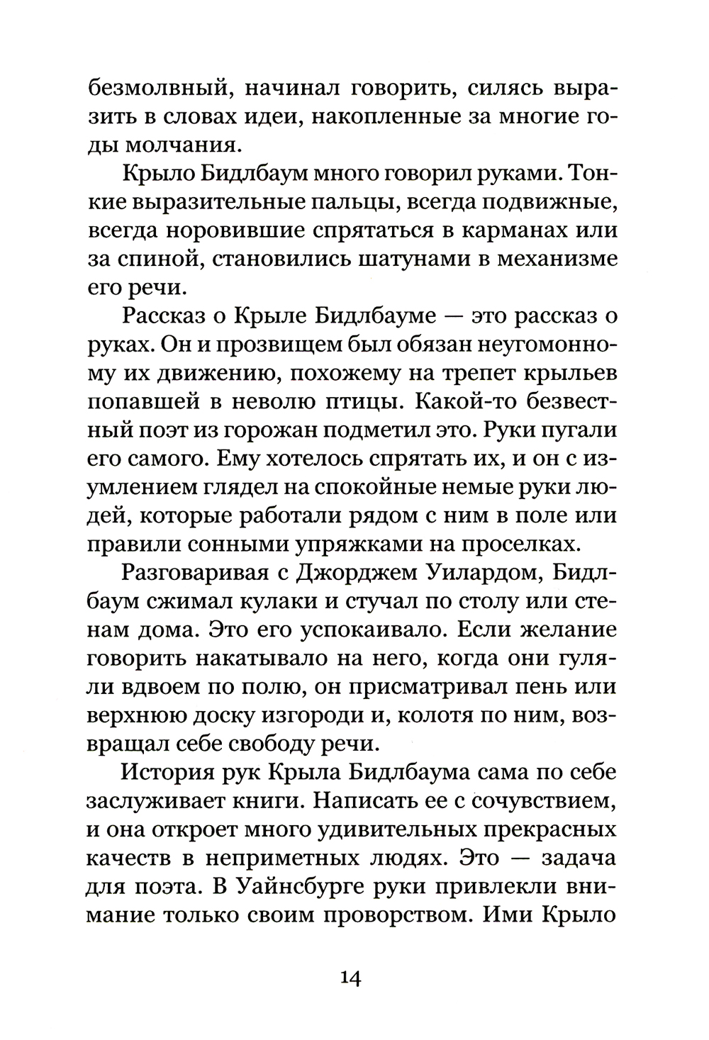 Шервуд Андерсон (1876-1941). блестящий новеллист, признанный классик американской литературы, вырос в маленьком городке на Среднем Западе в бедной семье. Был солдатом, управляющим фабрики, издателем, редактором. Литературную славу ему принес цикл рассказов «Уайнсбург, Огайо» (1919) о жизни американской провинции начала XX века. В странных судьбах героев, в их необычных характерах отразились понимание человеческой природы и весь жизненный опыт писателя. Творчество Андерсона оказало огромное влияние на развитие американской литературы, на становление таких мастеров, как Хемингуэй, Фолкнер, Стеинбек.| Издательство | Текст |