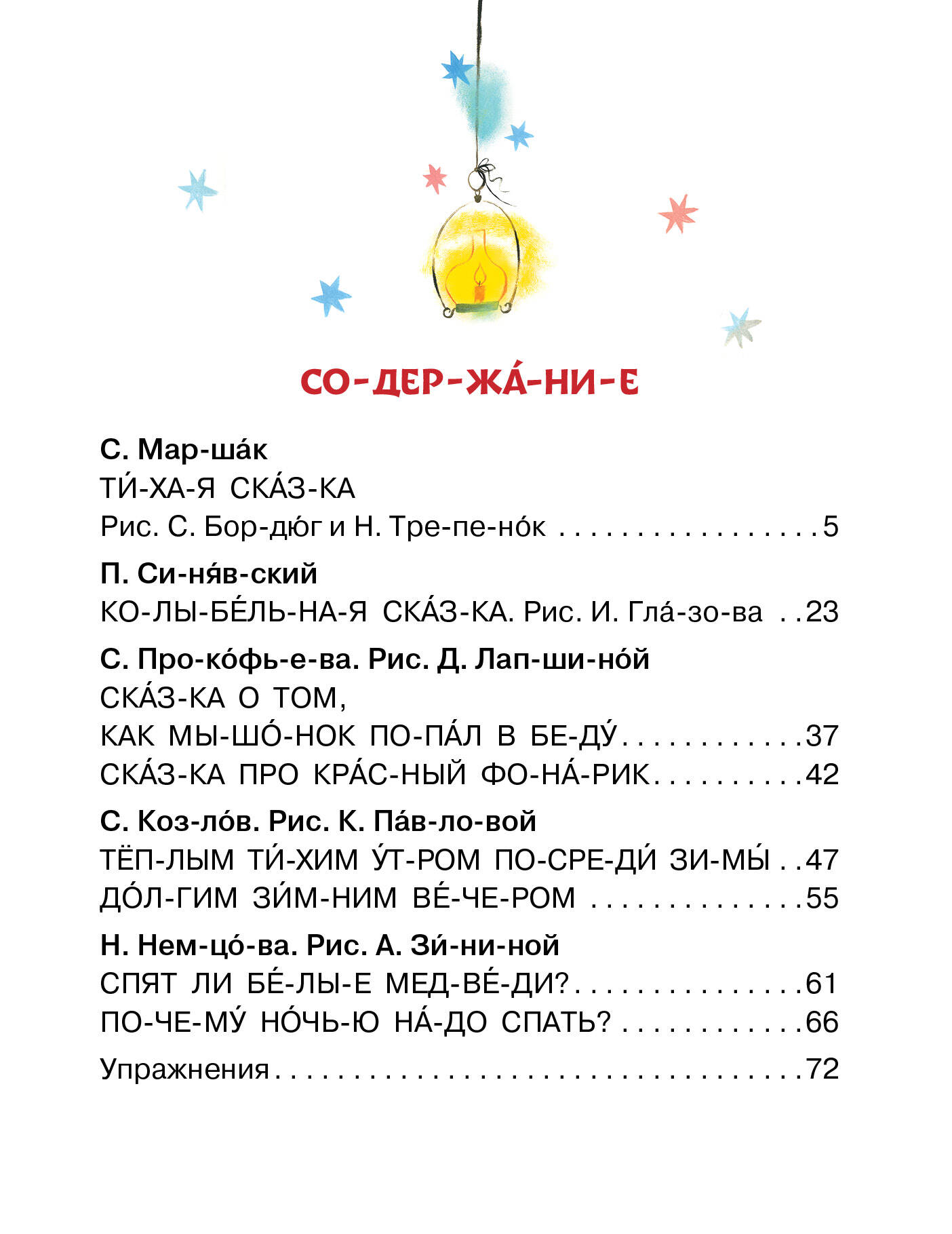 В этой книге собраны сказки С. Маршака, П. Синявского, С. Козлова и других знаменитых отечественных авторов, подходящие для первого самостоятельного чтения. Простые и увлекательные игры с буквами и словами для тренировки техники чтения можно выполнять сидя в кроватке. Книга поможет переключить внимание ребёнка с шумных игр и настроиться на сон, а также заинтересовать чтением. Ведь любовь к книге начинается с первых самостоятельно прочитанных страниц под одеялом с фонариком! Читайте с пользой и удовольствием!| Издательство | Издательство "АСТ" |