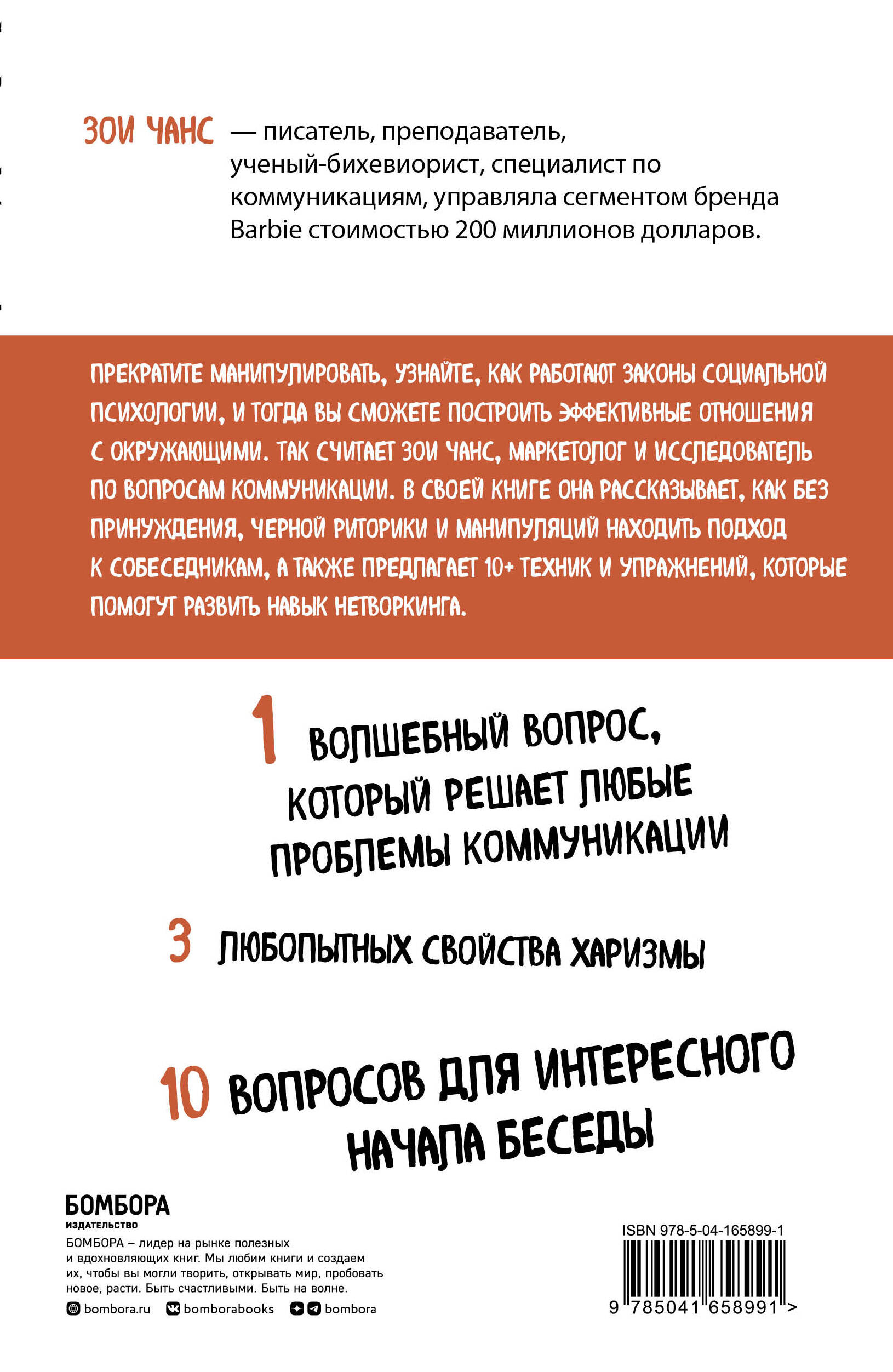 Прекратите манипулировать, узнайте, как работают законы поведенческой психологии, и тогда вы сможете построить эффективные отношения. Так считает Зои Чанс, маркетолог и исследователь по вопросам коммуникации. В своей книге она рассказывает, как без принуждения, черной риторики и манипуляций находить подход к собеседникам, а также предлагает 10+ техник и упражнений, которые помогут развить навык нетворкинга. Из книги вы узнаете: - кто такой «аллигатор» и «судья» и как они влияют на принятие решений; - почему слово «нет» - волшебное; - в чем магия фрейминга и как грамотно его использовать; - как защитить себя от «темных искусств» в виде черной риторики.| Издательство | ООО "Издательство "Эксмо" |