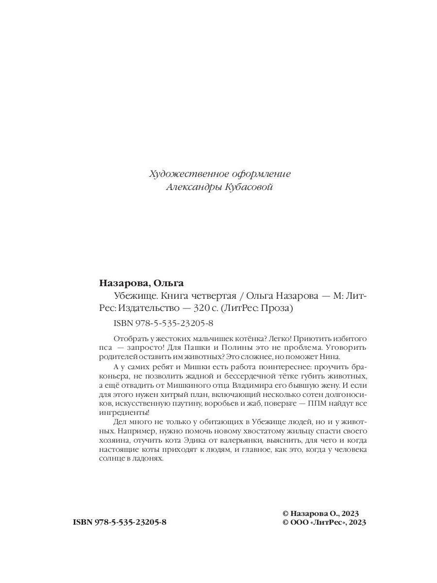 Отобрать у жестоких мальчишек котёнка? Легко! Приютить избитого пса - запросто! Для Пашки и Полины это не проблема. Уговорить родителей оставить им животных? Это сложнее, но поможет Нина. А у самих ребят и Мишки есть работа поинтереснее: проучить браконьера, не позволить жадной и бессердечной тётке губить животных, а ещё отвадить от Мишкиного отца Владимира его бывшую жену. И если для этого нужен хитрый план, включающий несколько сотен долгоносиков, искусственную паутину, воробьев и жаб, поверьте - ППМ найдут все ингредиенты! Дел много не только у обитающих в Убежище людей, но и у животных. Например, нужно помочь новому хвостатому жильцу спасти своего хозяина, отучить кота Эдика от валерьянки, выяснить, для чего и когда настоящие коты приходят к людям, и главное, как это, когда у человека солнце в ладонях.| Издательство | Т8 RUGRAM |