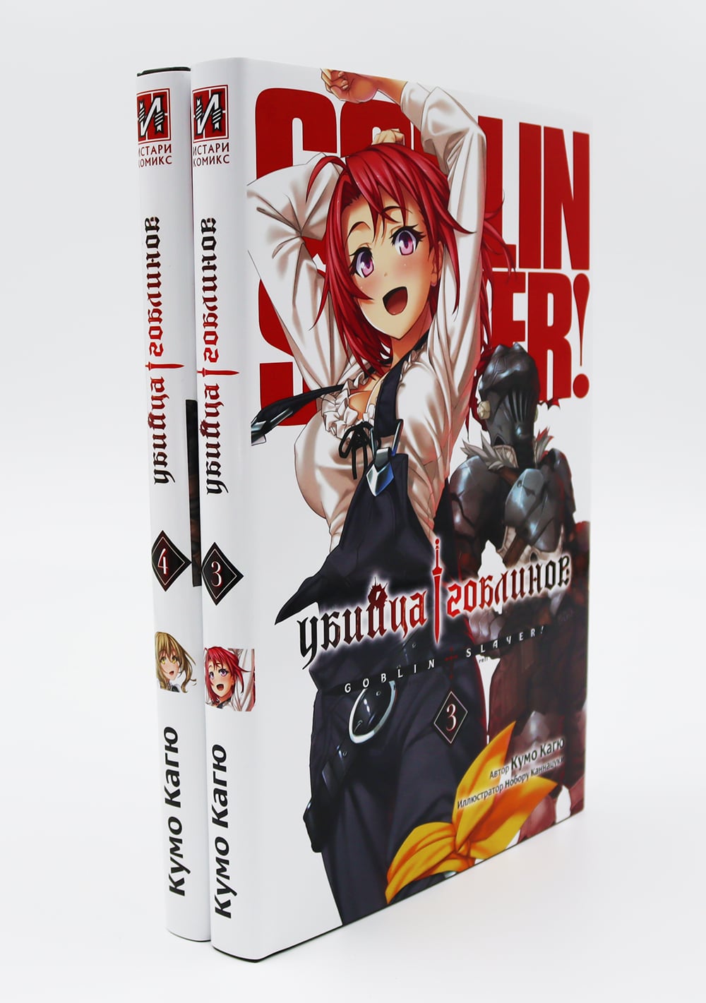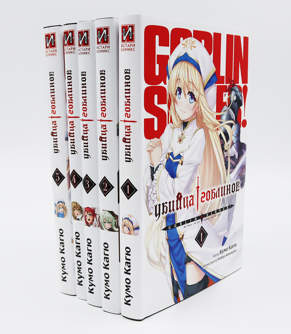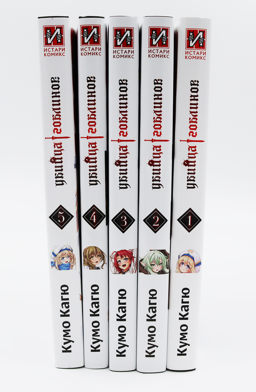 Комплект состоит из 5 томов ранобэ К. Кагю «Убийца гоблинов». В первом томе ходят слухи, что в гильдии Города на Пограничье обитает человек, который достиг серебряного ранга, убивая одних лишь гоблинов. Жрица становится авантюристкой и вступает в свою первую группу, но тут же оказывается в смертельной опасности. Её спасает человек, которого прозвали Убийцей Гоблинов. Он истребляет гоблинов, не выбирая средств и не останавливаясь перед трудностями. Рядом с ним оказываются Жрица, которая ходит с ним на все задания, Регистраторша, искренне благодарная авантюристу за всё, и Пастушка, вечно ждущая его дома. Более того, слухи об Убийце Гоблинов доносятся до некой эльфийки. Она приходит к мужчине и предлагает ему новое задание. Во втором томе в этот раз в гильдию авантюристов приходит задание на имя Убийцы Гоблинов. Заказчиком оказывается архиепископ Верховного бога - герой золотого ранга, сама Дева Меча. В прошлом она приложила руку к победе над королем демонов. Водный Город, самый процветающий город Пограничья, заполонили гоблины. Уже появились первые жертвы. Убийца Гоблинов вместе с Высшей Эльфийкой-лучницей, Жрицей, Ящером-жрецом и Дворфом-шаманом спускается в древнее подземелье и бросает вызов его опасностям. В третьем томе фестиваль урожая уже совсем скоро. Тем временем авантюристы занимаются своими делами: Жрица крутится как белка в колесе из-за храмовых обязанностей, Эльфийка-лучница обижается на одного из своих товарищей, Дворф-шаман и Ящер-жрец готовятся к фестивалю. Ну а Убийца Гоблинов проводит дни, как обычно... Но почему же в Город на Пограничье прибывают три странных путешественницы, заданий на истребление гоблинов почти не остаётся, а загадочный злодей начинает плести закулисные интриги?! В четвертом томе Убийца Гоблинов, Копейщик и Латник отправились выполнять королевский указ... Но на свете ещё много чего интересного. Например, мальчик, который мечтает стать авантюристом. Или же Воин-новичок с Ученицей-клириком, что стремятся к новому рангу. Тут и Регистраторша, что предложила девушкам сыграть в интересную игру... А кто-то и вовсе хочет просто накормить угрюмого Убийцу Гоблинов. Да и он сам куда-то запропастился, оставив своих друзей на целый день одних. В пятом томе я должна вернуть... - Что именно? - Всё. Всё, что я потеряла. Дева Меча поручает авантюристам важное задание: отыскать Дворянку-мечницу, которая отправилась истреблять гоблинов, но так и не вернулась. Убийца Гоблинов соглашается помочь, однако уже вскоре чувствует неладное. Виной тому становятся странное нападение на заснеженную деревню и подозрительный алтарь, обнаруженный искателями приключений. - Они научились у меня?! Один из товарищей оказывается тяжело ранен, но авантюристы всё же умудряются пробраться через гоблинскую пещеру, где натыкаются на нечто невероятное. - Он принадлежит одному из Внешних богов знаний... Богу постижения. Искатели приключений отправляются покорять крепость гоблинов, которыми руководит невиданное существо!
