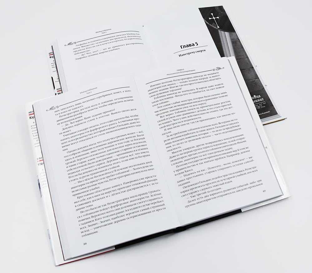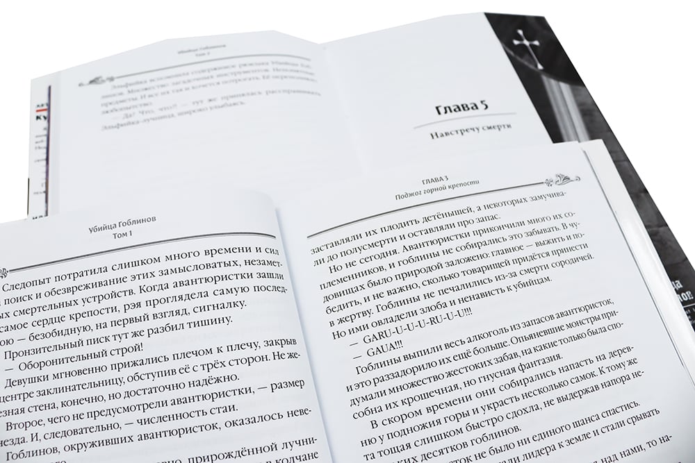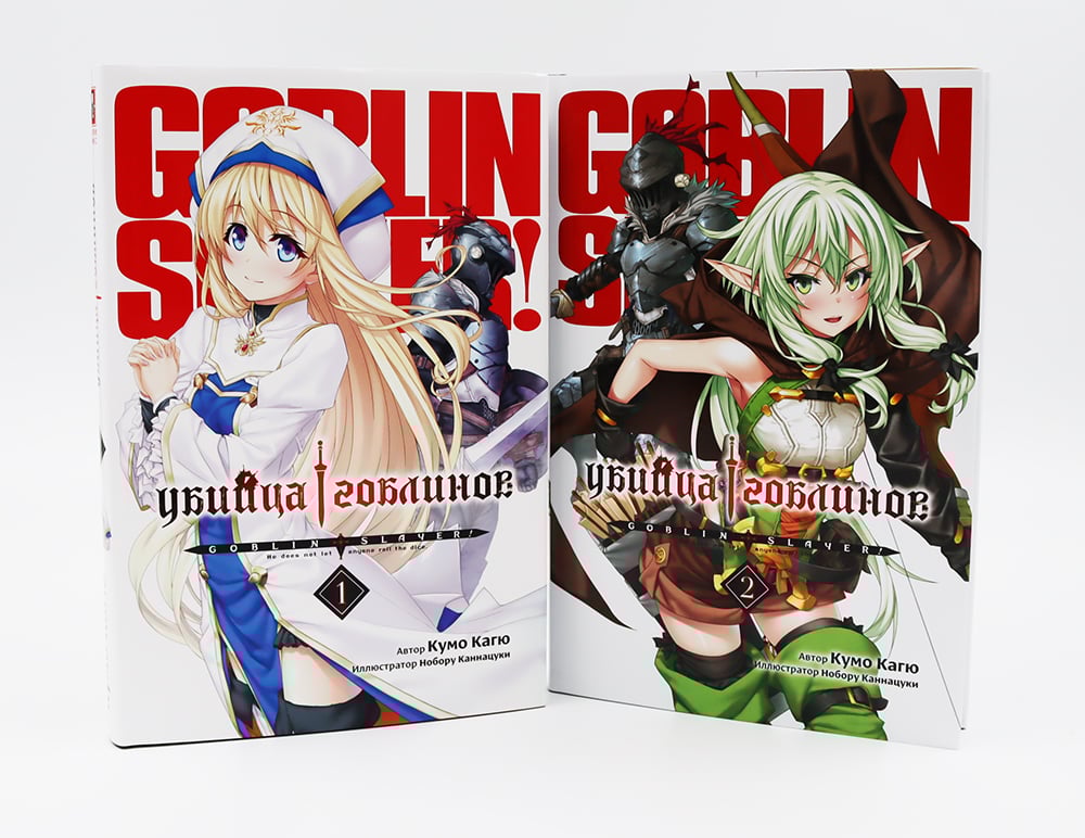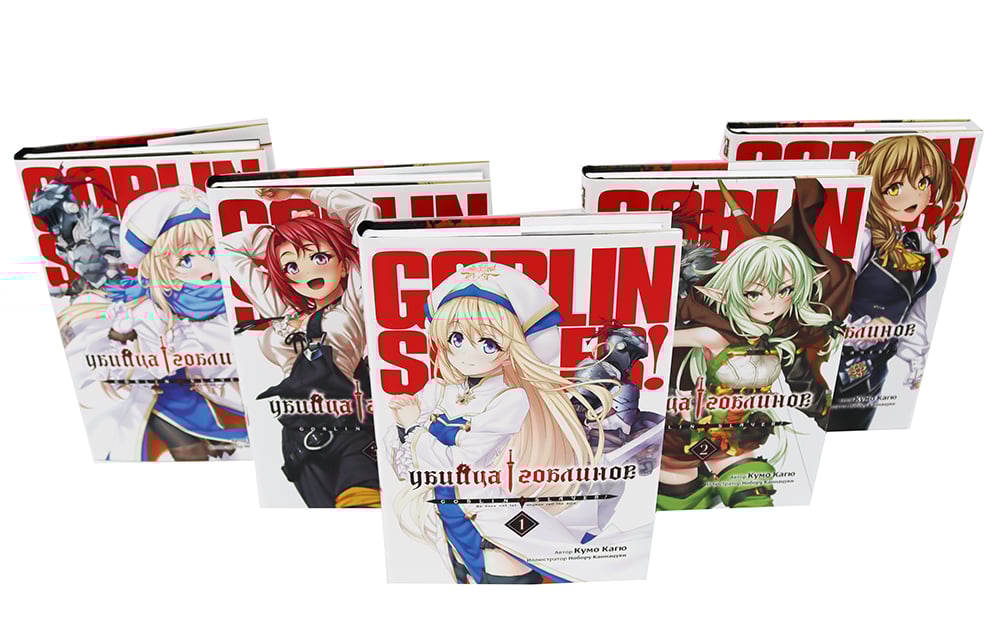 Комплект состоит из 5 томов ранобэ К. Кагю «Убийца гоблинов». В первом томе ходят слухи, что в гильдии Города на Пограничье обитает человек, который достиг серебряного ранга, убивая одних лишь гоблинов. Жрица становится авантюристкой и вступает в свою первую группу, но тут же оказывается в смертельной опасности. Её спасает человек, которого прозвали Убийцей Гоблинов. Он истребляет гоблинов, не выбирая средств и не останавливаясь перед трудностями. Рядом с ним оказываются Жрица, которая ходит с ним на все задания, Регистраторша, искренне благодарная авантюристу за всё, и Пастушка, вечно ждущая его дома. Более того, слухи об Убийце Гоблинов доносятся до некой эльфийки. Она приходит к мужчине и предлагает ему новое задание. Во втором томе в этот раз в гильдию авантюристов приходит задание на имя Убийцы Гоблинов. Заказчиком оказывается архиепископ Верховного бога - герой золотого ранга, сама Дева Меча. В прошлом она приложила руку к победе над королем демонов. Водный Город, самый процветающий город Пограничья, заполонили гоблины. Уже появились первые жертвы. Убийца Гоблинов вместе с Высшей Эльфийкой-лучницей, Жрицей, Ящером-жрецом и Дворфом-шаманом спускается в древнее подземелье и бросает вызов его опасностям. В третьем томе фестиваль урожая уже совсем скоро. Тем временем авантюристы занимаются своими делами: Жрица крутится как белка в колесе из-за храмовых обязанностей, Эльфийка-лучница обижается на одного из своих товарищей, Дворф-шаман и Ящер-жрец готовятся к фестивалю. Ну а Убийца Гоблинов проводит дни, как обычно... Но почему же в Город на Пограничье прибывают три странных путешественницы, заданий на истребление гоблинов почти не остаётся, а загадочный злодей начинает плести закулисные интриги?! В четвертом томе Убийца Гоблинов, Копейщик и Латник отправились выполнять королевский указ... Но на свете ещё много чего интересного. Например, мальчик, который мечтает стать авантюристом. Или же Воин-новичок с Ученицей-клириком, что стремятся к новому рангу. Тут и Регистраторша, что предложила девушкам сыграть в интересную игру... А кто-то и вовсе хочет просто накормить угрюмого Убийцу Гоблинов. Да и он сам куда-то запропастился, оставив своих друзей на целый день одних. В пятом томе я должна вернуть... - Что именно? - Всё. Всё, что я потеряла. Дева Меча поручает авантюристам важное задание: отыскать Дворянку-мечницу, которая отправилась истреблять гоблинов, но так и не вернулась. Убийца Гоблинов соглашается помочь, однако уже вскоре чувствует неладное. Виной тому становятся странное нападение на заснеженную деревню и подозрительный алтарь, обнаруженный искателями приключений. - Они научились у меня?! Один из товарищей оказывается тяжело ранен, но авантюристы всё же умудряются пробраться через гоблинскую пещеру, где натыкаются на нечто невероятное. - Он принадлежит одному из Внешних богов знаний... Богу постижения. Искатели приключений отправляются покорять крепость гоблинов, которыми руководит невиданное существо!