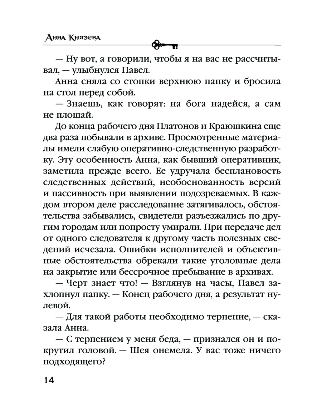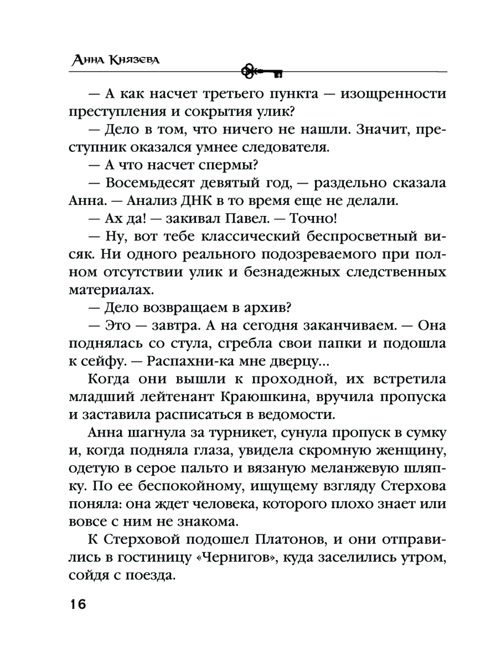 Подполковник столичной полиции Анна Стерхова приехала в командировку для расследования архивных дел, в свое время оставшихся нераскрытыми. И сразу к ней обратилась местная жительница Елена Васильевна Колодяжная - она попросила обратить особое внимание на дело об убийстве ее матери. Оно произошло больше тридцати лет назад прямо на глазах Колодяжной, которой тогда было всего десять. Преступника так и не нашли, и женщина до сих пор не могла оправиться после этого чудовищного убийства, оно продолжало преследовать ее даже спустя годы. Анна решила возобновить закрытое дело и заново изучить вещественные доказательства, но оказалось, что они бесследно исчезли из архива...| Издательство | Эксмо |