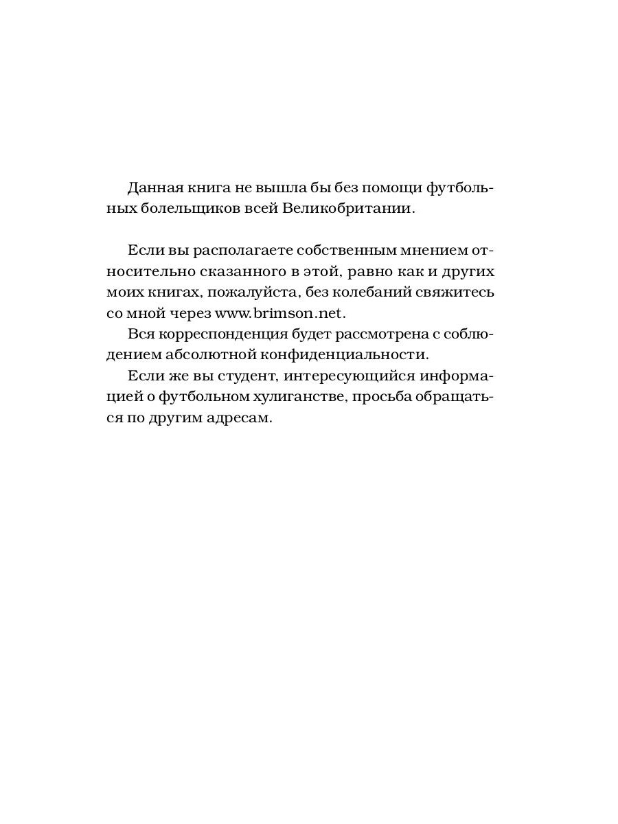 После окончания своей восемнадцатилетней военной службы отставной сержант британских Королевских воздушных сил Дуглас Бримсон решил взяться за писательское дело. Но роями его романов и документальных расследований стали не свидетели Войны в Заливе или Фолклендского кризиса, а обычные англичане, которые, как и сам автор, каждую неделю приходили на трибуны футбольного стадиона. Обыватели называли их хулиганами, полиция предпочитала действие разговорам, и один только Бримсон попробовал во всем разобраться... «Убийцы футбола» - книга о том, как в условиях нарастающего национализма и ксенофобии радикальных болельщиков пытаются перетянуть на свою сторону недобросовестные политики и нацисты. И как британские фанаты этому противостоят.| Издательство | Т8 RUGRAM |