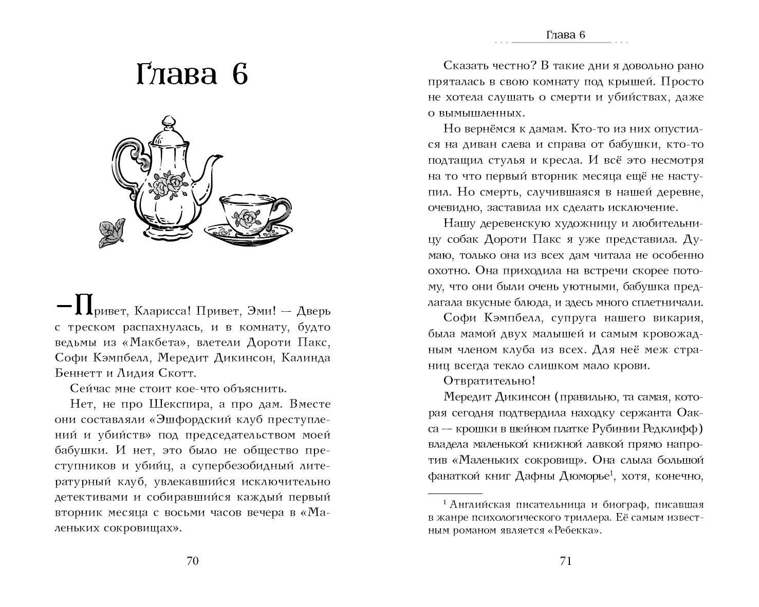 Отличный детский детектив в духе Агаты Кристи! Для тех, кто уже прочитал «Мейзи Хитчинс» и ищет новую загадочную историю с героями своего возраста! 14-тилетняя Эми Ферн расследует преступление, случившееся в наши дни в английской деревне рядом со старинным поместьем. «Это убийство», - сказала бабушка Кларисса, и я была с ней согласна. Хотя звучит немыслимо. Как такое могло произойти в нашей сонной деревушке, где все знают друг друга и где давно не случалось ничего серьёзней кражи велосипеда?! Надо сказать, моя бабушка обожает детективы. И она ни за что не останется в стороне. Она пойдёт по следу, словно мисс Марпл, и обязательно обнаружит убийцу… Что, если им окажется Финн? Нет, я не верю, что парень, который мне так нравится, мог совершить преступление. Но на него указывает слишком много улик. И пока о них знаю только я… Значит, мне нужно опередить и полицию, и бабушку. Чтобы защитить Финна, я проведу собственное расследование! Для читателей от 12 лет и любителей детективов всех возрастов.| Издательство | ООО "Издательство "Эксмо" |