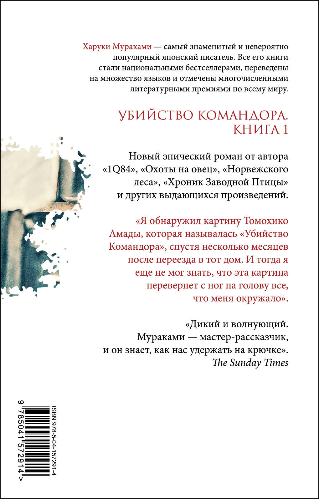 Новый эпический роман от автора мировых бестселлеров «1Q84», «Охота на овец», «Норвежский лес», «Хроники Заводной птицы» и других. «Убийство Командора» - шедевр, написанный известным в Японии художником Томохико Амадой. Картина, которую никто не должен видеть. Но главный герой романа, художник-портретист, нашел полотно на чердаке дома Томохико Амады, когда поселился в нем после расставания с женой. «Выходит, началом всему, что происходит вокруг меня, стало то, что я вынес на свет эту картину? И тем самым разомкнул круг?» Чтобы его замкнуть, пришлось окунуться в другую реальность, убить Командора, спасти тринадцатилетнюю девочку, решиться на разговор с женой, раскрыть тайну создателя картины, найти себя. «Люди могут добиться чего угодно, подумал я, если только пожелают этого всем сердцем». «Дикий и волнующий. Мураками - мастер-рассказчик, и он знает, как нас удержать на крючке». - The Sunday Times «"Убийство Командора" - это японский Гэтсби в подсознательной стране чудес». - The Irish Times| Издательство | ООО "Издательство "Эксмо" |