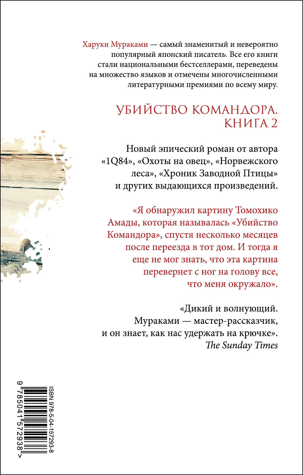 Новый эпический роман от автора мировых бестселлеров «1Q84», «Охота на овец», «Норвежский лес», «Хроники Заводной птицы» и других. «Убийство Командора» - шедевр, написанный известным в Японии художником Томохико Амадой. Картина, которую никто не должен видеть. Но главный герой романа, художник-портретист, нашел полотно на чердаке дома Томохико Амады, когда поселился в нем после расставания с женой. «Выходит, началом всему, что происходит вокруг меня, стало то, что я вынес на свет эту картину? И тем самым разомкнул круг?» Чтобы его замкнуть, пришлось окунуться в другую реальность, убить Командора, спасти тринадцатилетнюю девочку, решиться на разговор с женой, раскрыть тайну создателя картины, найти себя. «Люди могут добиться чего угодно, подумал я, если только пожелают этого всем сердцем». «Дикий и волнующий. Мураками - мастер-рассказчик, и он знает, как нас удержать на крючке». - The Sunday Times «"Убить командора" - это японский Гэтсби в подсознательной стране чудес». - The Irish Times| Издательство | ООО "Издательство "Эксмо" |