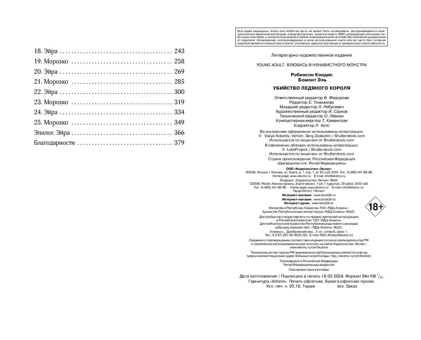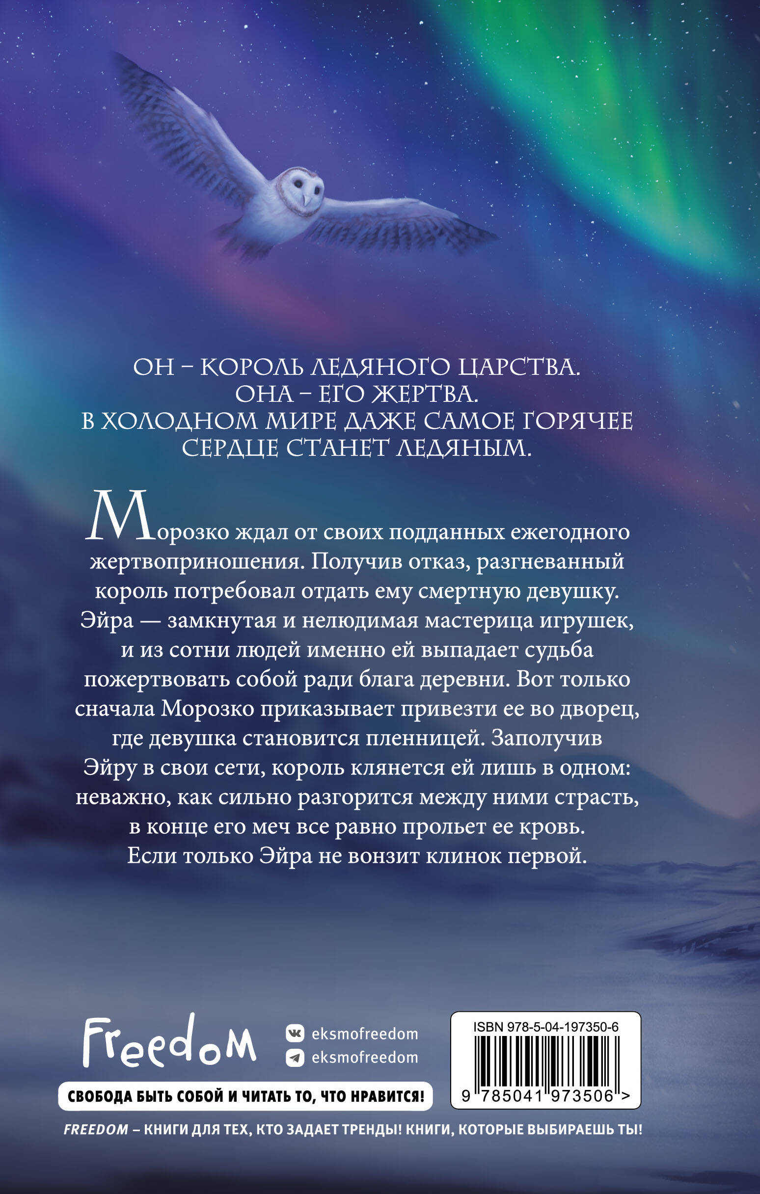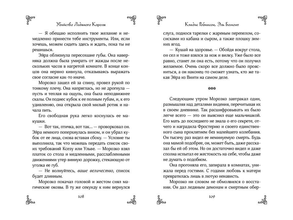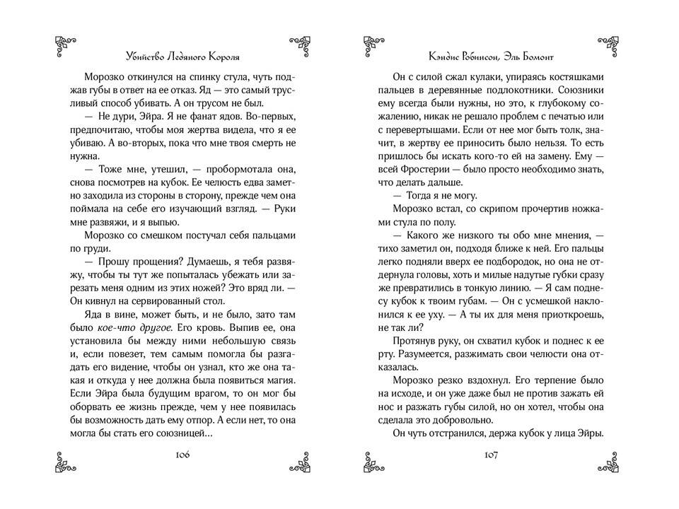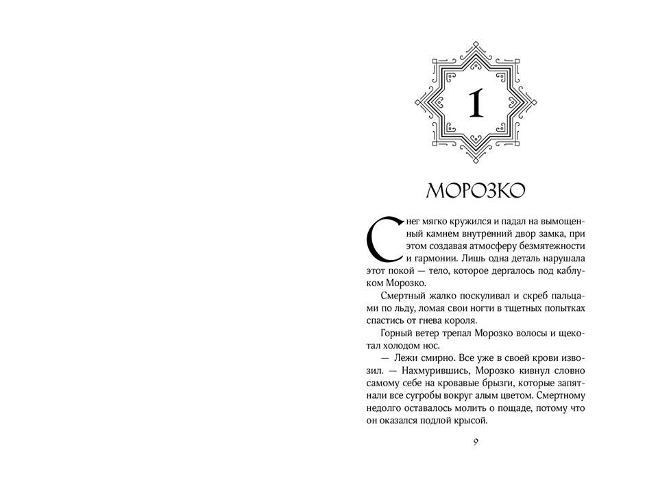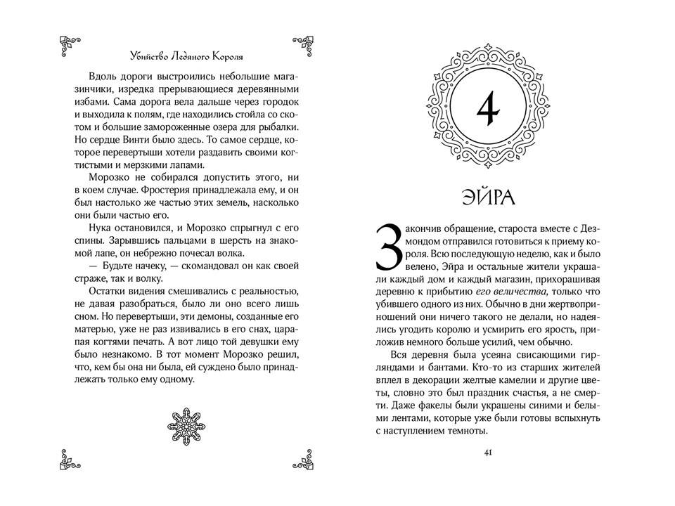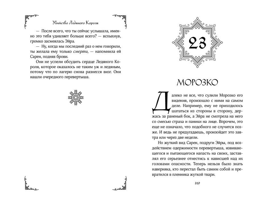 «Убийство ледяного короля» - одиночная история захватывающей серии молодежных фэнтези-романов «Влюбись в ненавистного монстра» от разных авторов. Романы серии объединяет троп «от ненависти до любви». Если вам нравятся сильные героини, серая мораль, а также медленное, но пленительное развитие отношений - вам стоит познакомиться с историей Морозко и Эйры. Яркая, захватывающая и остроумная история, полная опасностей, интриг и страстей, придется по душе фанатам Элис Ковы и Дженнифер Арментроут! Он - король ледяного царства. Она - его жертва. В холодном мире даже самое горячее сердце станет ледяным. Морозко ждал от своих подданных ежегодного жертвоприношения. Получив отказ, разгневанный король потребовал отдать ему смертную девушку. Эйра - замкнутая и нелюдимая мастерица игрушек, и из сотни людей именно ей выпадает судьба пожертвовать собой ради блага деревни. Вот только сначала Морозко приказывает привезти ее во дворец, где девушка становится пленницей. Заполучив Эйру в свои сети, король клянется ей лишь в одном: неважно, как сильно разгорится между ними страсть, в конце его меч все равно прольет ее кровь. Если только Эйра не вонзит клинок первой.| Издательство | ООО "Издательство "Эксмо" |