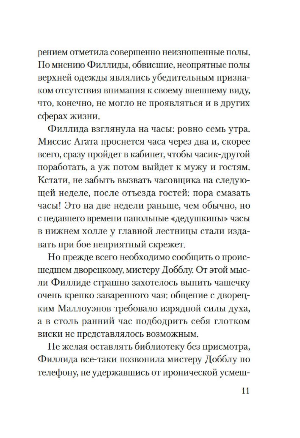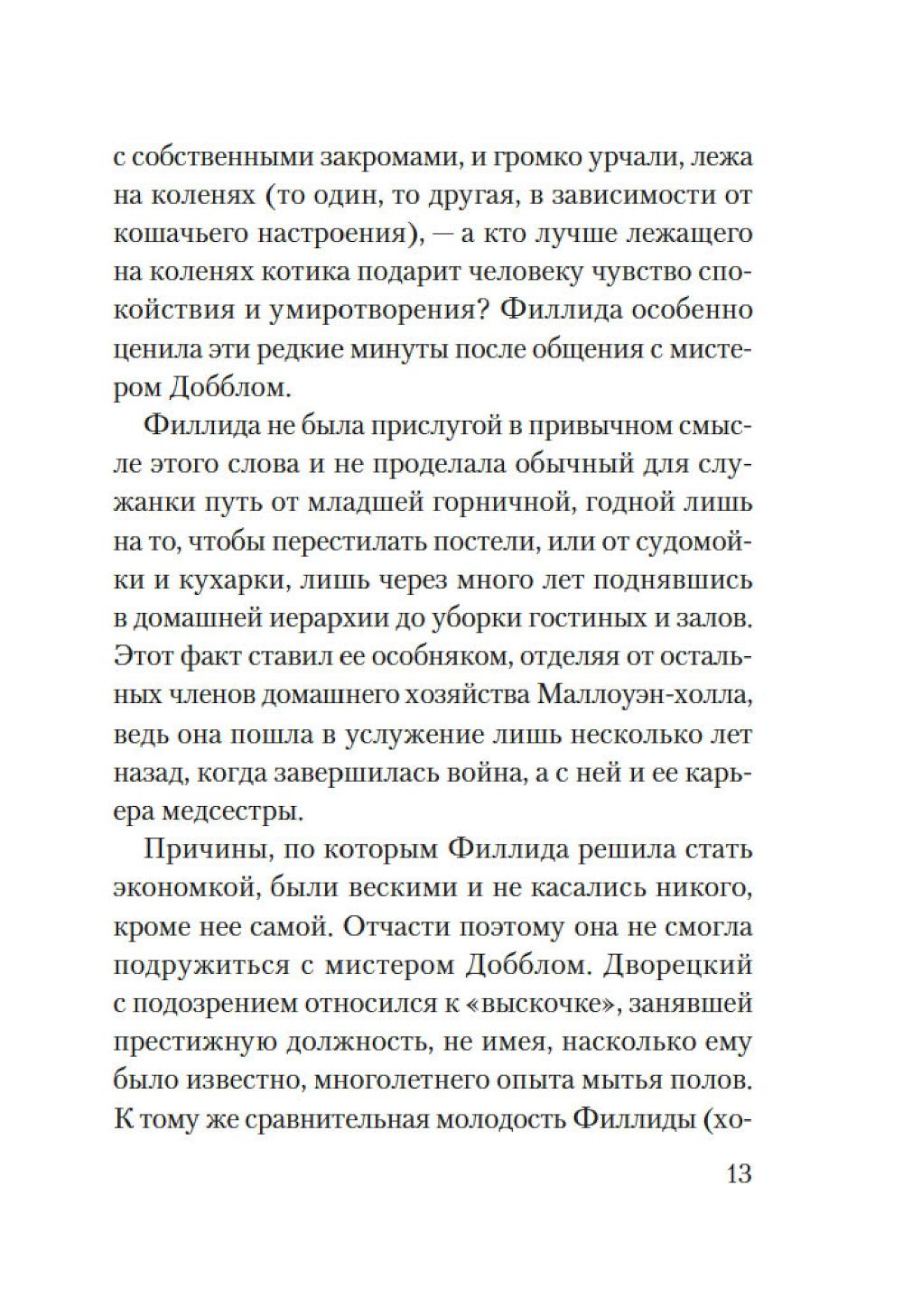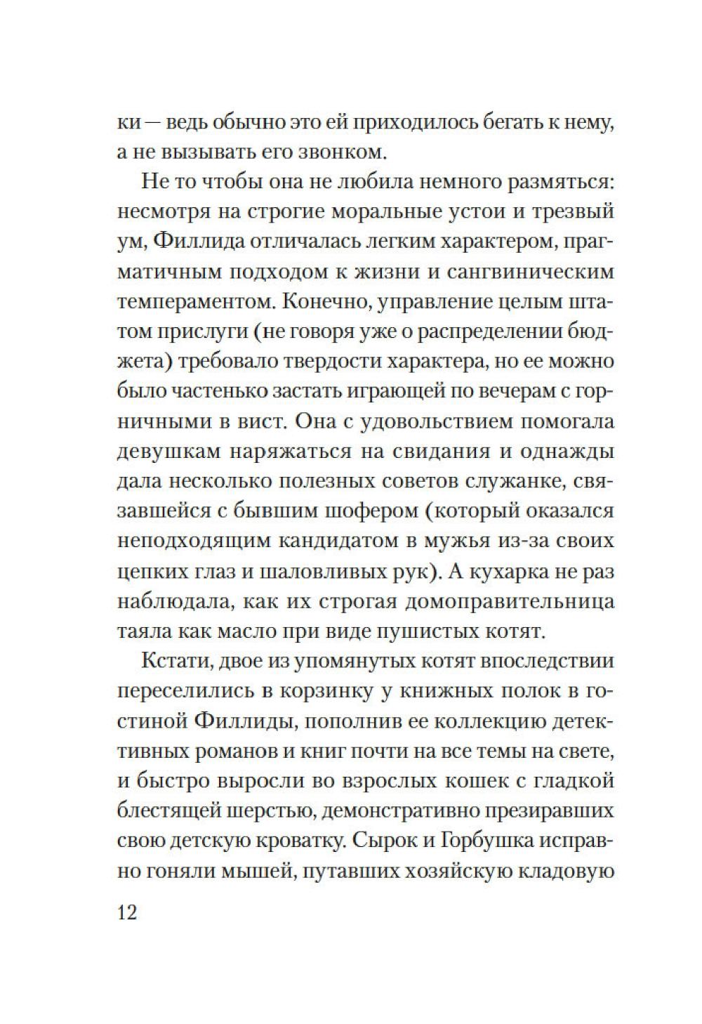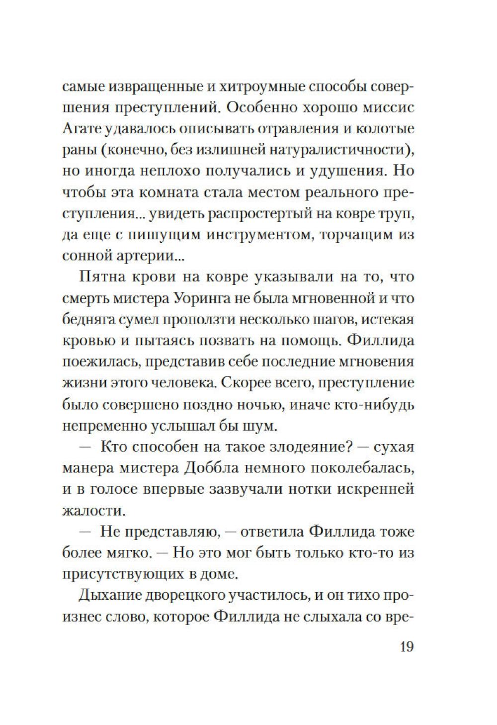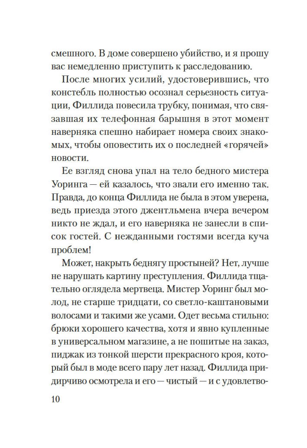 Филлида Брайт управляет хозяйством в поместье, затерянном среди зеленых холмов Девоншира. Но это вовсе не заурядный загородный дом - поместье принадлежит мужу знаменитой Агаты Кристи, давней подруги Филлиды. За ужином хозяева обсуждают с гостями оригинальные способы убийства, но, когда наутро Филлида находит в библиотеке труп, это становится для нее неожиданностью... Экономка пытается помочь полиции, но тщетно, и ей приходится расследовать преступление самостоятельно. А после второго убийства сомнений не остается: убийца - один из гостей!| Издательство | Иностранка |