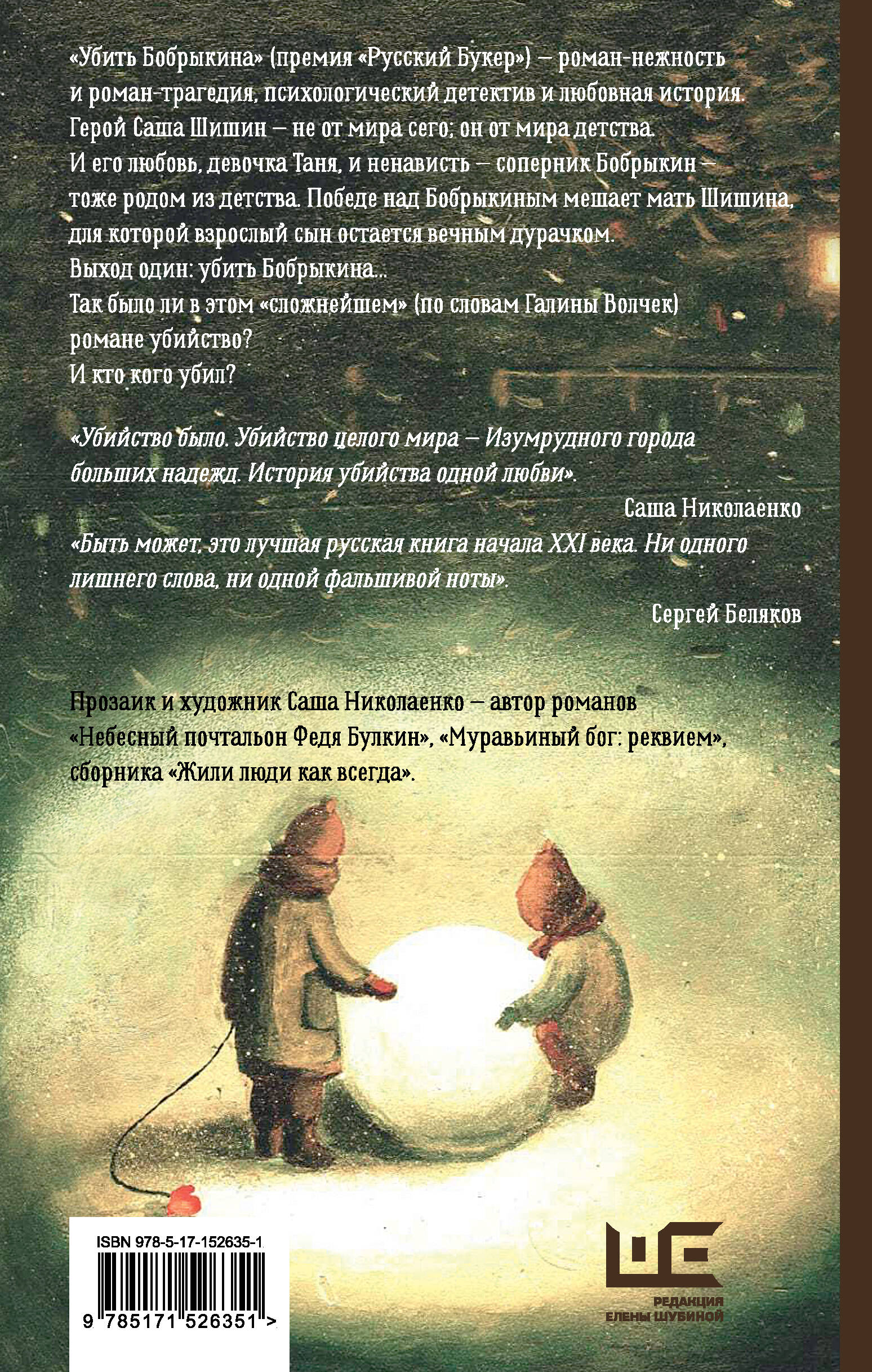 Новое издание романа лауреата премии «Русский Букер» Саши Николаенко, автора бестселлера «Небесный почтальон Федя Булкин». В 2023 году в театре Современник выходит спектакль по мотивам книги, режиссер Гарик Сукачев. Роман неслучившегося взросления и психологический детектив. Книга о попытках вырваться из несвободы, выросшей из внутреннего напряжения и внешнего давления. Книга об особом ребенке в теле взрослого человека, ревнующего любимую к сопернику. Не имеющая аналогов работа со словом - поэтичный лабиринт образов, записанных художником, вплетающим картинки в слова.| Издательство | ИЗДАТЕЛЬСТВО "АСТ" |