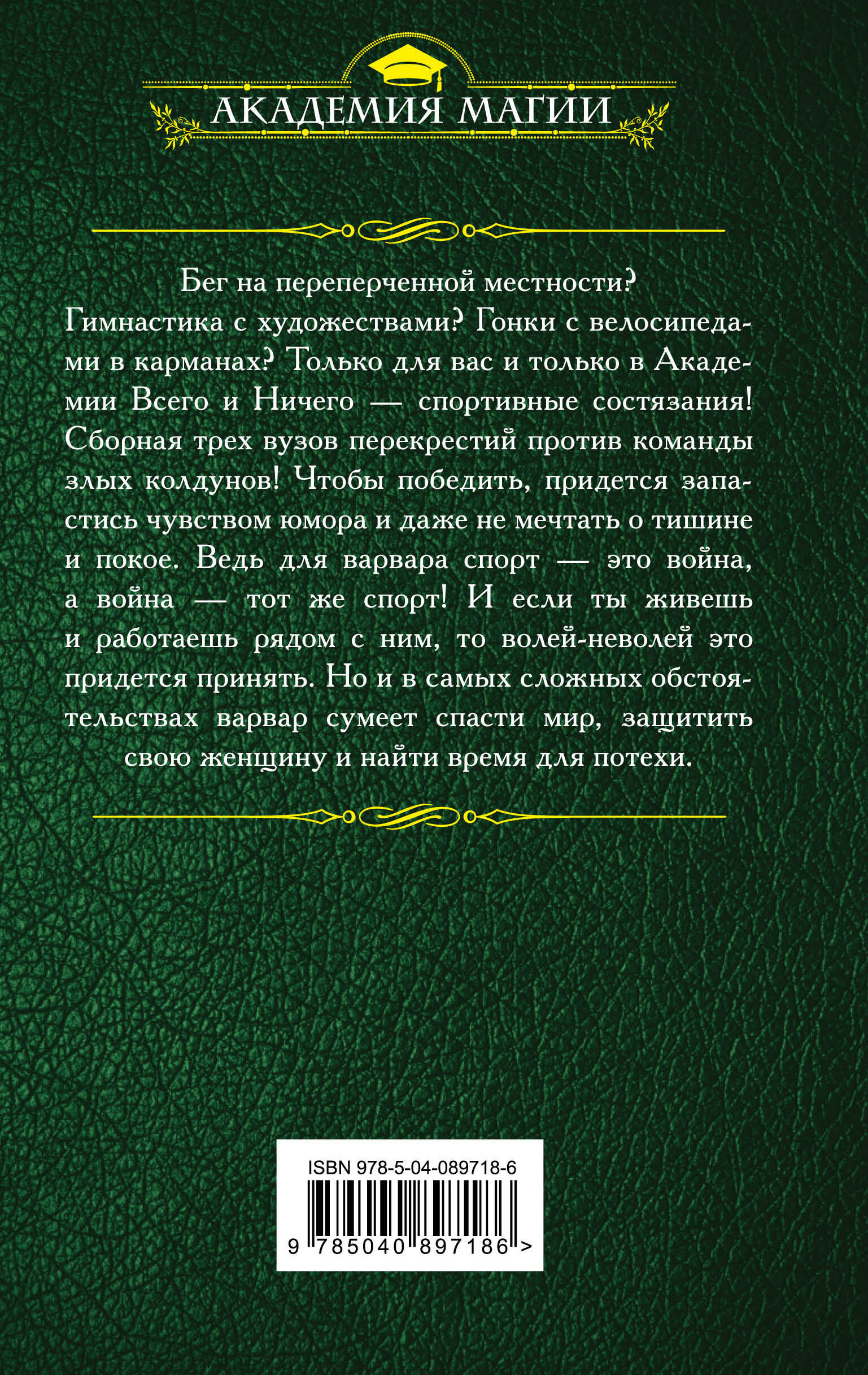 Бег на переперченной местности? Гимнастика с художествами? Гонки с велосипедами в карманах? Только для вас и только в Академии Всего и Ничего - спортивные состязания! Сборная трех вузов перекрестий против команды злых колдунов! Чтобы победить, придется запастись чувством юмора и даже не мечтать о тишине и покое. Ведь для варвара спорт - это война, а война - тот же спорт! И если ты живешь и работаешь рядом с ним, то волей-неволей это придется принять. Но и в самых сложных обстоятельствах варвар сумеет спасти мир, защитить свою женщину и найти время для потехи.| Издательство | ООО "Издательство "Эксмо" |