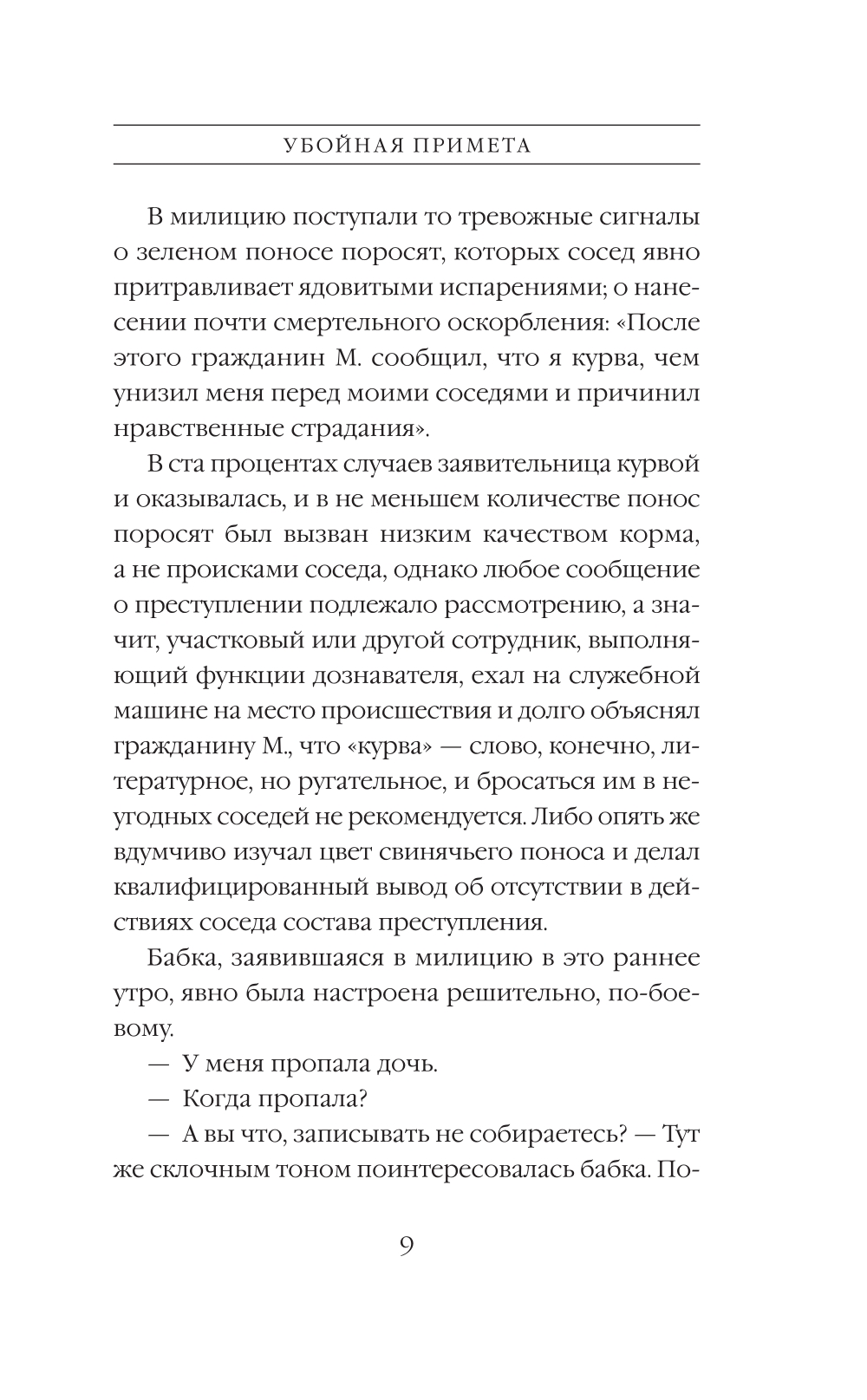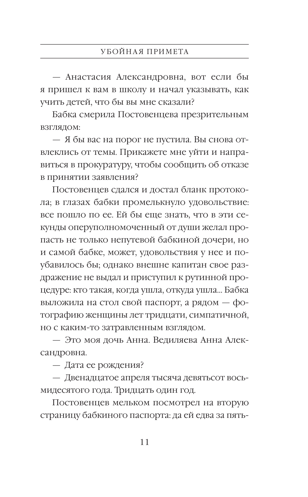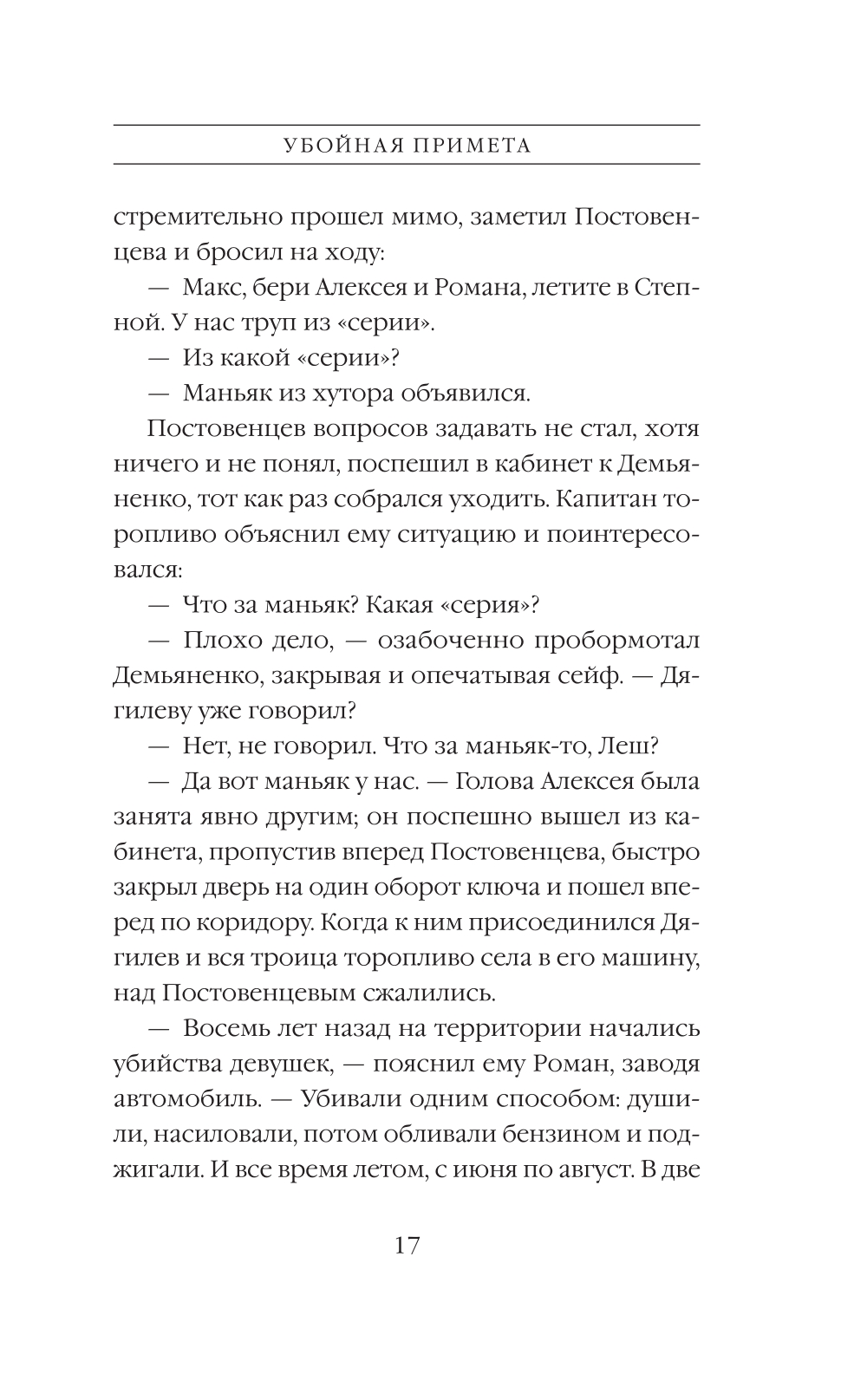Для поклонников книг Александры Марининой. Российский детектив, написанный женщиной-следователем. Реальные факты, узнаваемое место действия, неопознанные тела, задержания, допросы - полное погружение в сложную, но увлекательную «кухню» следствия... В камышах, недалеко от дороги лежит тело девушки: одна нога подогнута, вторая выпрямлена, руки под телом. Рядом - черная женская сумочка. Все за исключением лица обожжено. Знакомый почерк... Кровавый маньяк терроризирует округу уже несколько лет подряд. Сыщики сбились с ног. Несмотря на обилие эпизодов, выяснить приметы преступника не удается. Единственная зацепка - бежевые «Жигули», замеченные случайным свидетелем после одного из происшествий. Но точно установить машину и ее владельца не представляется возможным. Количество жертв становится угрожающим. Пока внимание оперативников не привлекла одна неожиданная находка…| Издательство | Эксмо |