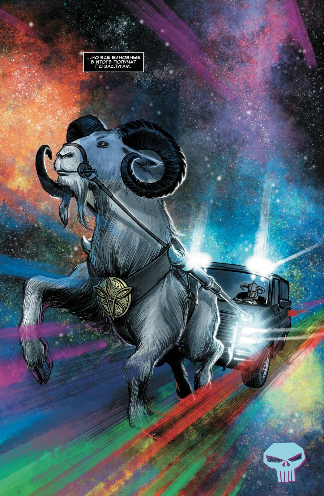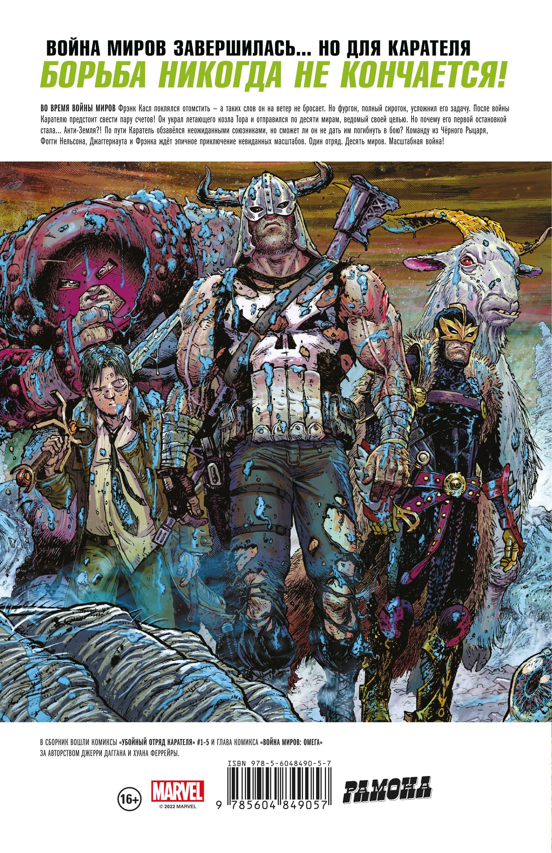 Во время войны миров Фрэнк Касл поклялся отомстить - а таких слов он на ветер не бросает. Но фургон, полный сироток, усложнил его задачу. После войны Карателю предстоит свести пару счетов! Он украл летающего козла Тора и отправился по десяти мирам, ведомый своей целью. Но почему его первой остановкой стала... Анти-Земля?! По пути Каратель обзавёлся неожиданными союзниками, но сможет ли он не дать им погибнуть в бою? Команду из Чёрного Рыцаря,