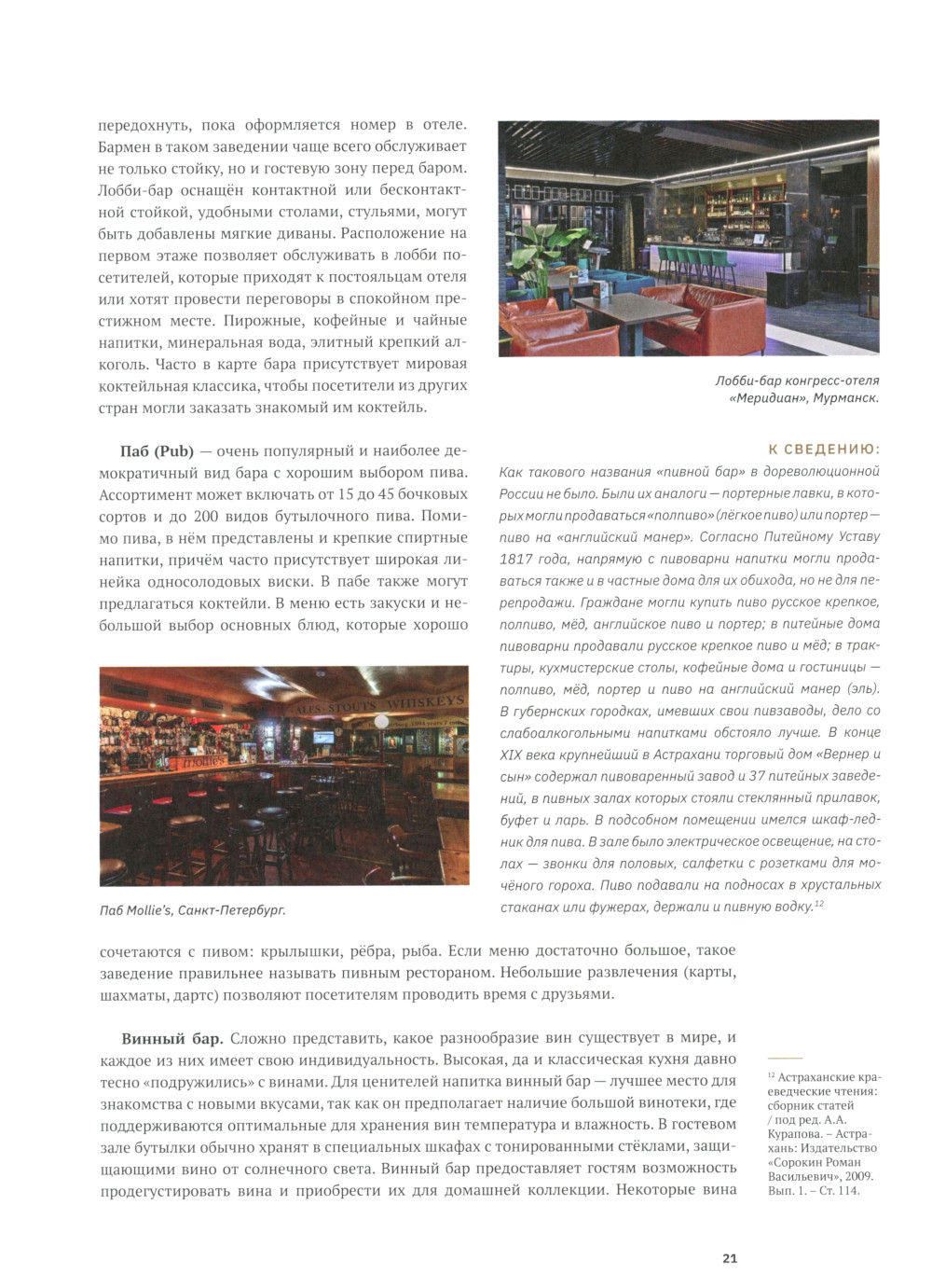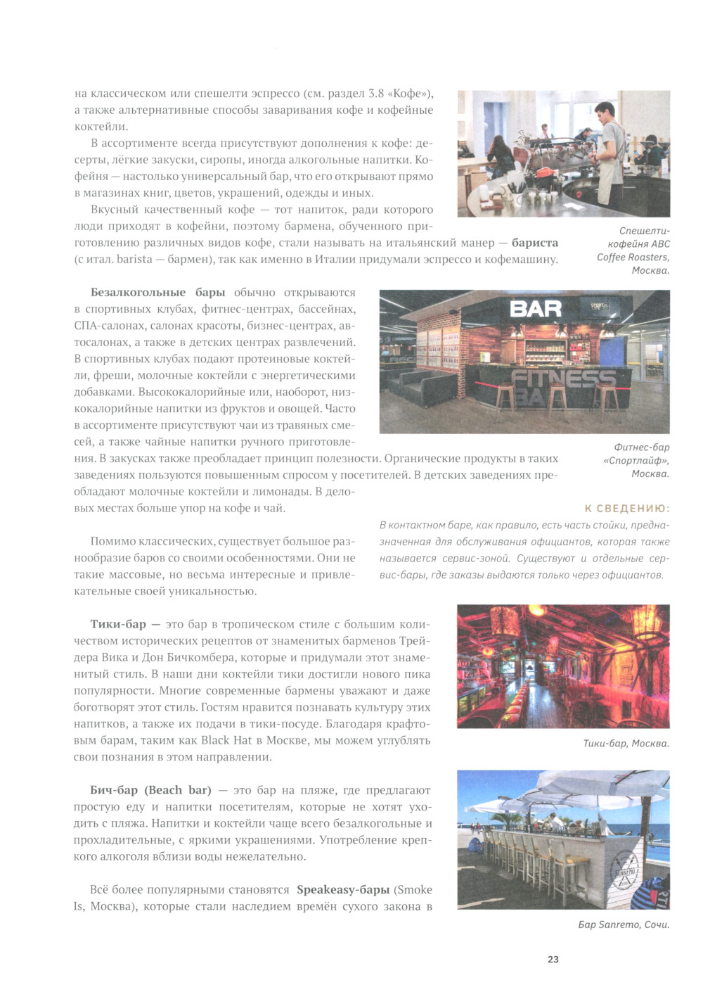 «Учебник бармена» (второе издание) - официальное издание Барменской Ассоциации России (Б.А.Р.). Книга предназначена для полноценного обучения профессии «бармен», а также для повышения квалификации барменов с опытом. «Учебник бармена» содержит стандарты профессии «бармен», утверждённые Барменской Ассоциацией России. В книге представлены теоретические, справочные и прикладные материалы, которые были собраны специалистами Б.А.Р. Особое внимание уделено профессиональной терминологии, правилам подачи напитков, технологиям приготовления коктейлей и кофе, основам миксологии, а также приёмам качественного сервиса, навыкам продаж и эффективной коммуникации с гостями. В учебном пособии подробно раскрыты требования действующего профстандарта «Офици-ант/бармен» №910н от 01.12.2015 г., а также рассмотрены вопросы техники безопасности и приведены примеры оформления официальных документов, с которыми работает бармен: кассовая книга, накладная, технико-технологическая карта, чек-лист, стоп-лист и другие. В книге представлено более 400 рецептур, включая официальные коктейли Международной Ассоциации Барменов (IBA), которые прошли проверку временем и стали всемирно известными. В дополнение к книге разработано мобильное приложение «Учебник бармена» с удобным поиском на платформах Android и iOS (бесплатно для владельцев печатного издания), а также коктейльный портал barcocktails.ru для профессионального подбора и адаптации рецептур под требования любого бара. Выражаем благодарность меценату Ваньянц Михаилу за помощь в издании «Учебника бармена».
