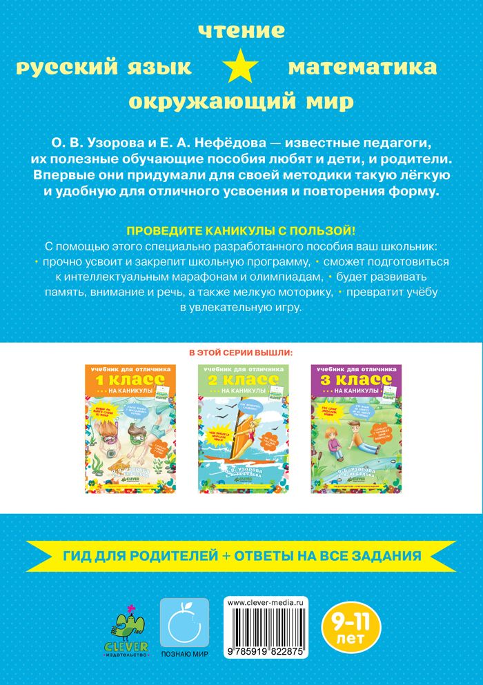 Проведите каникулы с большой пользой! Авторы учебника - известные педагоги, их обучающие пособия любят и дети, и родители.