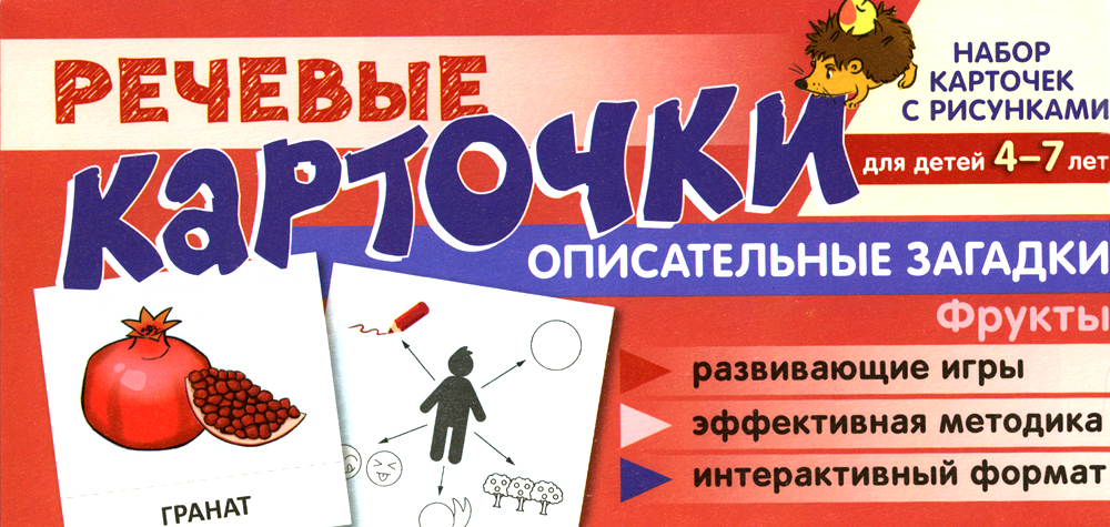 Комплект «Речевые карточки. Описательные загадки. Фрукты» представляет собой 12 листов, состоящих из 35 карточек и 4 игр. Ребёнок в игровой форме научится различать по наглядной схеме характерные признаки предметов (цвет, форма, величина), составлять простые загадки описательного характера, делать выводы и умозаключения, расширит словарный запас. Учебно-игровой комплект поможет: • развить речь; • обогатить словарный запас; • научить составлять описательный рассказ. Желаем увлекательных занятий!| Издательство | Творческий центр Сфера |
