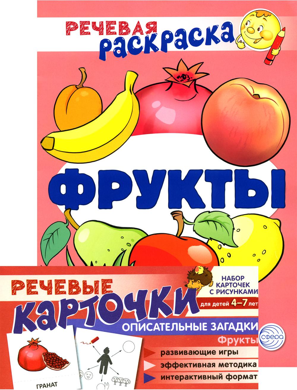 Учебно-игровой комплект. Фрукты: Речевая раскраска + набор карточек