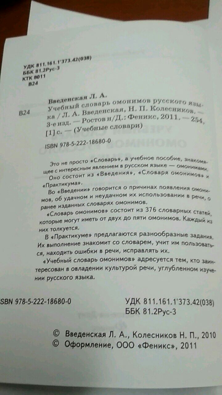 Во "Введении" говорится о причинах появления омонимов, об удачном и неудачном их использовании в речи, о ранее изданных словарях омонимов.