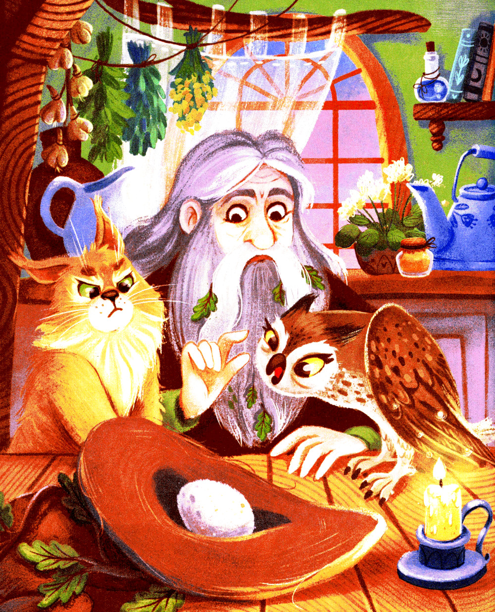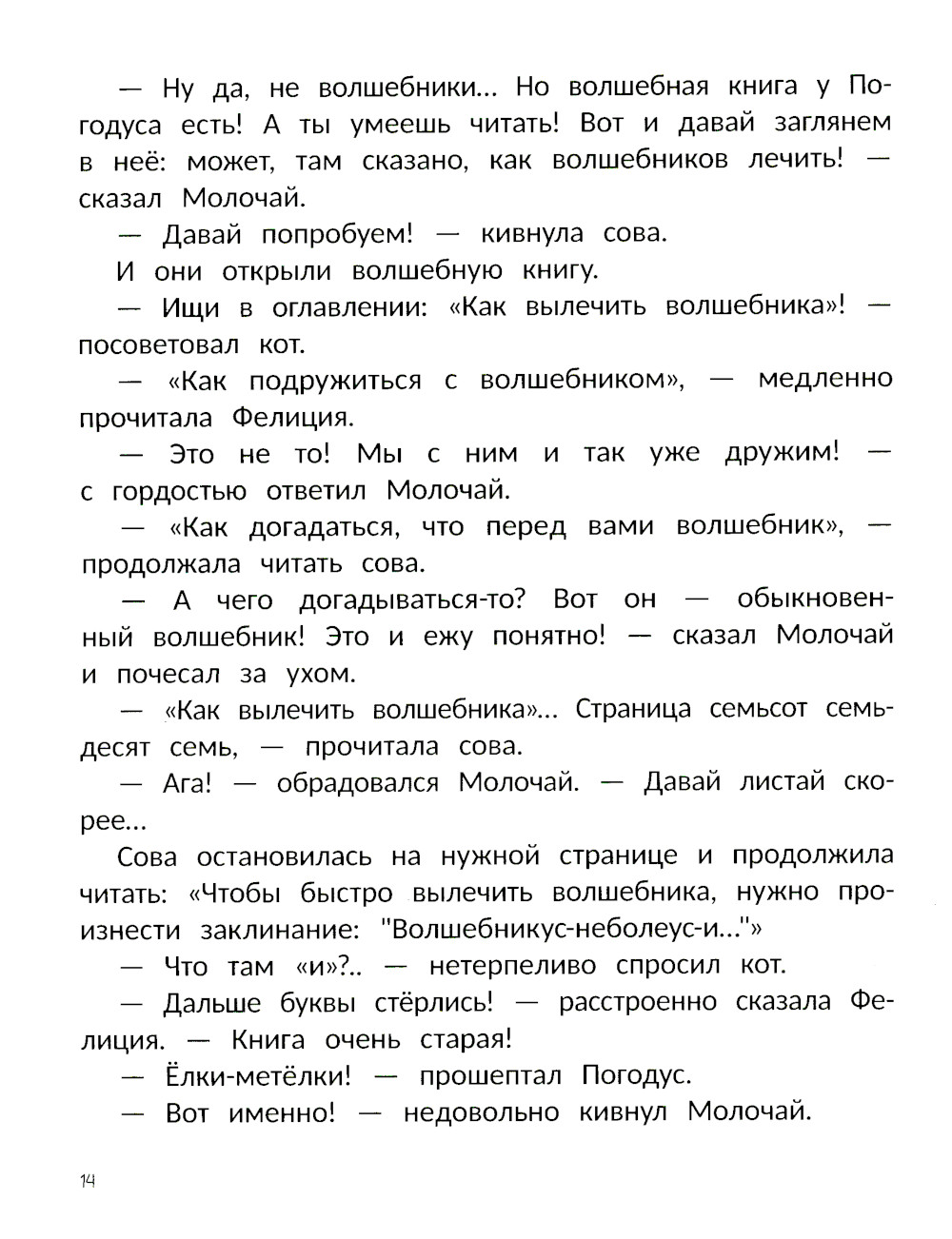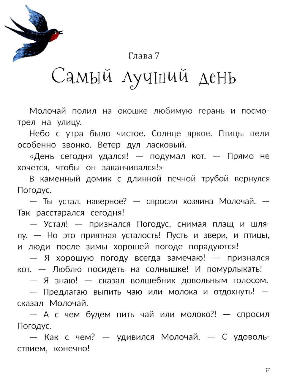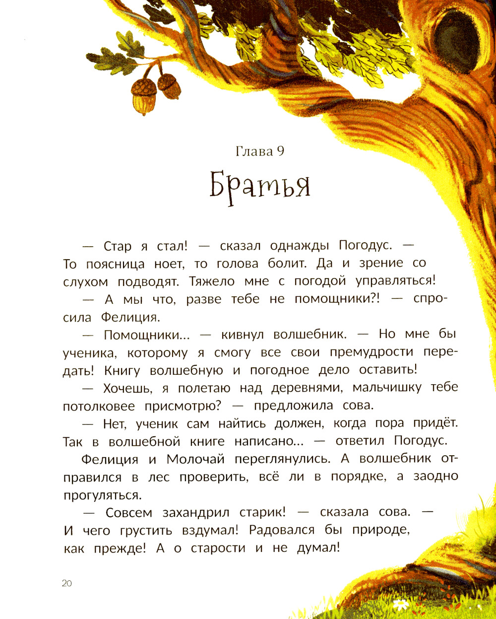 В домике на окраине леса живёт волшебник по имени Погодус. Он следит за сменой времён года, вызывает дождь, снег и туман, рисует радугу, перекрашивает к весне зайцев, готовит луну и приклеивает к небу звёзды. Стареющий волшебник чувствует, что ему нужен ученик, и однажды находит у себя в шляпе яйцо, из которого вылупляется маленькая девочка...| Издательство | Феникс |