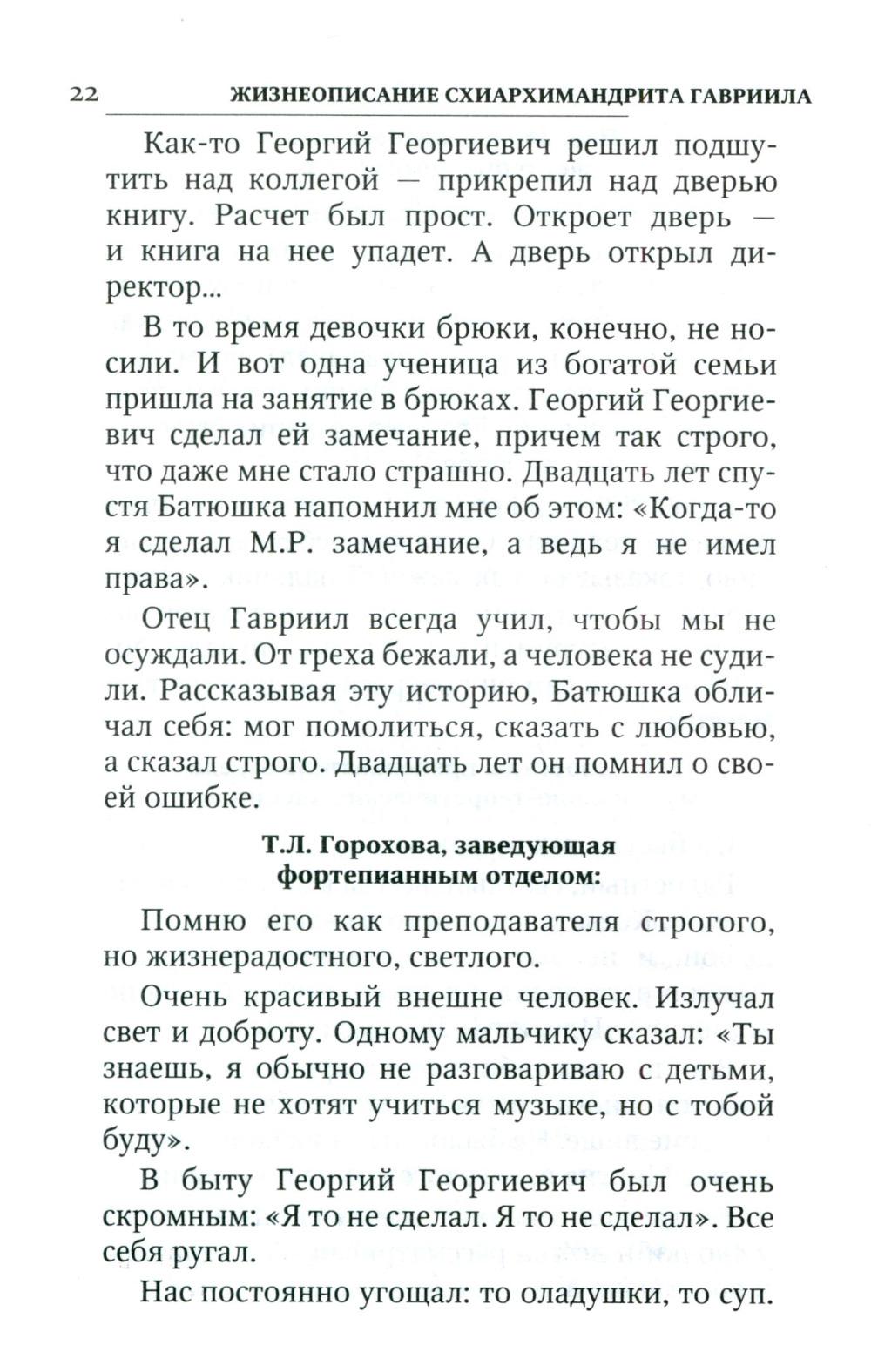 В настоящем жизнеописании ученика схиархимандрита Виталия (Сидоренко) использованы устные воспоминания схиархимандрита Гавриила, материалы его архива, воспоминания многочисленных духовных чад и просто людей, которым посчастливилось в наши безбожные дни видеть собственными глазами одного из праведников Божиих, сияющего любовью Христовой как един от древних.| Издательство | Терирем |