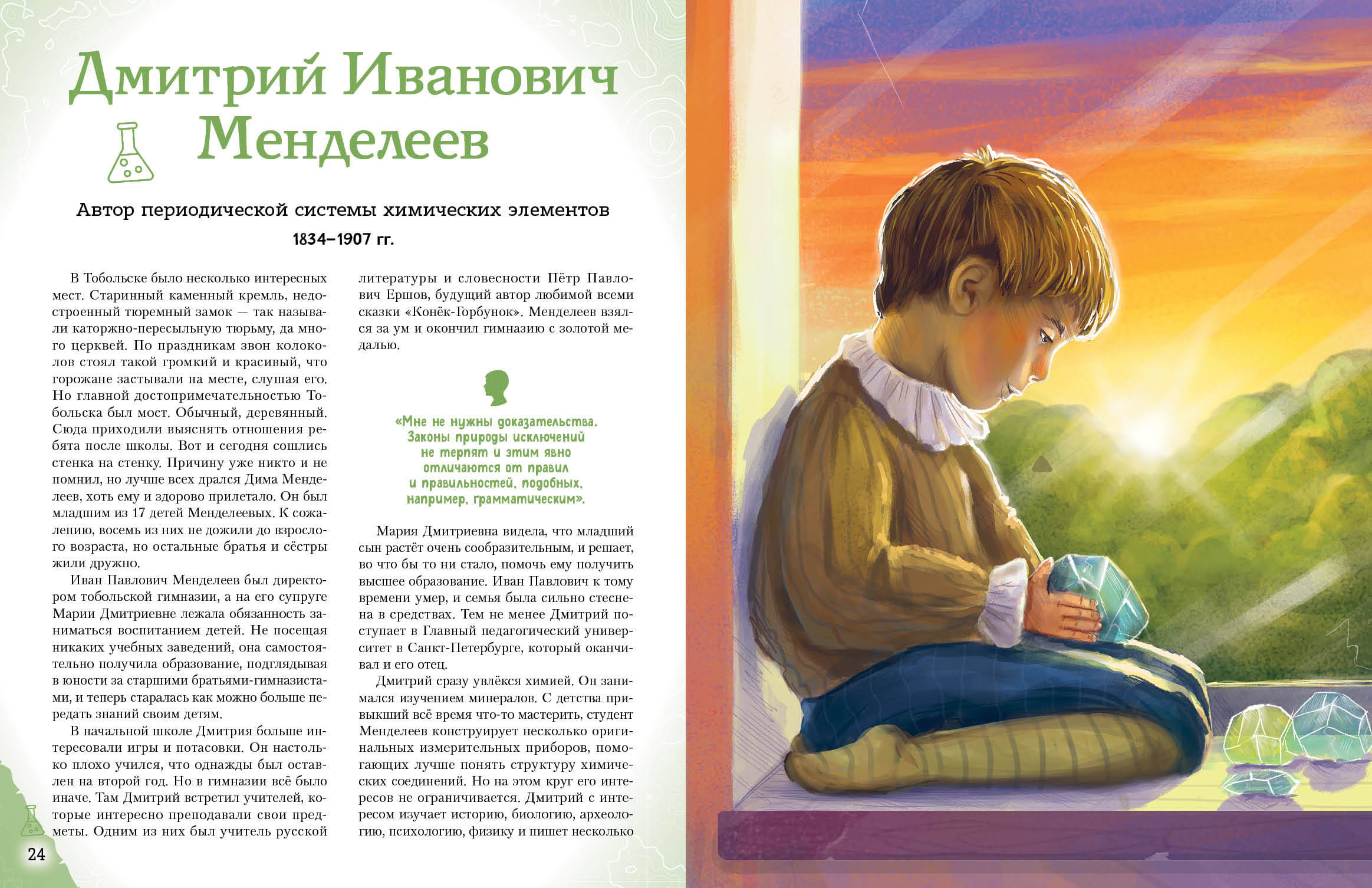 Эта книга патриотической серии «Великие люди великой страны» рассказывает о двадцати наших знаменитых соотечественниках - врачах, геологах, авиаконструкторах, палеонтологах, основоположниках и реформаторах наук, чьи имена навсегда останутся в истории России. Кто первым изобрёл прототип автомобиля? Кому удалось открыть фотосинтез? Кто заложил основы российской космонавтики? Захватывающие сюжеты в жанре нарративного нонфикшена, исторических «детективов» и «боевиков»! В каждом рассказе - вдохновляющая читателей на собственные свершения история успеха, невероятный пример силы воли и стойкости характера! Динамичные, запоминающиеся, современные, яркие иллюстрации созданы специально для этой книги! Издание предназначено для среднего школьного возраста, однако будет интересно и взрослым, а также станет неповторимым подарком по любому поводу для всех, кто любит Россию и гордится ею. Читайте всей семьёй и узнавайте всё самое интересное о великих людях нашей страны!| Издательство | ООО "Издательство "Эксмо" |