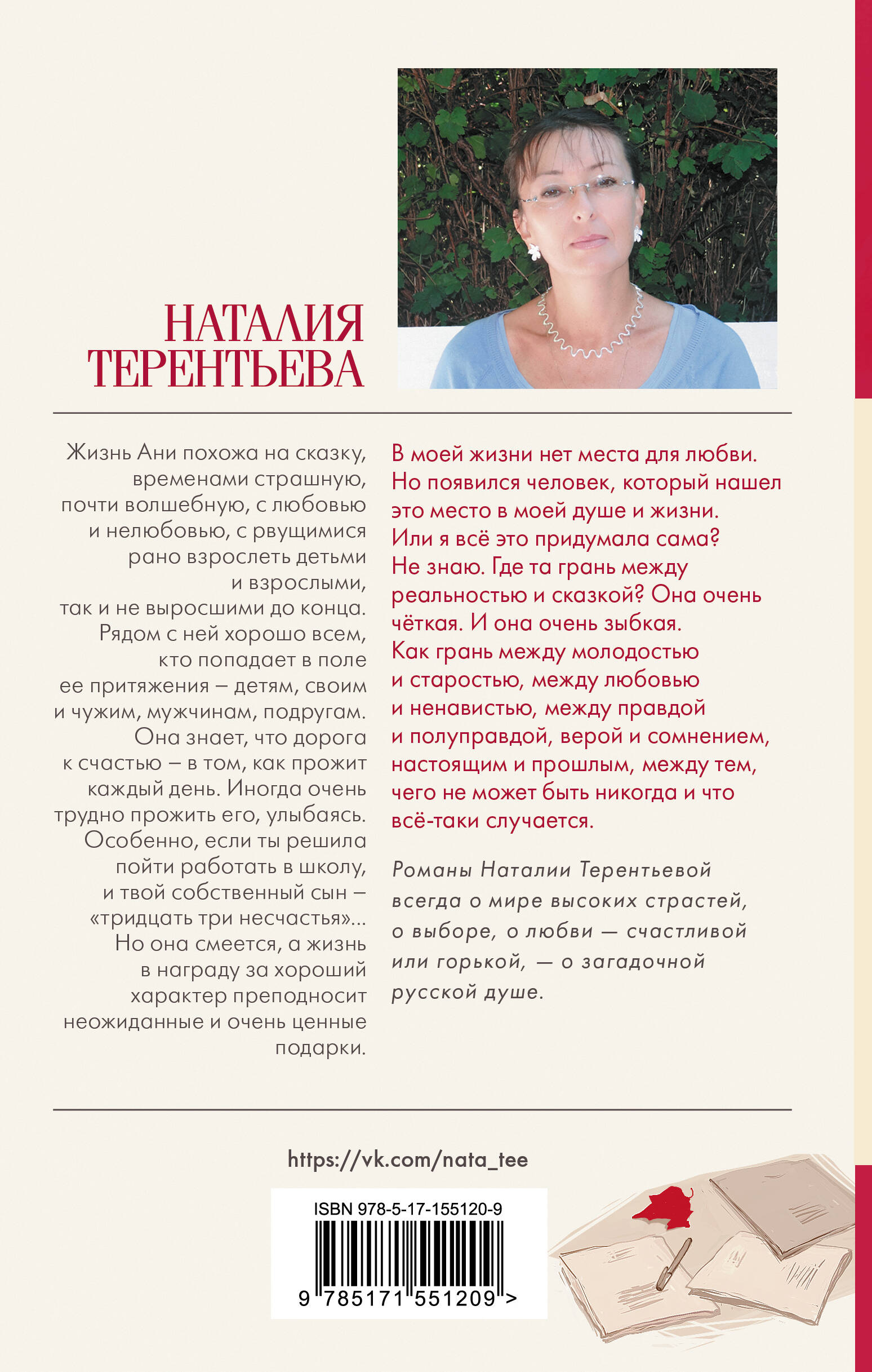 Жизнь Ани похожа на сказку, временами страшную, почти волшебную, с любовью и нелюбовью, с рвущимися рано взрослеть детьми и взрослыми, так и не выросшими до конца. Рядом с ней хорошо всем, кто попадает в поле ее притяжения - детям, своим и чужим, мужчинам, подругам. Она знает, что дорога к счастью - в том, как прожит каждый день. Иногда очень трудно прожить его, улыбаясь. Особенно, если ты решила пойти работать в школу, и твой собственный сын - "тридцать три несчастья"… Но она смеется, а жизнь в награду за хороший характер преподносит неожиданные и очень ценные подарки.| Издательство | ИЗДАТЕЛЬСТВО "АСТ" |