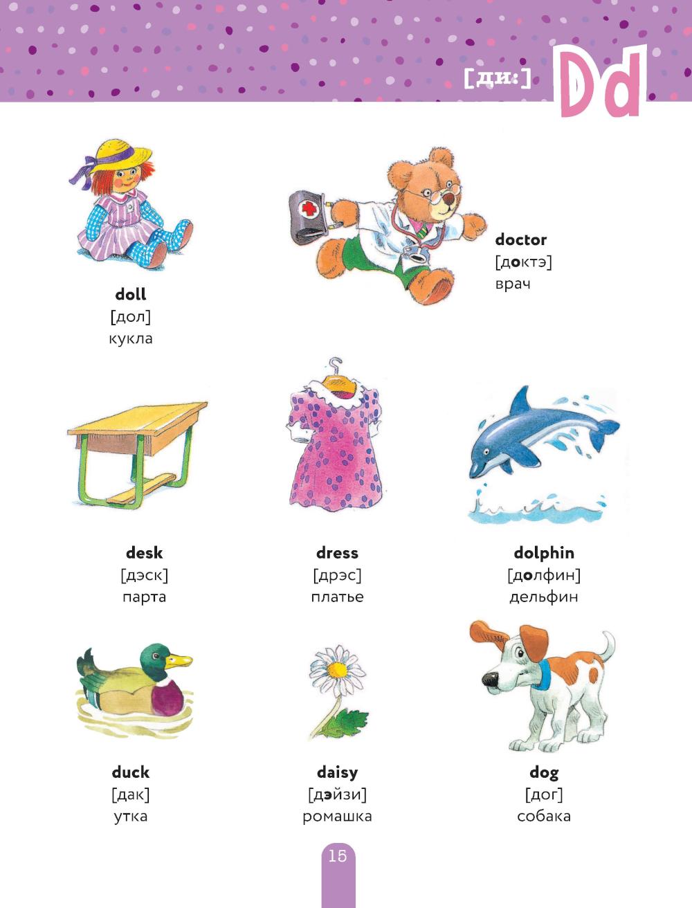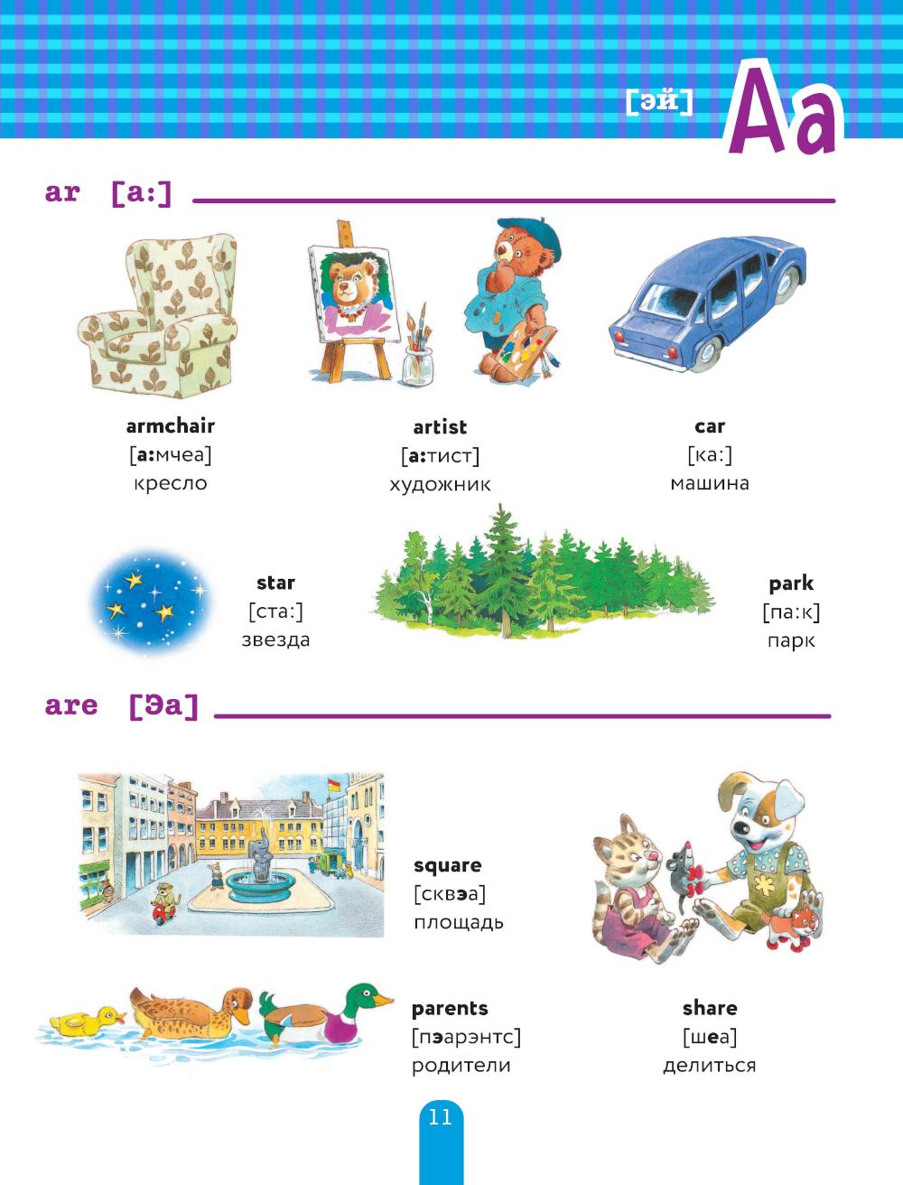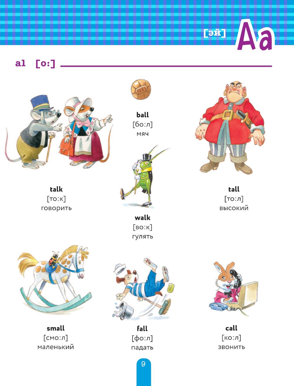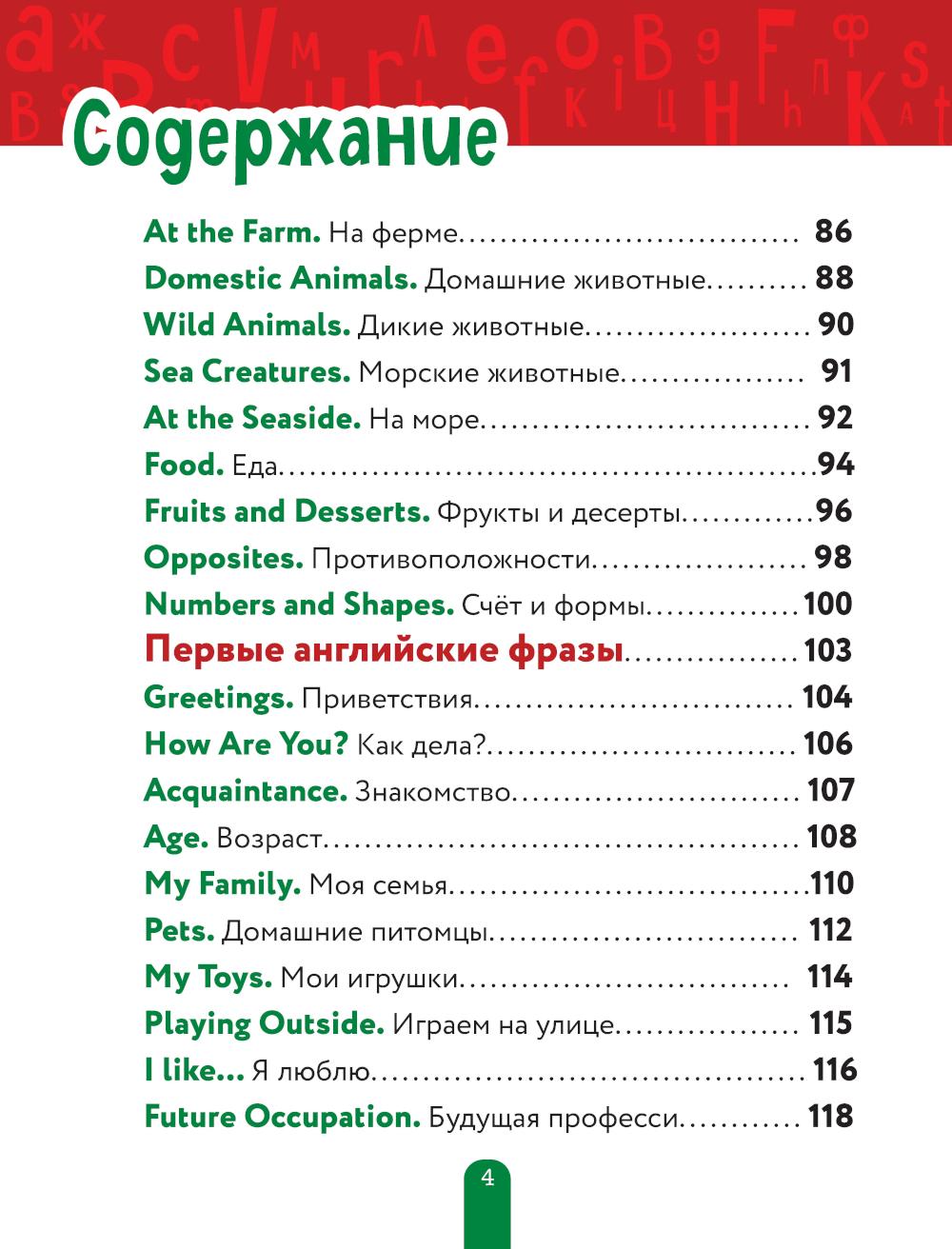 Каким должно быть первое пособие дошкольника по английскому языку? Ярким, интересным и несложным! Эта книга именно такая! Она состоит из 3-х частей. В первой малыш познакомится с английскими буквами и узнает, как произносятся их сочетания. Во второй освоит множество английских слов по самым полезным для ребенка темам: счет и формы, город и транспорт, месяцы и времена года, день и ночь, животные и растения... В третьей - выучит полезные фразы, которые пригодятся ему и в садике, и в школе, и в путешествии! Произношение передано русскими буквами, так что заниматься с ребенком может даже взрослый, который не уверен в своем английском. Разглядывая иллюстрации, придумывая истории про симпатичных персонажей и повторяя за взрослыми слова и фразы, малыш заложит основу для будущих успехов в английском. Знакомство с буквосочетаниями поможет ему быстро научиться читать в школе, а знание полезных слов и фраз - радоваться первым успехам в английском, заниматься им с удовольствием и добиться отличных оценок в школе!