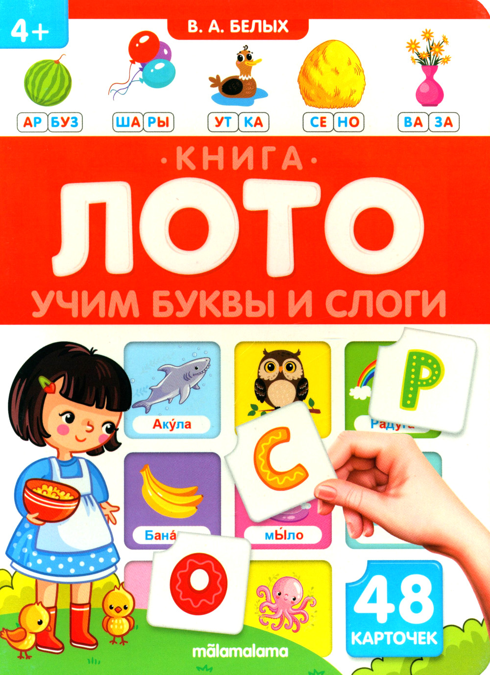 Книга-лото в занимательной форме поможет ребёнку освоить первые знания перед школой. На 8 страницах малыш найдёт 48 карточек, которые помогут выполнить множество развивающих заданий, созданных по методике педагога-психолога Виктории Белых. Каждую книгу-лото можно использовать для занятий как отдельно, так и совместно с другими книгами серии.| Издательство | Аль Пако |