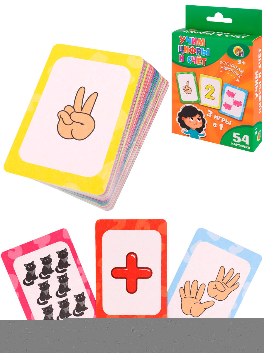"Учим цифры и счёт" - обучающая настольная игра. Она познакомит ребёнка и с простыми математическими действиями, такими как сложение и вычитание, так и с теми, которые посложнее - умножение и деление. Кроме того малыш узнает понятия "больше" и "меньше", научится соотносить названия цифр с их изображениями, а также поймёт, как показывать их на пальцах, и узнает, как же определить, сколько забавных зверюшек прячется на карточках. Состав игры: -54 карточки (109х74мм) - Правила игры 5 игр в 1! Возраст: 3+ Количество игроков: 1+ Время игры: 15+| Издательство | РЫЖИЙ КОТ ООО |