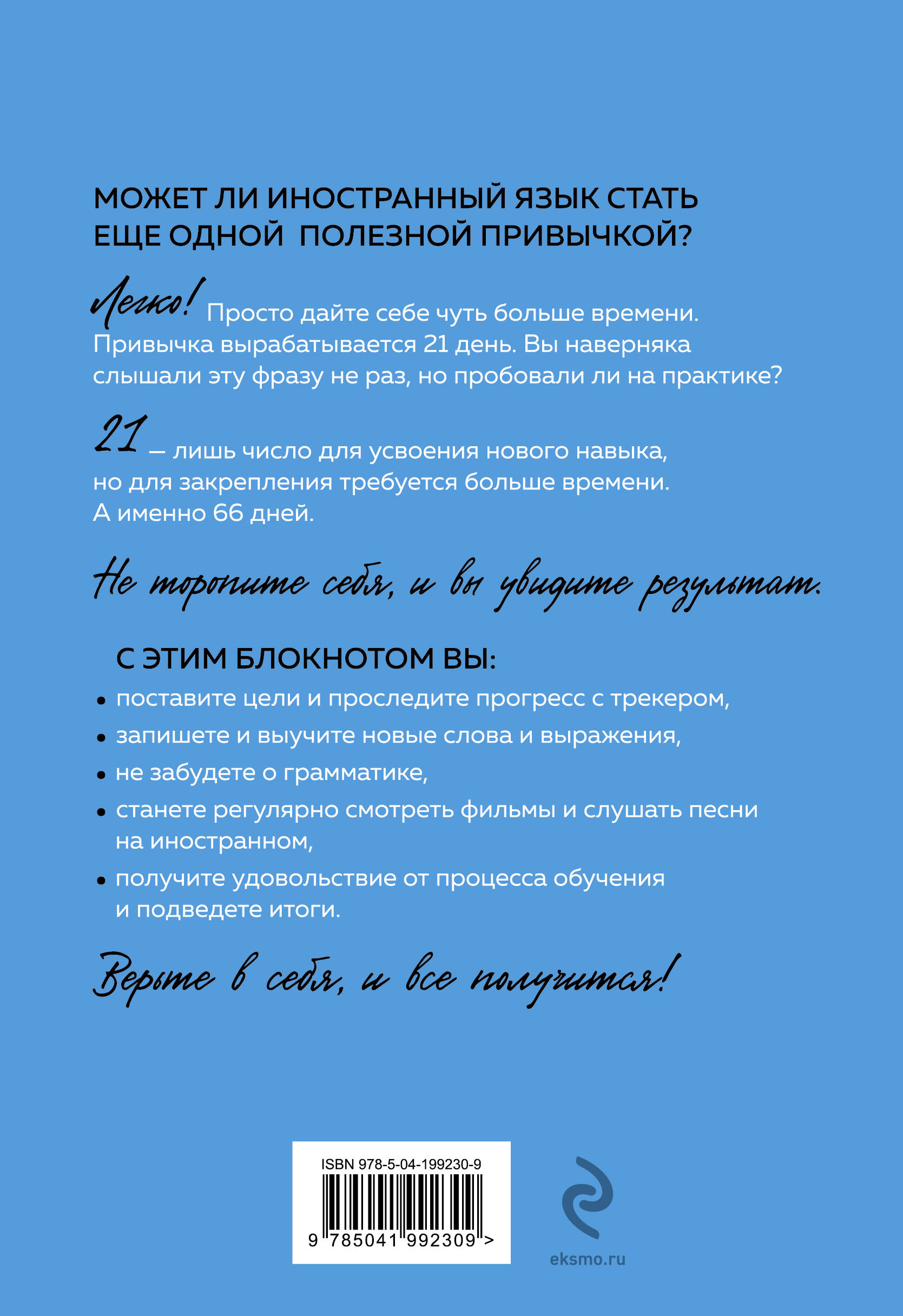 Вы столько раз начинали изучать иностранный язык, но постоянно что-то мешает достижению цели? Не отчаивайтесь! Все наверняка слышали про 21 день, но за это время можно лишь усвоить новый навык. Для закрепления требуется больше времени, а именно 66 дней. Уникальная методика поможет сделать иностранный полезной привычкой. Следуйте инструкциям в блокноте, используйте трекер для наблюдений за прогрессом, старайтесь регулярно записывать новые слова и фразы из песен и фильмов. И не забывайте про систему поощрений. Удобный формат, плотная белая бумага и стильное оформление сделают обучение приятным.