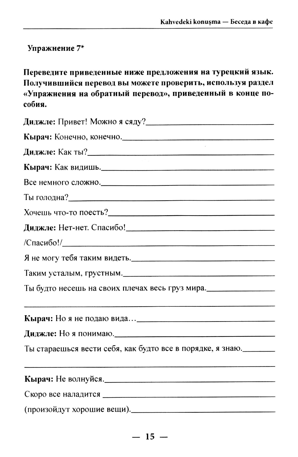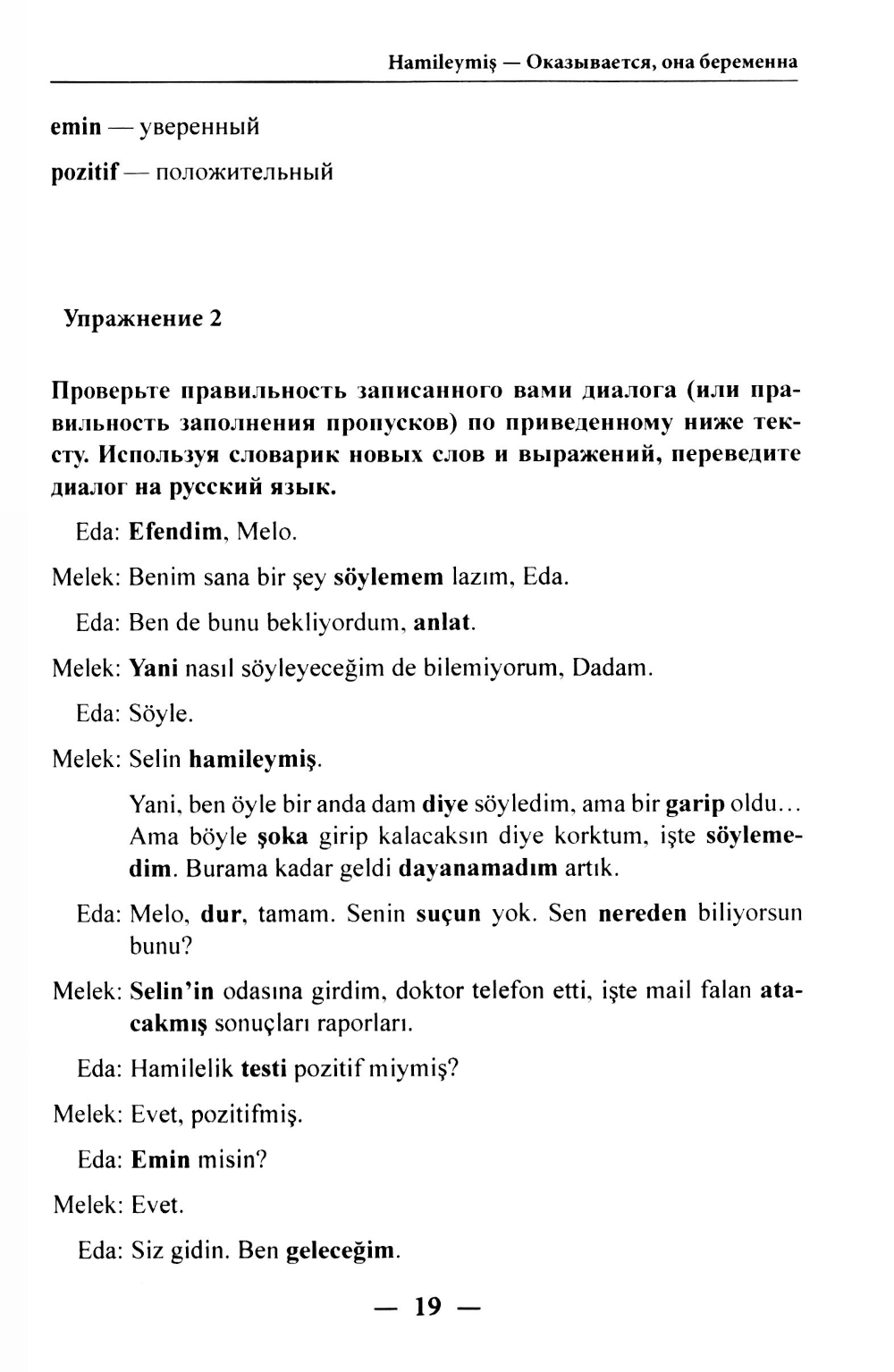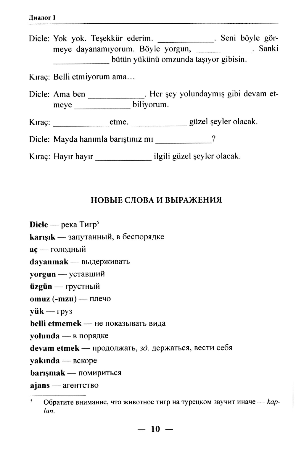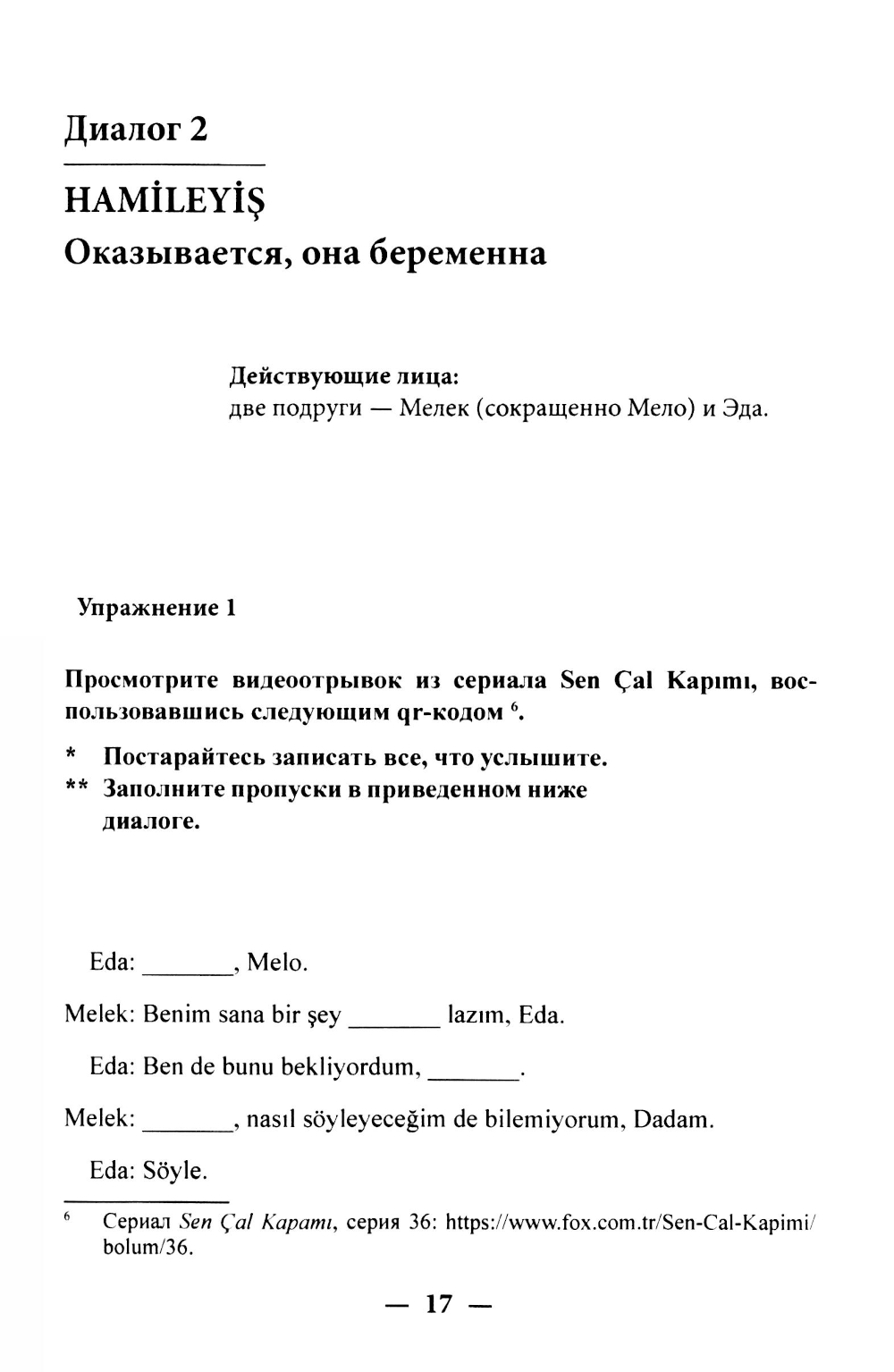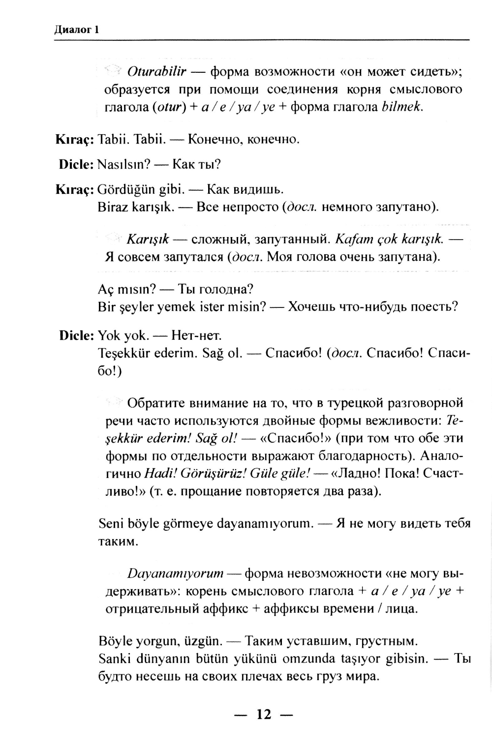 Учебные пособия из серии «Учим язык по любимым сериалам» развивают базовый уровень владения турецким языком, способствуют формированию устойчивых навыков понимания на слух турецкой речи и перевода разговорных фраз с турецкого языка на русский и с русского на турецкий. Данное пособие может использоваться в качестве дополнительного материала для выведения учащихся на уровень А2-В1 согласно общеевропейским стандартам языкового образования. Благодаря включению упражнений разной степени сложности пособие подойдет как студентам, уже имеющим базовые знания по грамматике и лексике разговорного турецкого языка, так и только начинающим изучать этот язык. При этом наличие полного разбора текстов в каждом уроке позволяет использовать это пособие также в качестве самоучителя.| Издательство | Восточная книга |
