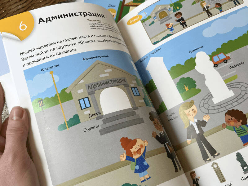 С помощью этой тетради малыш расширит словарный запас и будет развивать мелкую моторику рук, приклеивая наклейки разной формы и размера. Выполняя весёлые упражнения в тетради, ребёнок запомнит названия объектов, которые окружают его в городе: почта, больница, полиция, пожарная часть, здания, кафе и так далее. Отделяя от листа и приклеивая на картинку стикеры разной формы и размера, малыш будет тренировать свои пальчики, и они станут ловкими и умелыми. Задания в тетради построены так, что в процессе выполнения малышу дважды нужно назвать объект, изображенный на странице. Такой подход способствует быстрому запоминанию новых слов. Помогайте малышу и произносите названия объектов вместе с ним. Обсуждайте то, что изображено на картинке, и вспоминайте ситуации из жизни. Это поможет малышу лучше и быстрее запоминать новое, а вы будете приятно удивлены успехами своего ребёнка. Для кого эта тетрадь: Для детей от 2 лет.| Издательство | МАНН, ИВАНОВ И ФЕРБЕР ООО |