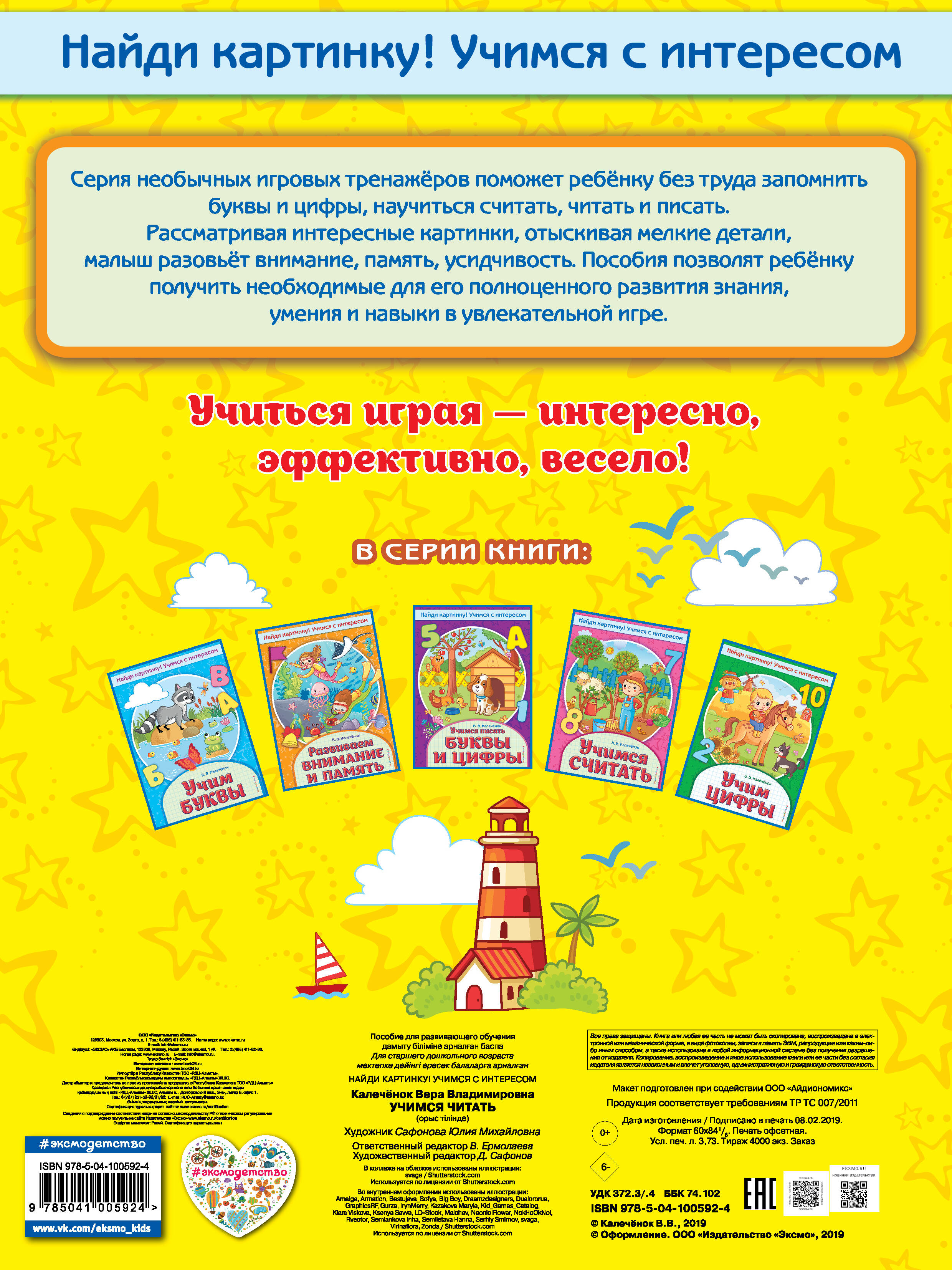 Приобретая эту серию книг, вы: 1. Поможете малышу быстро научиться читать по слогам, выполняя интересные игровые упражнения. 2. Разовьете его зрительное внимание и память, глазомер и мелкую моторику. 3. Научите ребенка сосредотачиваться на главном и быстро переключаться с одной задачи на другую. 4. Поможете дошкольнику стать более усидчивым, терпеливым, аккуратным. 5. Расширите его кругозор и словарный запас.