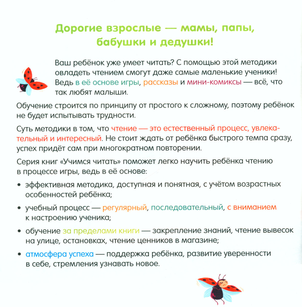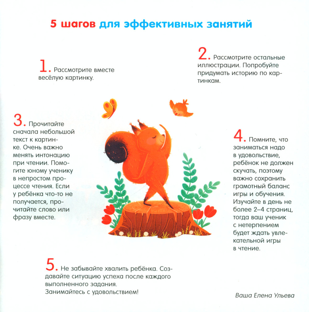 Елена Ульева - автор детских развивающих книг, изданных совокупным тиражом 8,5 млн экземпляров, педагог с 20-летним опытом работы с детьми. Образовательная программа Елены Ульевой - это понятная и полезная авторская методика обучения чтению с ранних лет в форме увлекательной игры. Весёлая и эффективная методика обучения чтению! • Несколько занятий - и ваш малыш сам будет читать подписи к картинкам. • Милые герои создадут ситуацию успеха у ребёнка. • Занимательные игры позволят закрепить пройденный материал.| Издательство | Клевер-Медиа-Групп |