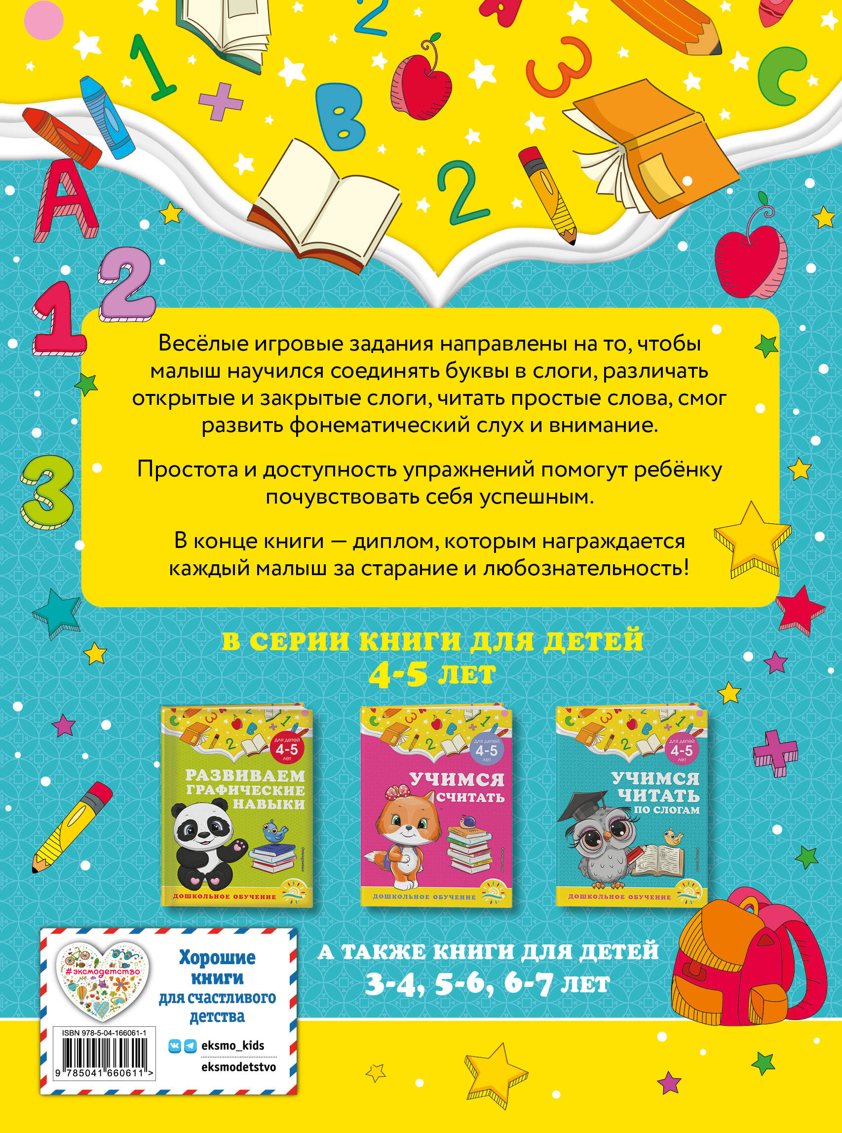 Цель книги, соответствующей ФГОС - научить ребёнка азам чтения. Выполняя увлекательные задания, дошкольник поймет, как соединять буквы в слоги, различать открытые и закрытые слоги, сможет прочесть простые слова, развить фонематический слух, память, речь и внимание, расширить словарный запас. Увлекательные игровые задания, расположенные по принципу усложнения, будут способствовать развитию познавательных способностей малыша и расширению его кругозора. А красочные иллюстрации повысят интерес ребёнка к занятиям. В конце книги имеется диплом, которым награждается каждый малыш за старание и любознательность. Это будет мотивировать ребёнка к дальнейшему обучению.| Издательство | Эксмо |