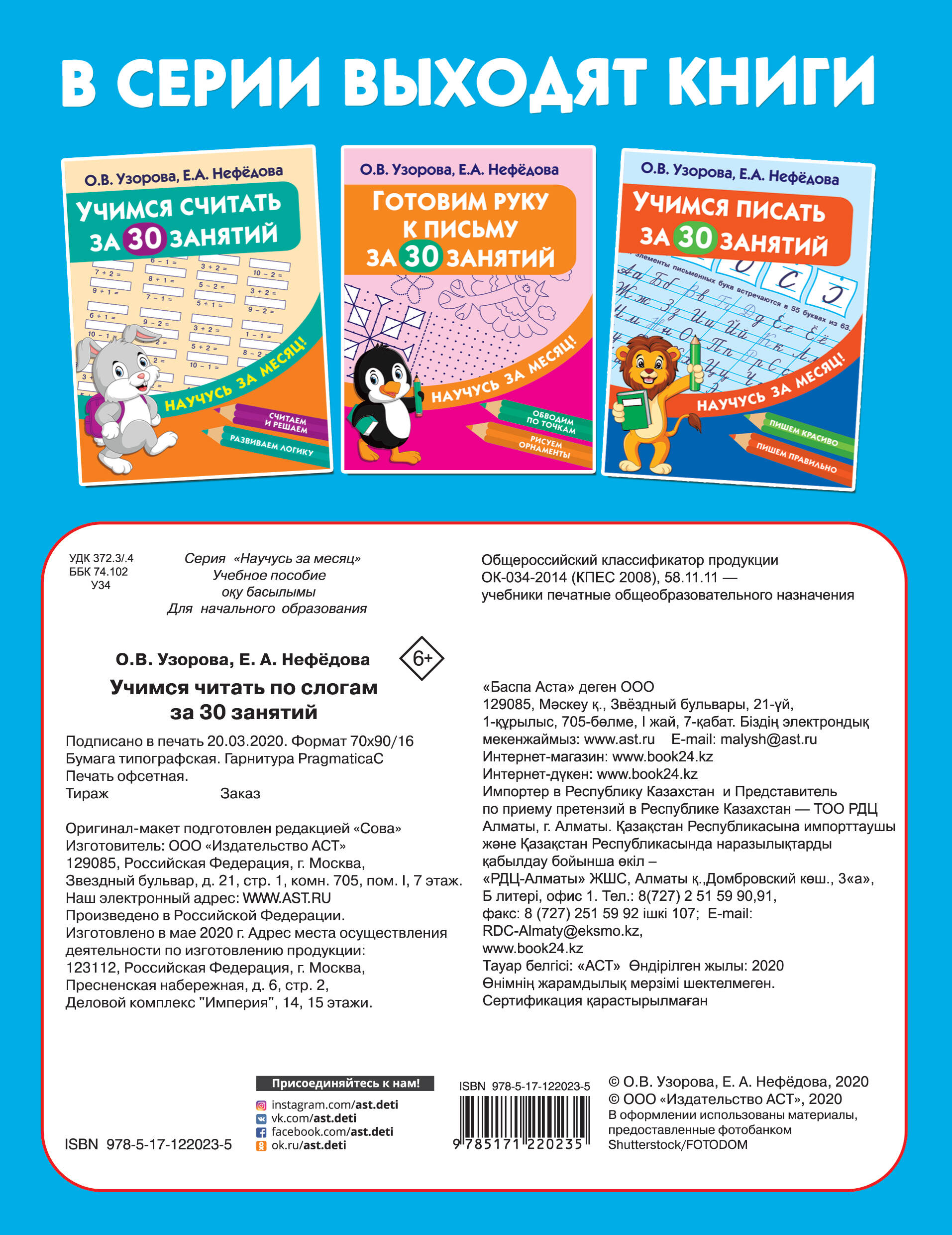 О чем эта книга Учебное пособие известных педагогов-практиков О. В. Узоровой и Е. А. Нефёдовой поможет ребёнку автоматизировать навык слогового чтения. Кому эта книга будет интересна Будущим первоклассникам для подготовки к школе, а также первоклассникам, которые хотят усовершенствовать технику чтения. Каковы особенности этой книги • Отличное пособие для подготовки ребёнка к школе. • В книге даны упражнения на развитие речи. • Регулярные занятия подготовят ребёнка к чтению слов, предложений и текстов. • Слоговые тесты позволят родителям оценить успехи ребёнка.| Издательство | Издательство "АСТ" |
