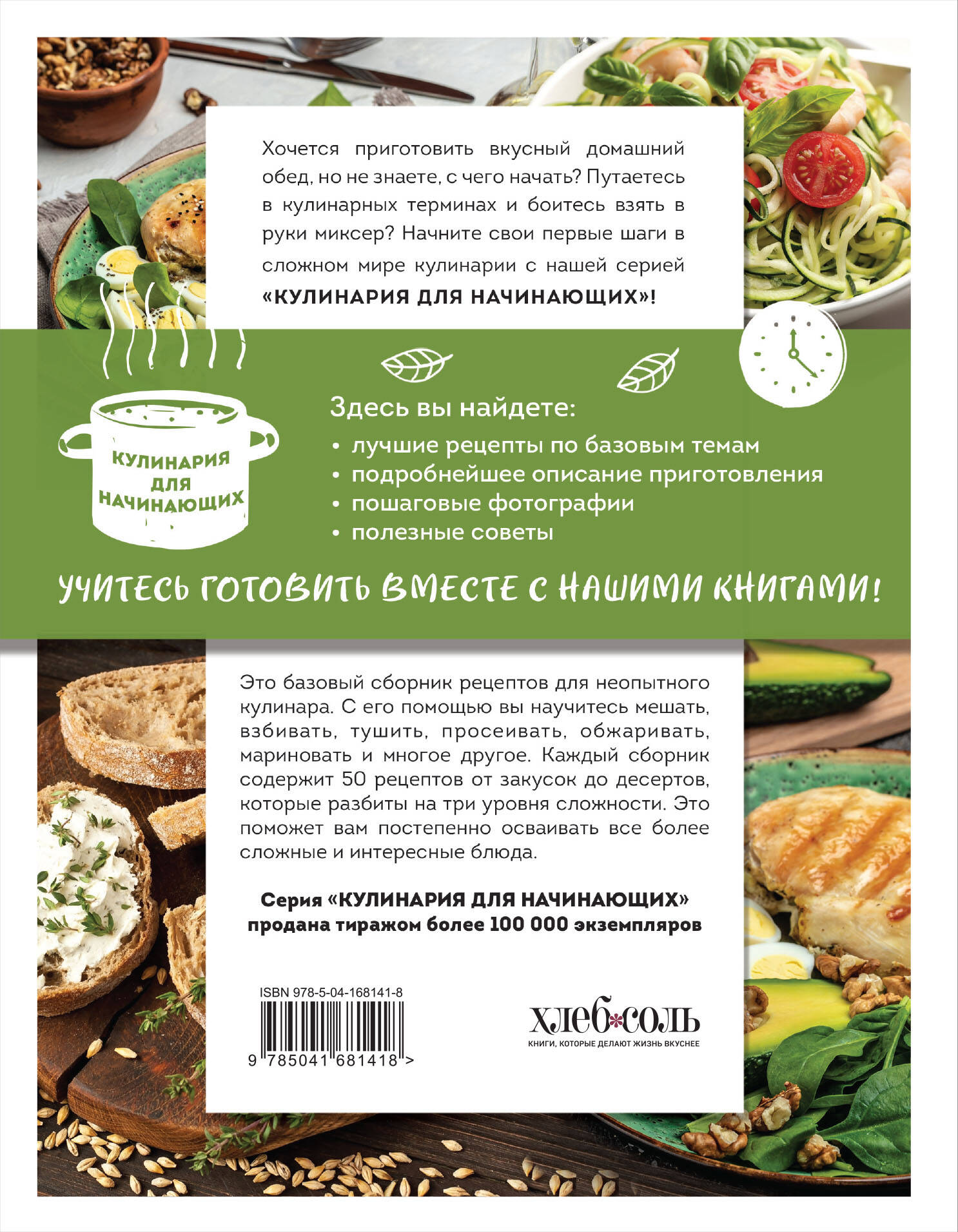 Вам хочется приготовить вкусный домашний обед, но не знаете, с чего начать? Путаетесь в кухонных шкафчиках и боитесь взять в руки миксер? Начните свои первые шаги в сложном мире кулинарии с нашей серией для начинающих! Здесь вы найдете лучшие рецепты по самым важным темам, подробнейшее описание этапов приготовления, пошаговые фотографии и полезные советы. Рецепты разбиты на три группы сложности, от самых легких до тех, над которыми придется немного потрудиться. Это базовый учебник для неопытного кулинара. С его помощью вы научитесь мешать, взбивать, тушить, просеивать, промазывать, прокручивать и многое другое. Учитесь готовить вместе с нашими книгами!