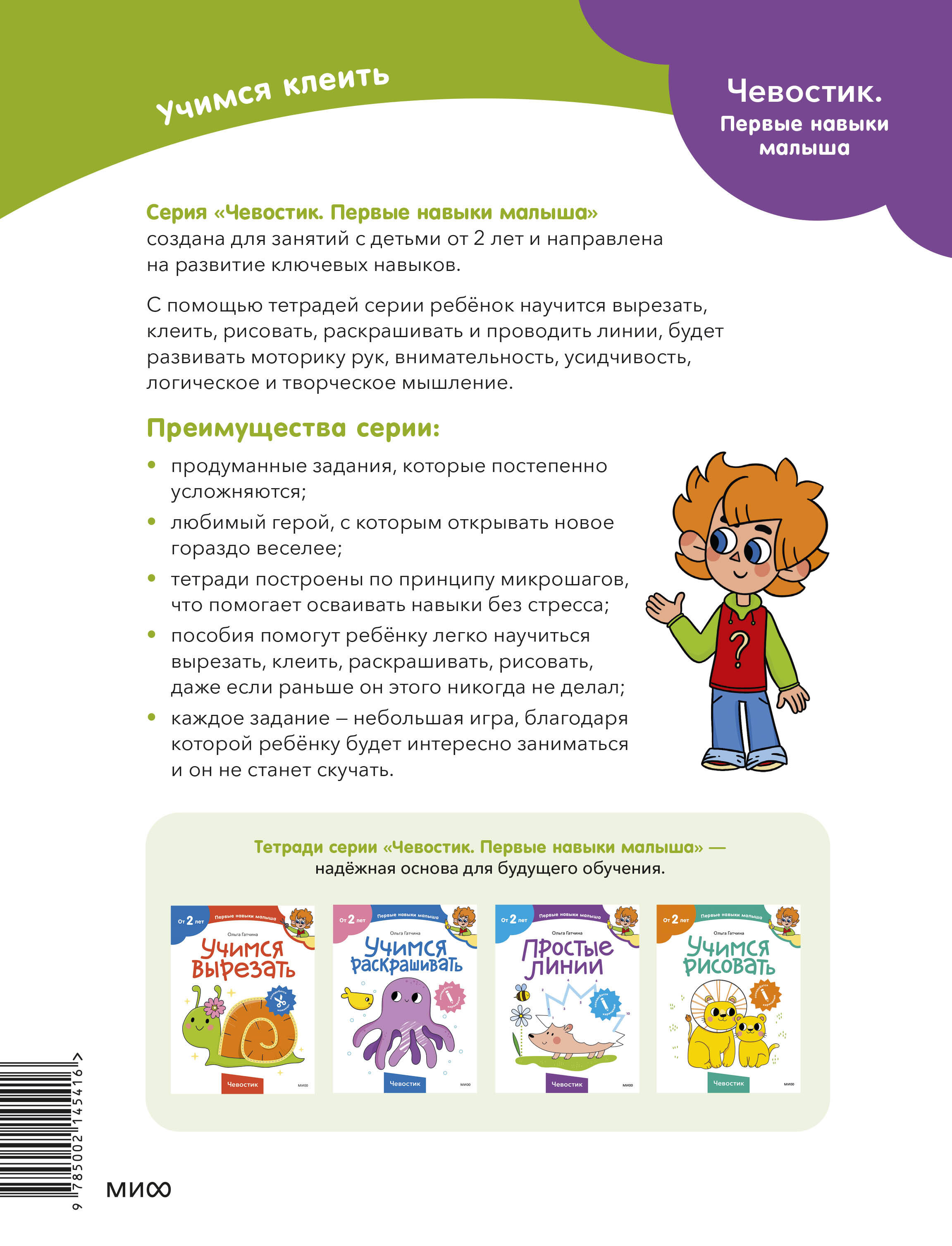 Новая серия тетрадей для малышей с любимым героем Чевостиком Каждое задание - небольшая игра Ребенок научится работать с клеем и делать простые аппликации| Издательство | МАНН, ИВАНОВ И ФЕРБЕР ООО |