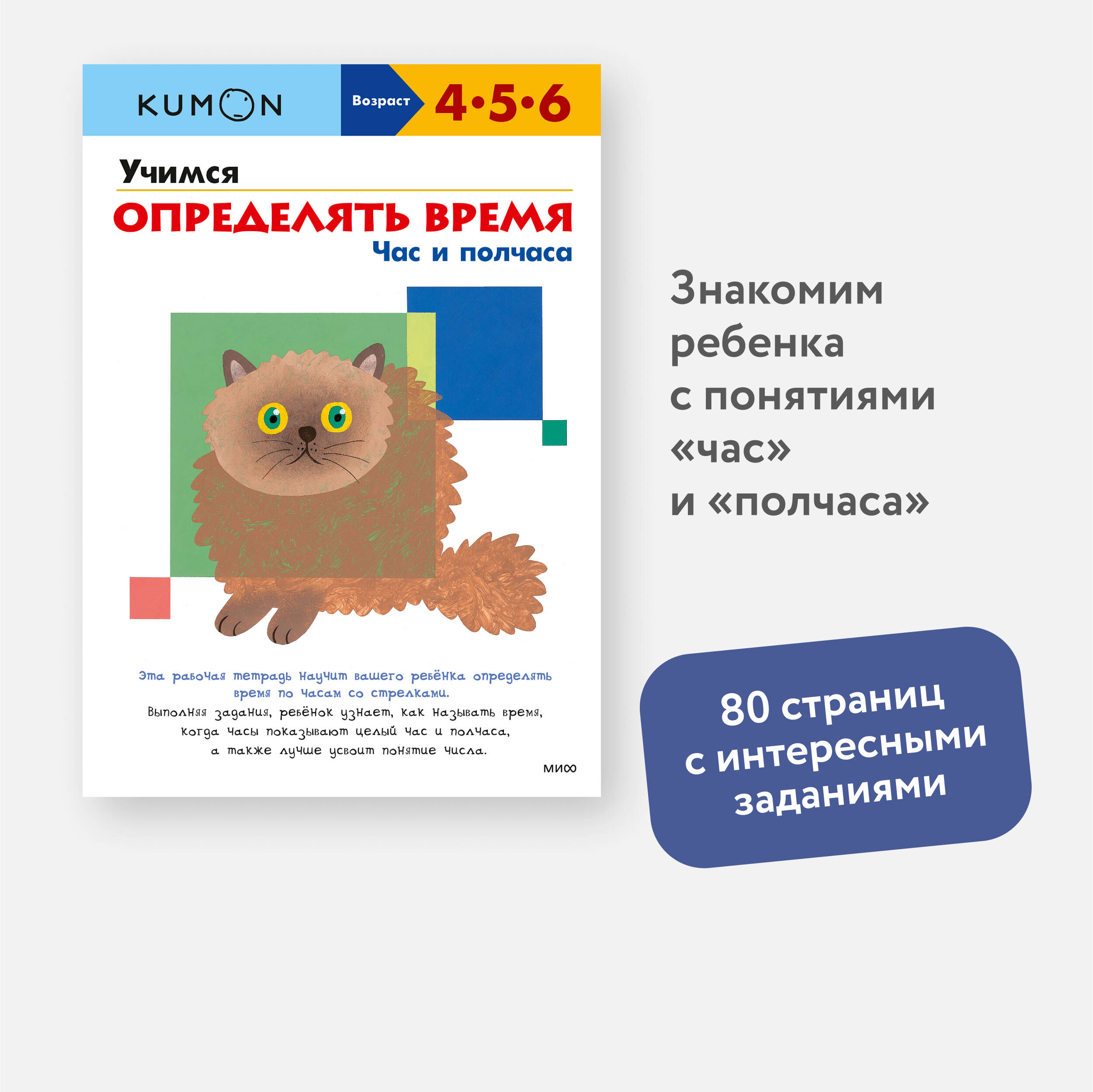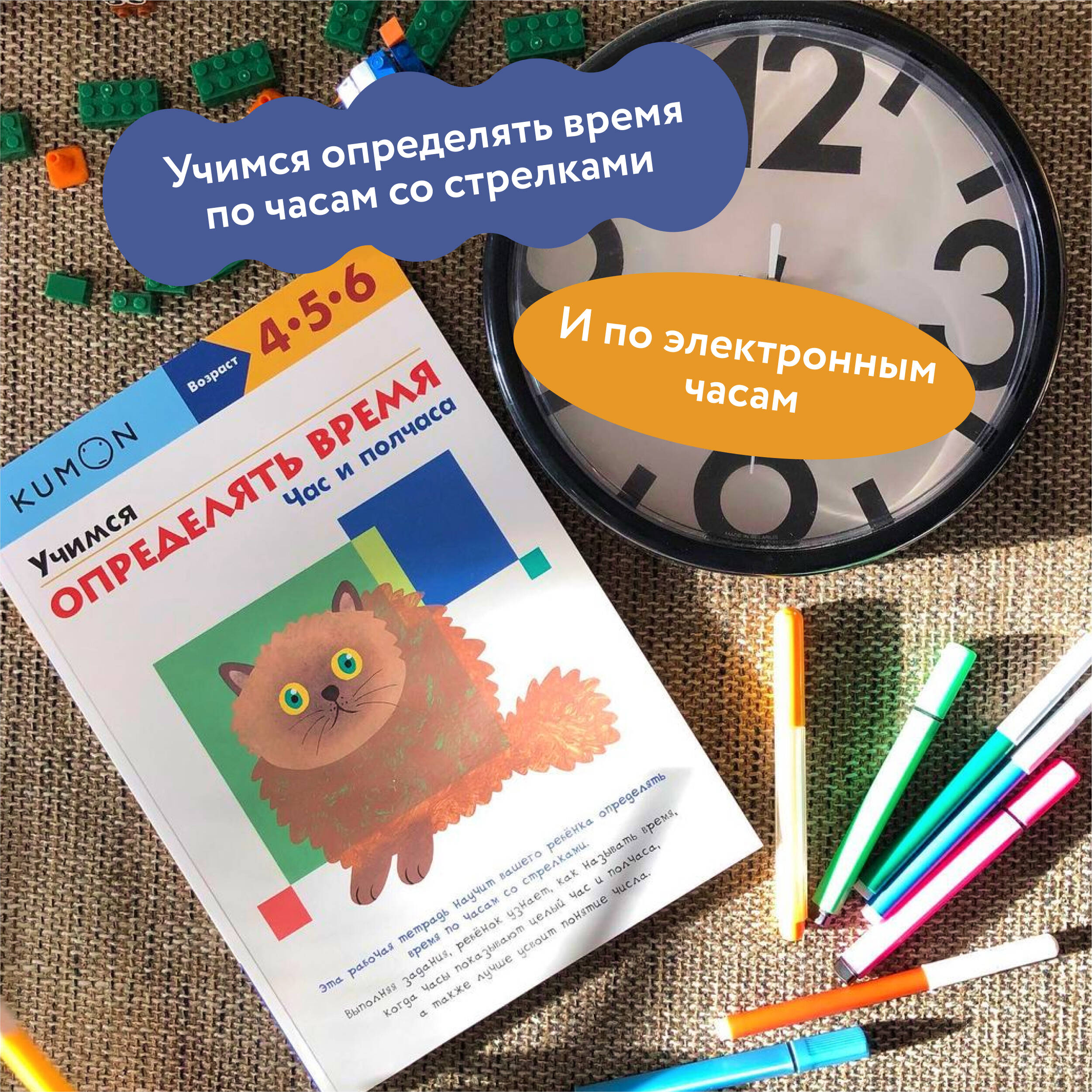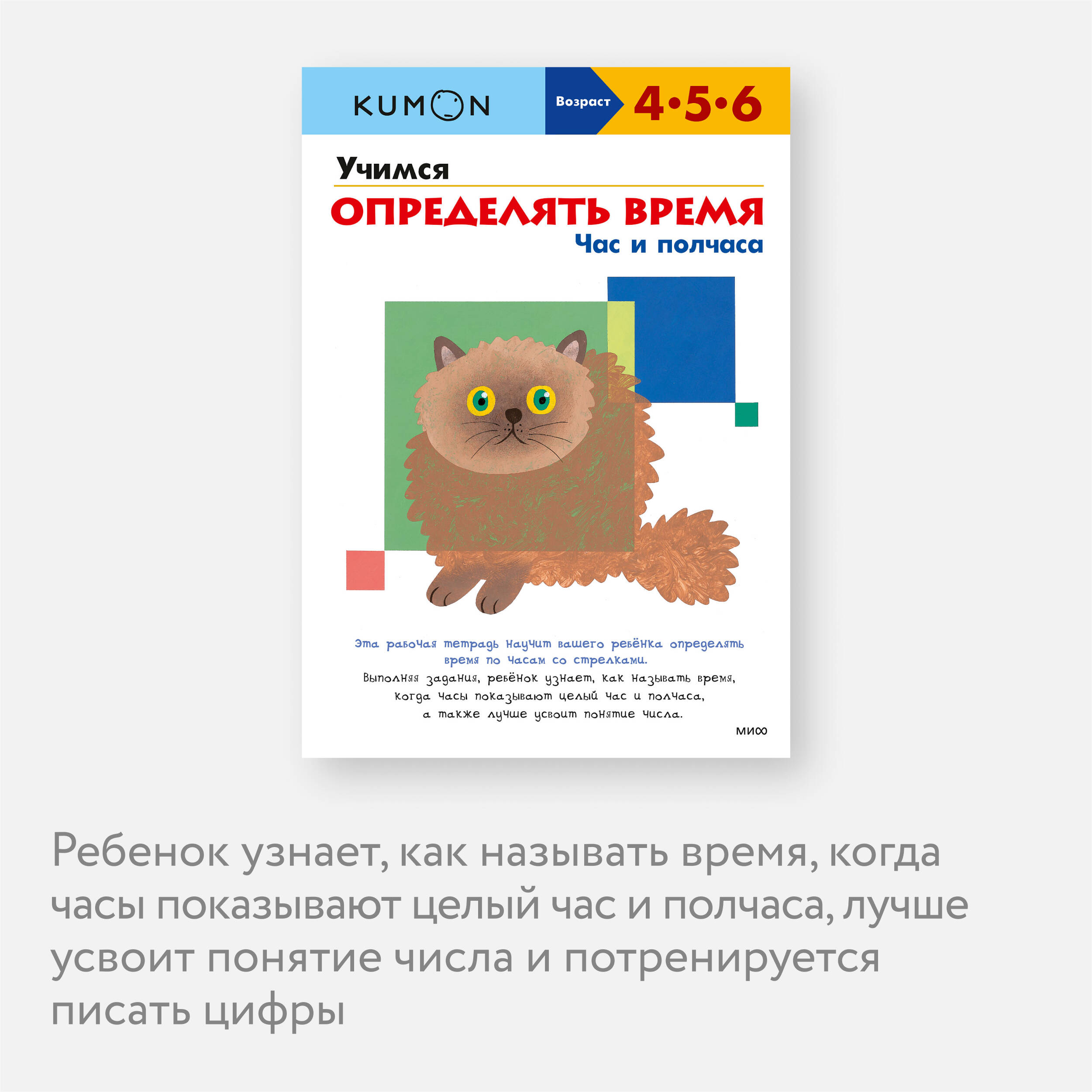 Эта рабочая тетрадь познакомит вашего ребенка с понятиями "час" и "полчаса". Ребенок, привыкший к определенному распорядку дня, уже знает, как от времени суток зависит то, что он делает. Например, в 7 часов утра он просыпается, а в 8:30 вечера ложится спать. Упражнения в рабочей тетради помогут ему осмыслить эти знания и получить верное представление о времени. В процессе занятий он также потренируется писать цифры. Как построены задания в тетради? Сначала ребенок будет писать числа от 1 до 12, которые необходимы для определения времени по часам со стрелками. Когда он запомнит числа, ему будет проще называть время. В первых заданиях ребенок будет определять время по нарисованным часам и обводить числа, соответствующие данному времени. Затем ему нужно будет записывать время самостоятельно. Освоив целые часы, ребенок перейдет к заданиям, в которых нужно определять половину часа. Последние задания посвящены определению времени по часам с электронным дисплеем. Для кого эта тетрадь? Тетрадь предназначена для занятий с детьми 4-6 лет. Ее могут использовать как педагоги в детских клубах и центрах развития, так и родители для работы дома. Что такое KUMON? KUMON - это крупнейший международный центр дополнительного образования. Сегодня по программам KUMON обучаются в 48 странах более 4 млн детей и подростков в возрасте от 2 до 17 лет. Рабочие тетради KUMON для дошкольников помогут вашему ребенку приобрести навыки письма, счета, а также научат его работать с ножницами и клеем.| Издательство | Манн, Иванов и Фербер |