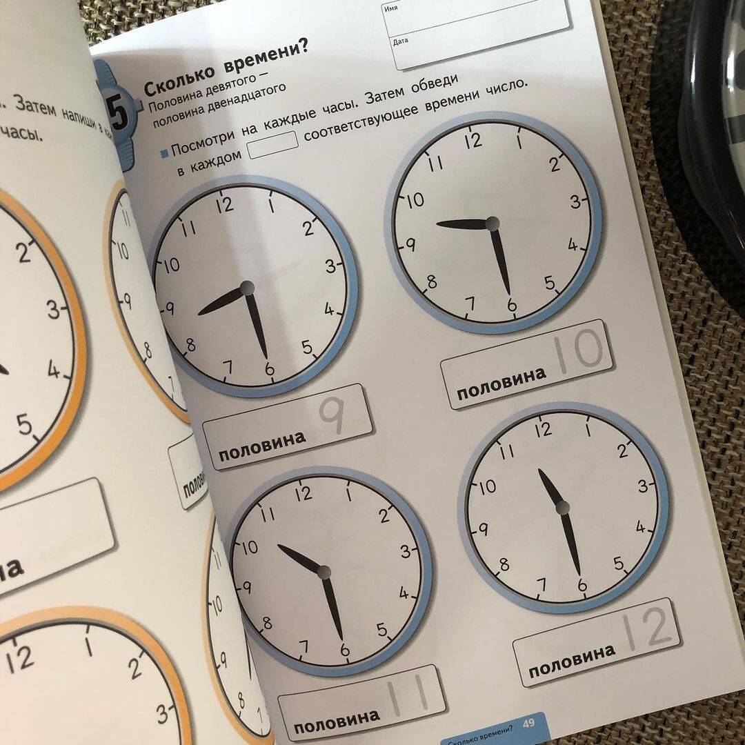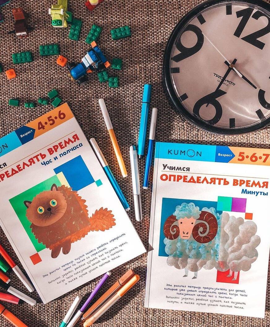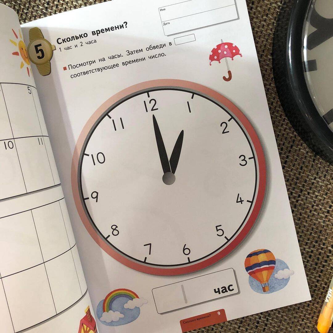 Эта рабочая тетрадь познакомит вашего ребенка с понятиями "час" и "полчаса". Ребенок, привыкший к определенному распорядку дня, уже знает, как от времени суток зависит то, что он делает. Например, в 7 часов утра он просыпается, а в 8:30 вечера ложится спать. Упражнения в рабочей тетради помогут ему осмыслить эти знания и получить верное представление о времени. В процессе занятий он также потренируется писать цифры. Как построены задания в тетради? Сначала ребенок будет писать числа от 1 до 12, которые необходимы для определения времени по часам со стрелками. Когда он запомнит числа, ему будет проще называть время. В первых заданиях ребенок будет определять время по нарисованным часам и обводить числа, соответствующие данному времени. Затем ему нужно будет записывать время самостоятельно. Освоив целые часы, ребенок перейдет к заданиям, в которых нужно определять половину часа. Последние задания посвящены определению времени по часам с электронным дисплеем. Для кого эта тетрадь? Тетрадь предназначена для занятий с детьми 4-6 лет. Ее могут использовать как педагоги в детских клубах и центрах развития, так и родители для работы дома. Что такое KUMON? KUMON - это крупнейший международный центр дополнительного образования. Сегодня по программам KUMON обучаются в 48 странах более 4 млн детей и подростков в возрасте от 2 до 17 лет. Рабочие тетради KUMON для дошкольников помогут вашему ребенку приобрести навыки письма, счета, а также научат его работать с ножницами и клеем.| Издательство | Манн, Иванов и Фербер |