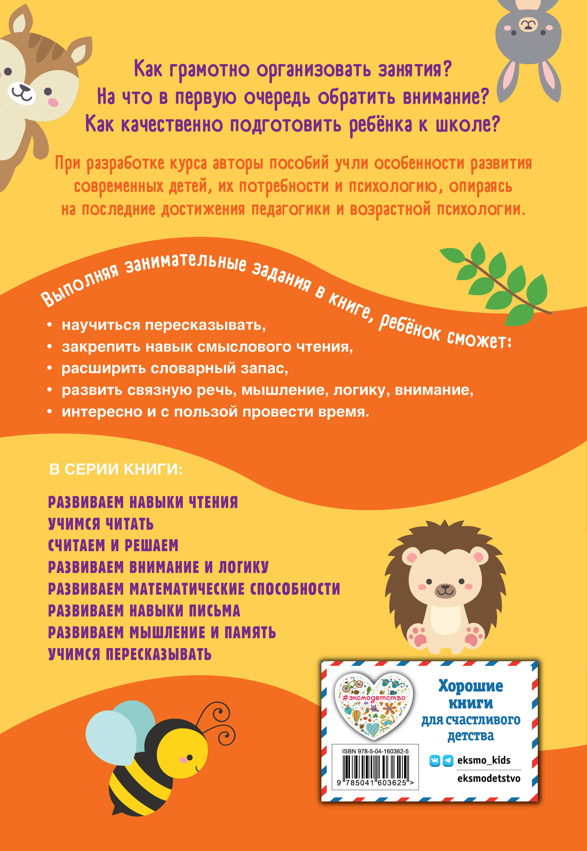 Пособие, соответствующее ФГОС, подскажет родителям, как грамотно организовать занятия, на что в первую очередь обратить внимание, как качественно подготовить ребенка к школе. Работая с пособием, ребенок научится понимать смысл прочитанного текста и легко его пересказывать, как с использованием рисунков, так и без них; последовательно строить свои высказывания, отвечать на вопросы, подбирать картинки к тексту, делить его на части, придумывать заголовки, разовьет речь, расширит словарный запас и получит весь необходимый для своего возраста объем знаний, умений и навыков. Книга поможет качественно подготовить ребенка к школе, в ней есть все, что для этого нужно.| Издательство | ООО "Издательство "Эксмо" |