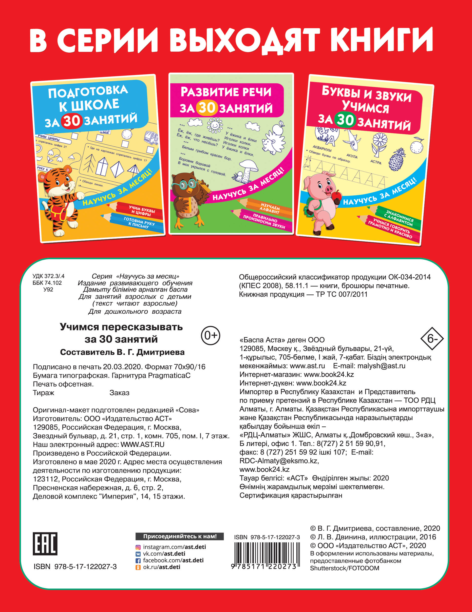 О чем эта книга Предсказывание текста - лучший способ развить речь, память внимание и способность ребёнка к обучению. Кому эта книга будет интересна Книга представляет интерес для родителей дошкольников и окажет неоценимую помощь при развитии навыков работы с текстом. Каковы особенности этой книги • Книга строится по принципу «Одна страница - одно занятие». Обучающий курс рассчитан на 30 занятий. • Предлагая ребенку выполнить пересказ по опорным вопросам, вы поможете ему обогатить словарный запас, развить память и образное внимание, логическое и абстрактное мышление. • Книга может стать первой ступенькой на пути к осмысленному, вдумчивому чтению. • Сказки и рассказы Л.Н. Толстого учат любви, доброте, справедливости, находчивости. • Курс занятий этой книги рассчитан на месяц. Продолжительность одного занятия - 15-20 минут.| Издательство | Издательство "АСТ" |