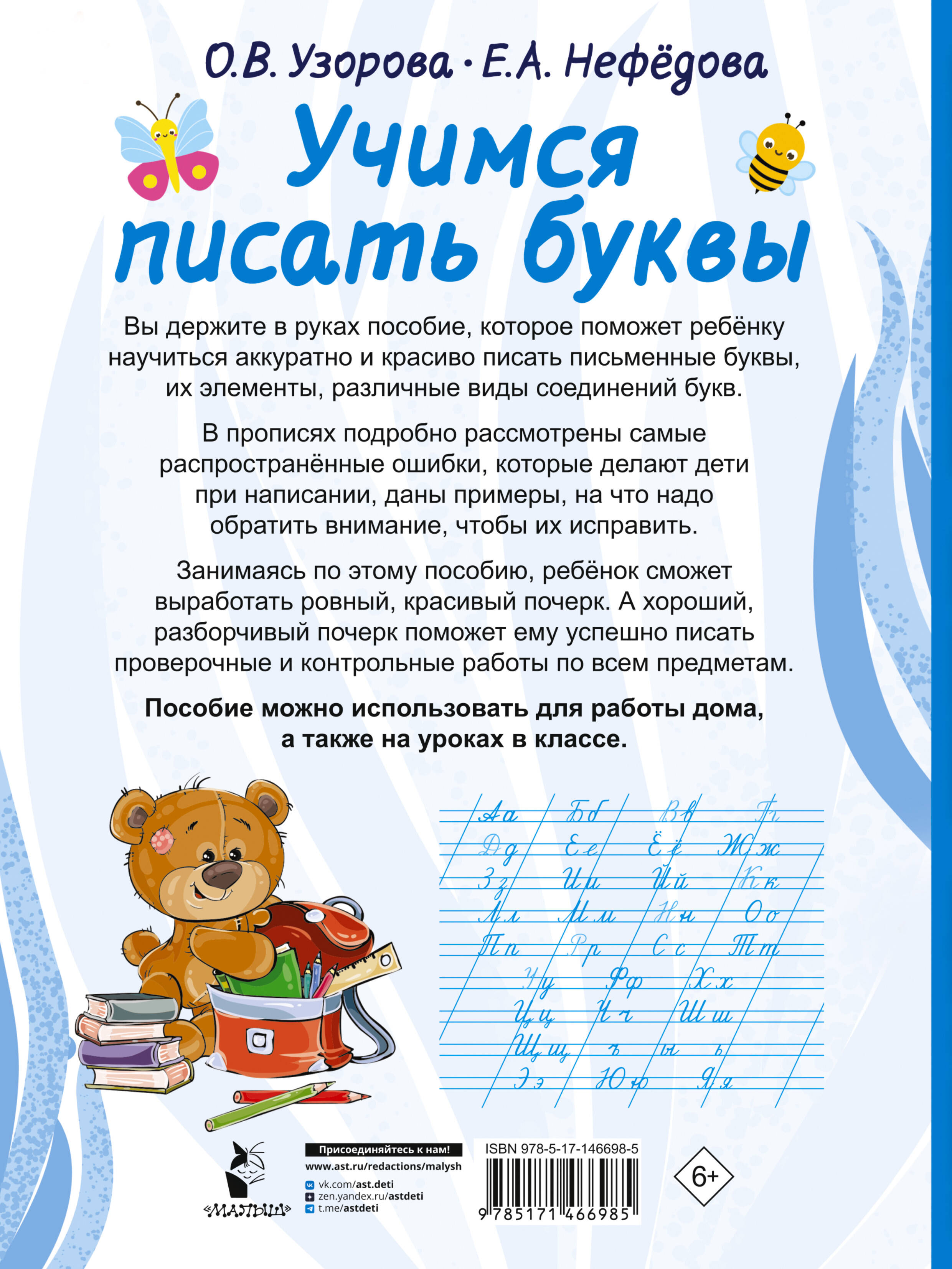 Учебное пособие известных педагогов-практиков О. В. Узоровой и Е. А. Нефёдовой поможет ребёнку научиться писать все буквы русского алфавита. Книга будет интересна будущим первоклассникам и их родителям. • Даёт возможность отработать графические навыки и правильную постановку руки. • Содержит множество упражнений и заданий, необходимых для развития навыков письма. • Ребёнок сможет выучить и научиться писать все буквы русского алфавита. • Пособие построено по принципу от простого к сложному: сначала ребёнок пишет элементы букв, а затем - буквы. • Буквы представлены не по алфавиту, а в порядке трудности их написания.| Издательство | АСТ |